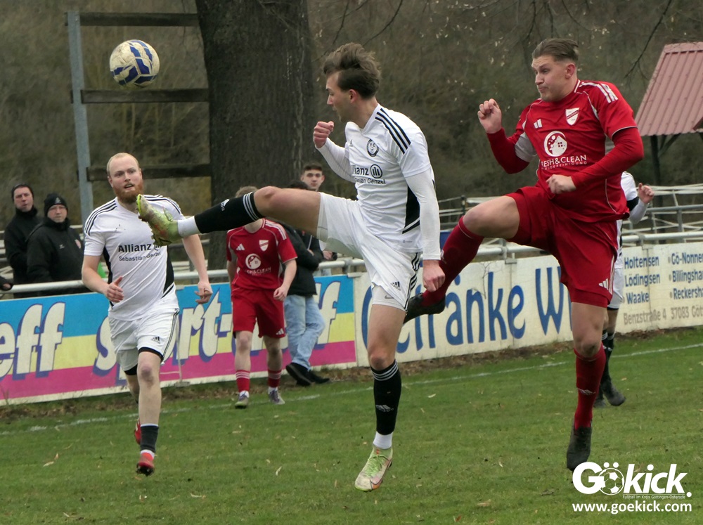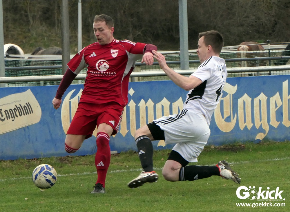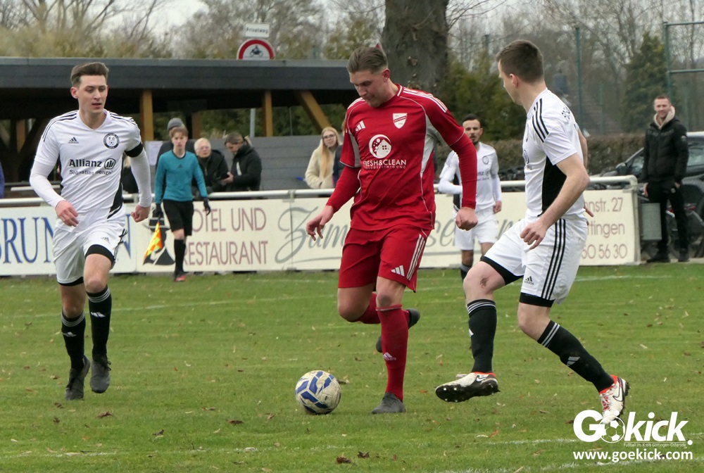 In der 21. Minute gingen die Gastgeber in Führung: Marcel Heimbüchel traf nach einem sehenswerten Freistoß zum 1:0. Trotz weiterer Chancen auf beiden Seiten blieb es bis zum Halbzeitpfiff von Schiedsrichter Jürgen Backhaus bei dieser knappen Führung, die auch einen anderen Spielstand hätte zulassen können.