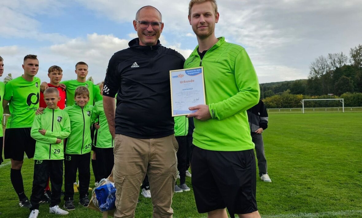 Jannis Wendt, Sportlicher Leiter und Trainer der B-Jugend vom JFV Rhume-Oder, wurde im Rahmen des Projekts „Ehrenamt überrascht!“ des Landessportbundes Niedersachsen (LSB) ausgezeichnet. Die Ehrung wurde vom 1. Vorsitzenden des JFV, Bernward Adler in Vertretung für den im Kreissportbund Göttingen-Osterode zuständigen Bernd Gellert übernommen.