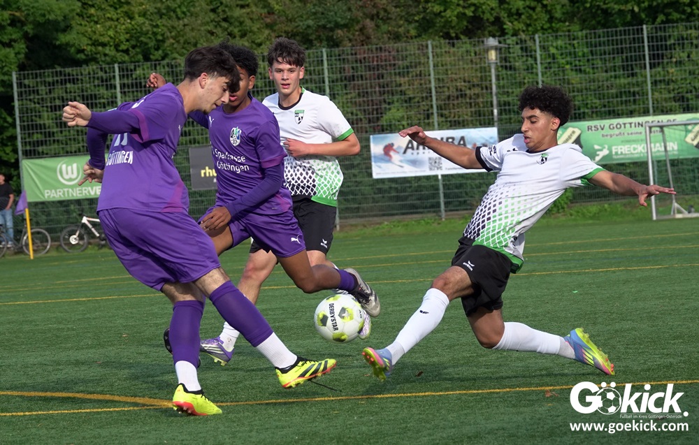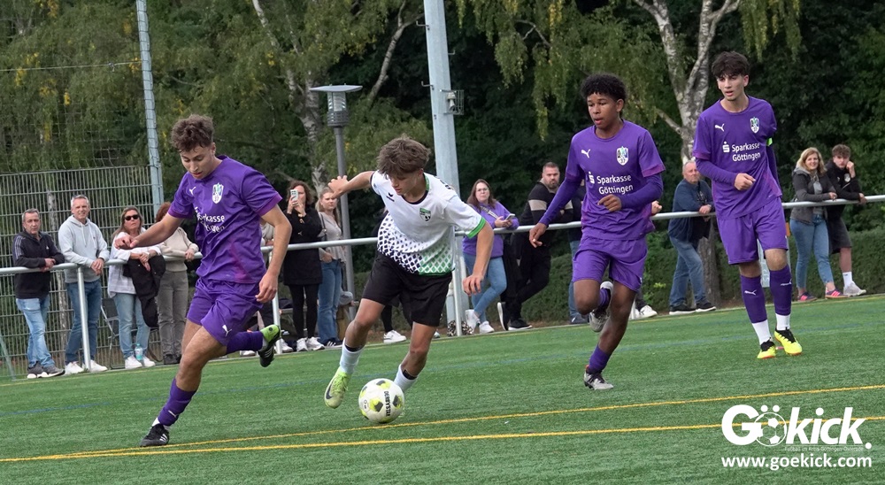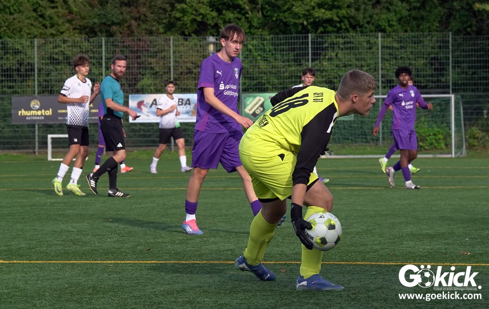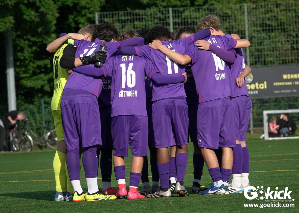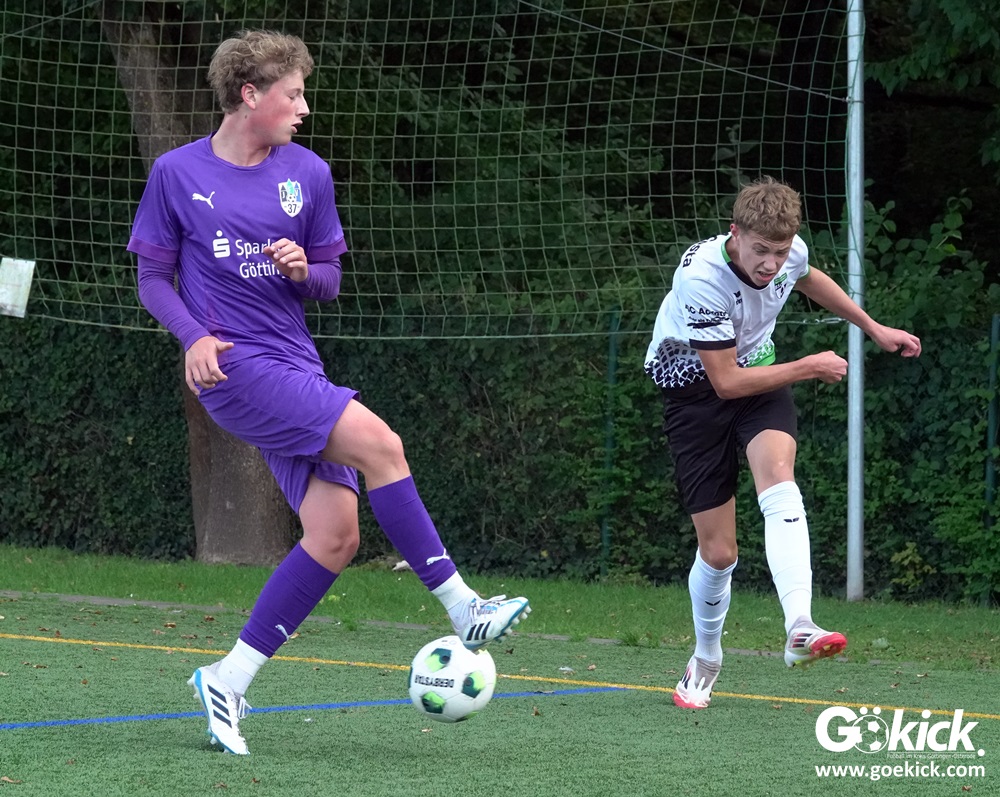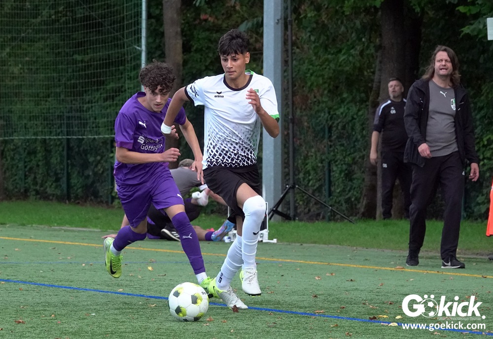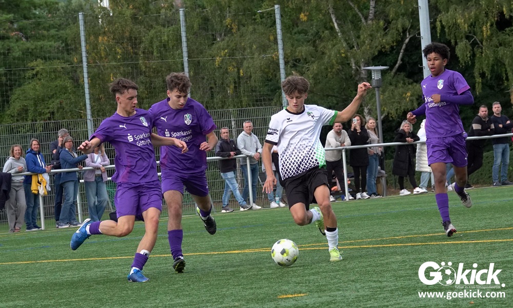 Die Göttinger, betreut vom Trainertrio Timo Ziegler, Michael Lorenz und Daniel Vollbrecht, gingen mit breiter Brust in die Partie. Doch nach einer halben Stunde sorgte Joshua Niemeyer für die kalte Dusche. Mit einem unwiderstehlichen Solo und einem präzisen Schuss mit dem Außenspann ins lange Eck brachte er Acosta in Führung. Kurz vor der Pause jedoch die Antwort des JFV: Gabriel Öztürk traf in der Nachspielzeit der ersten Hälfte zum 1:1 und brachte die Gastgeber zurück ins Spiel. Nach 42 Minuten beendete Schiedsrichter Philip Nordmann den ersten Durchgang.