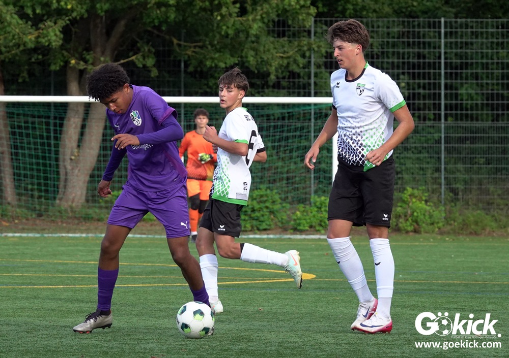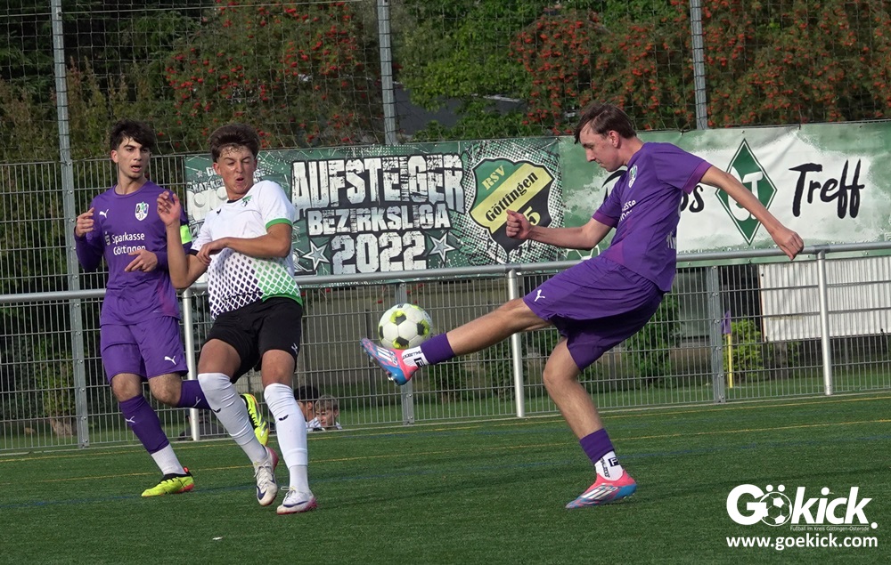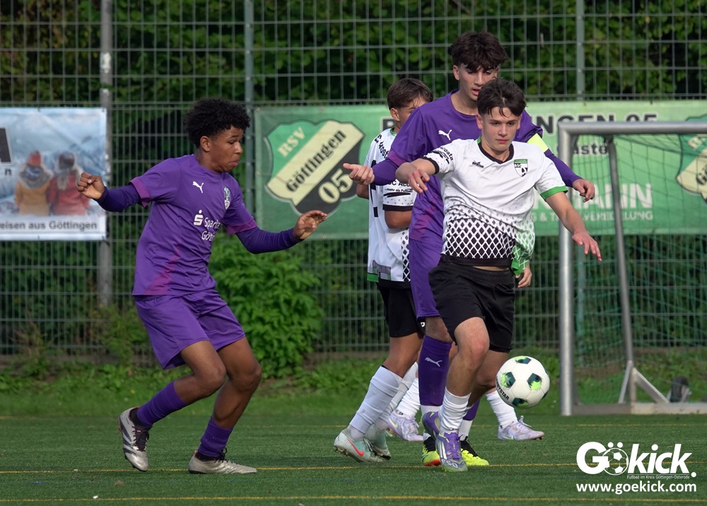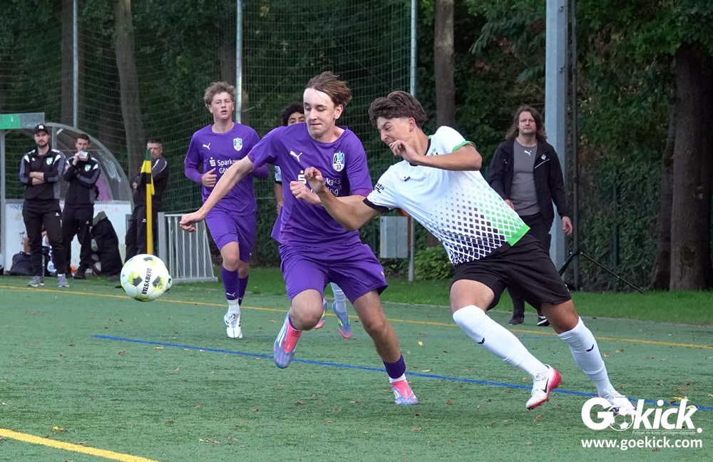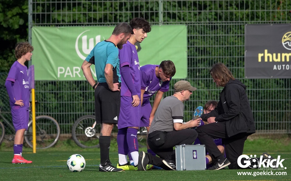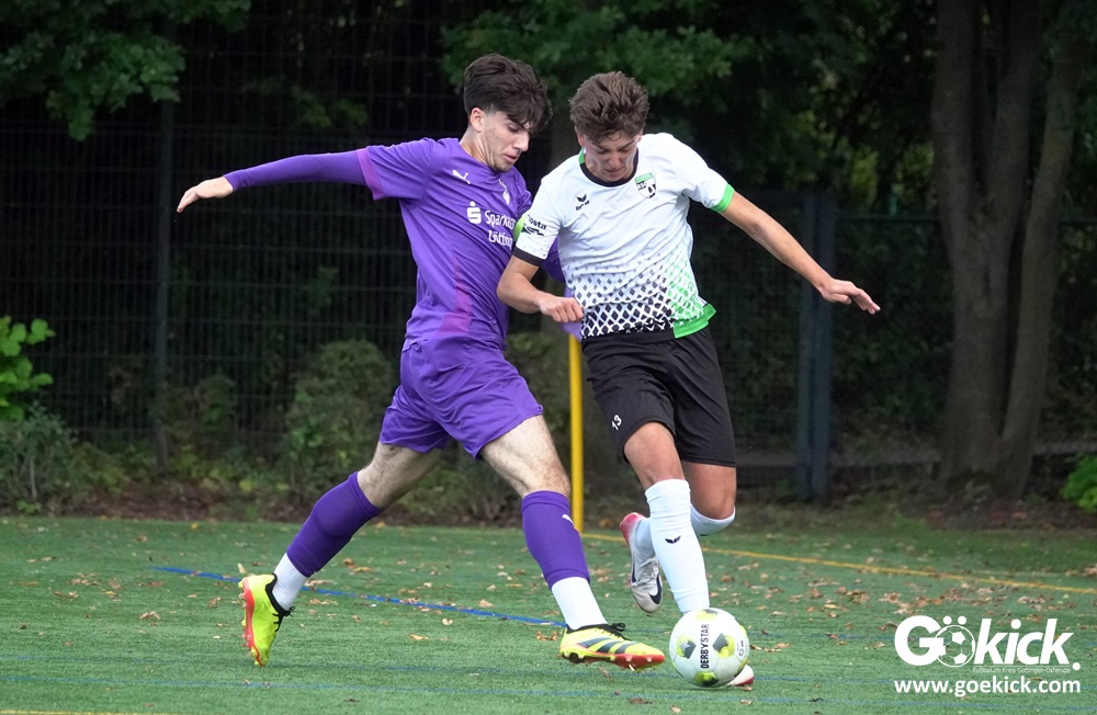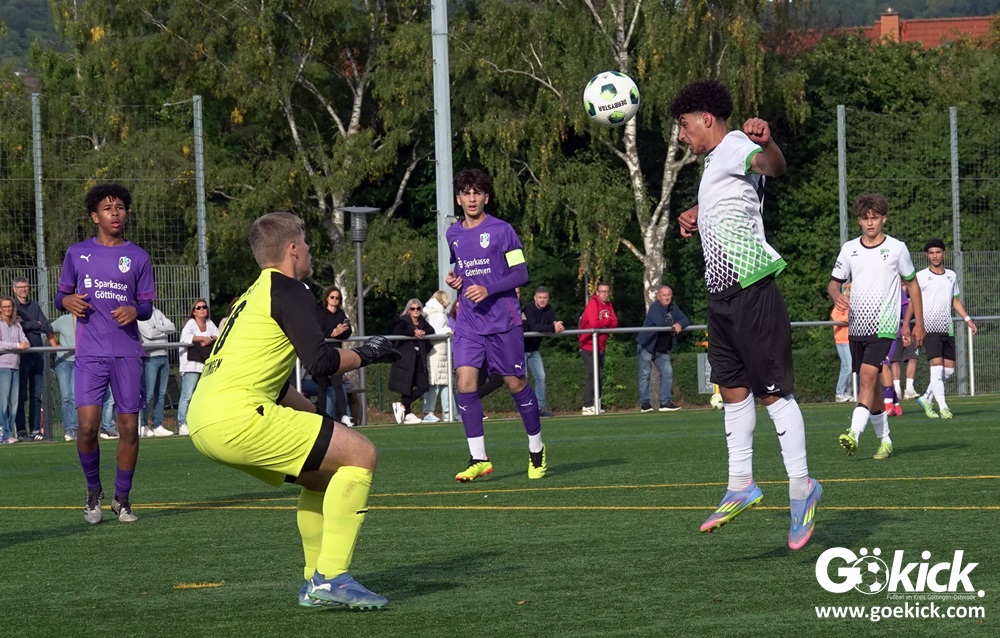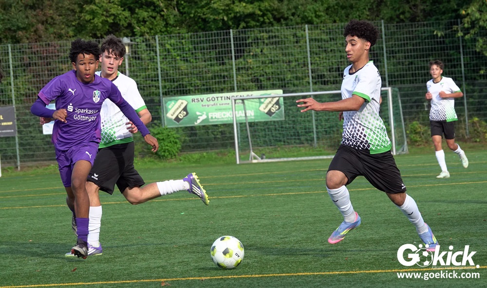 Die Göttinger, betreut vom Trainertrio Timo Ziegler, Michael Lorenz und Daniel Vollbrecht, gingen mit breiter Brust in die Partie. Doch nach einer halben Stunde sorgte Joshua Niemeyer für die kalte Dusche. Mit einem unwiderstehlichen Solo und einem präzisen Schuss mit dem Außenspann ins lange Eck brachte er Acosta in Führung. Kurz vor der Pause jedoch die Antwort des JFV: Gabriel Öztürk traf in der Nachspielzeit der ersten Hälfte zum 1:1 und brachte die Gastgeber zurück ins Spiel. Nach 42 Minuten beendete Schiedsrichter Philip Nordmann den ersten Durchgang.