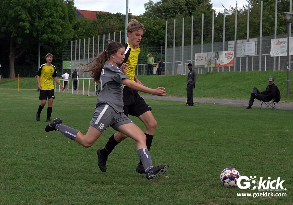 Der Auftakt in die B-Jugend-Kreisliga-Qualifikation brachte am Samstag auf dem Geismarer Sportplatz gleich ein spannendes Duell zweier Spielgemeinschaften. Die JSG SVG/RSV/SCH, die Kräfte der Göttinger Südstadtvereine SVG Göttingen, RSV Geismar und SC Hainberg bündelt, empfing die neu gegründete JSG Münden aus TuSpo Weser Gimte, SG Werratal und TG 1860 Münden. Am Ende setzte sich die Mannschaft von Trainerin Anne-Lene Paul knapp mit 3:2 durch und durfte die ersten Punkte der Saison bejubeln.