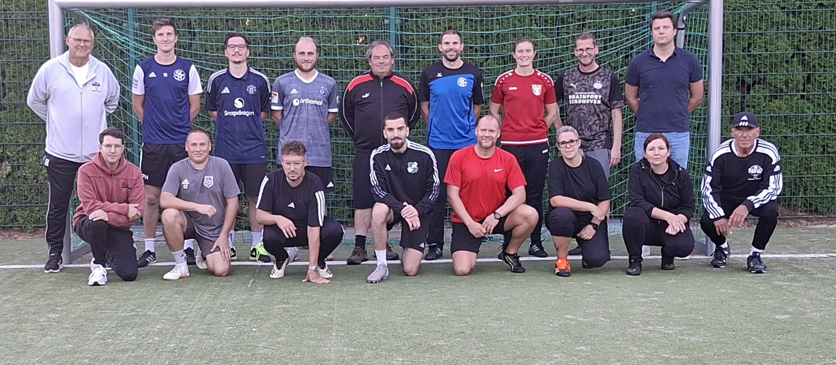 In den Räumlichkeiten und dem Platz des SC Hainberg zeigten 15 motivierte Jugendtrainer großes Interesse an aktuellen Inhalten zum zeitgemäßen Jugendtraining im Fußball.