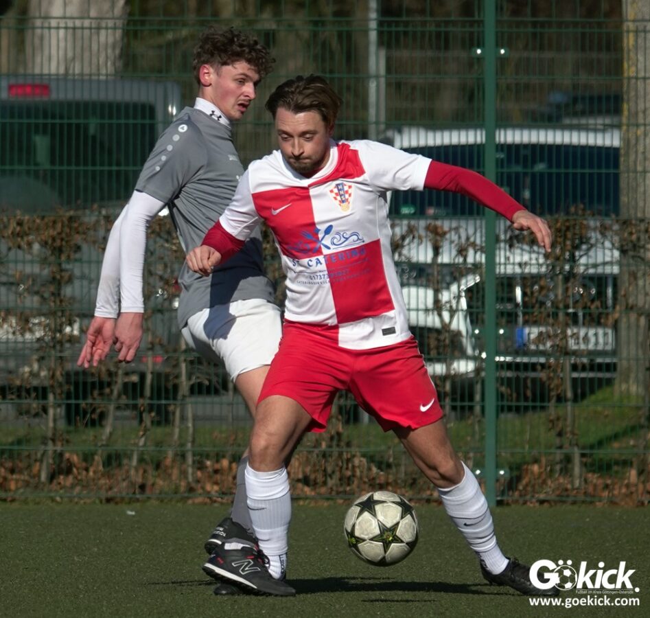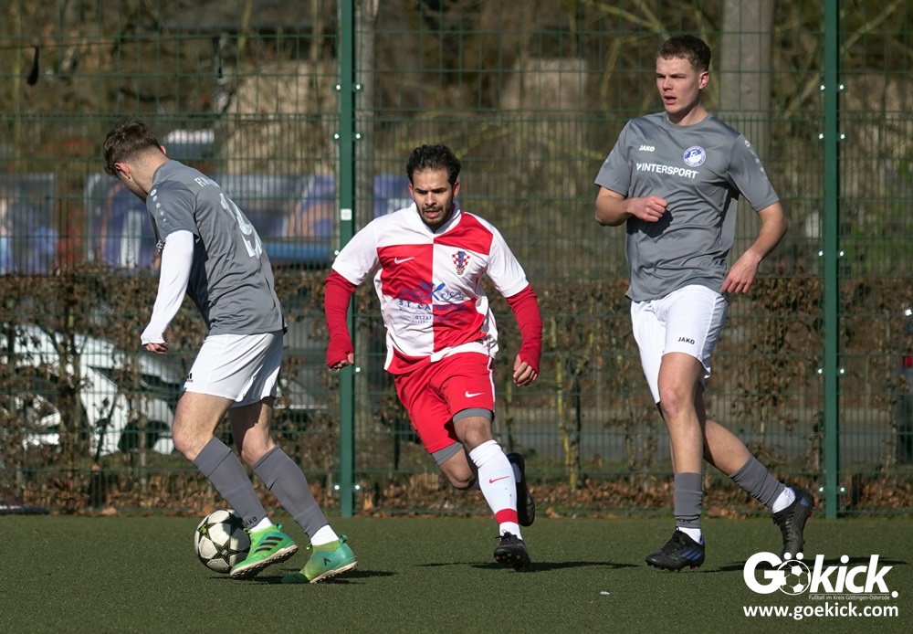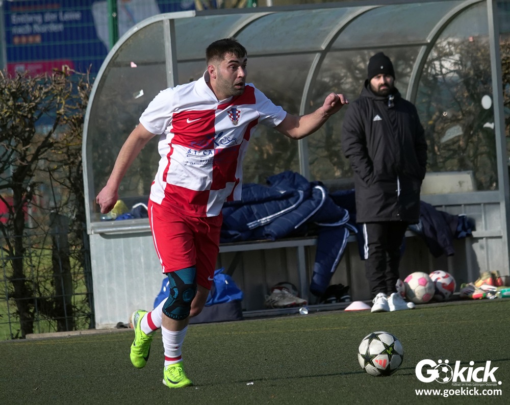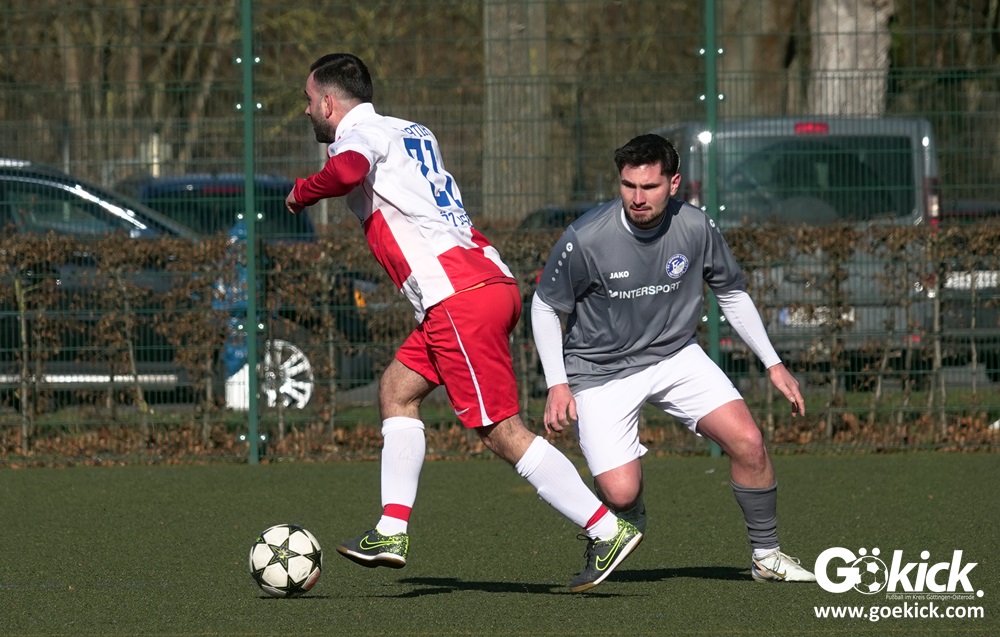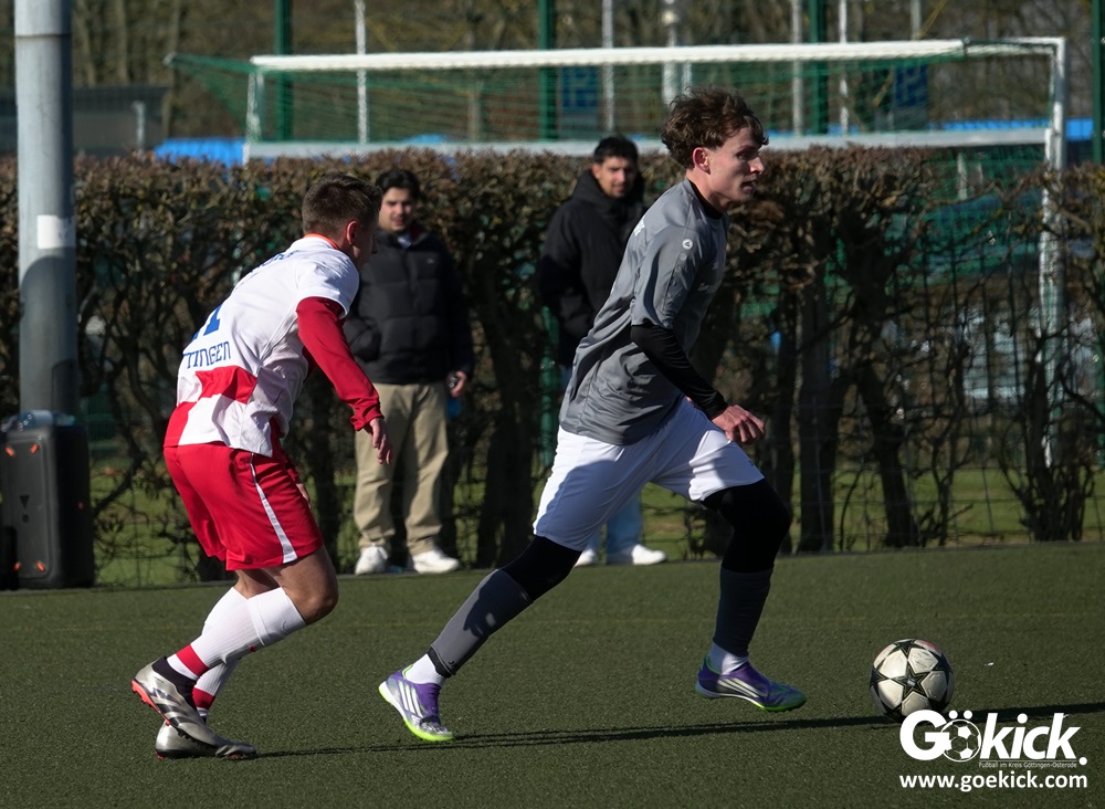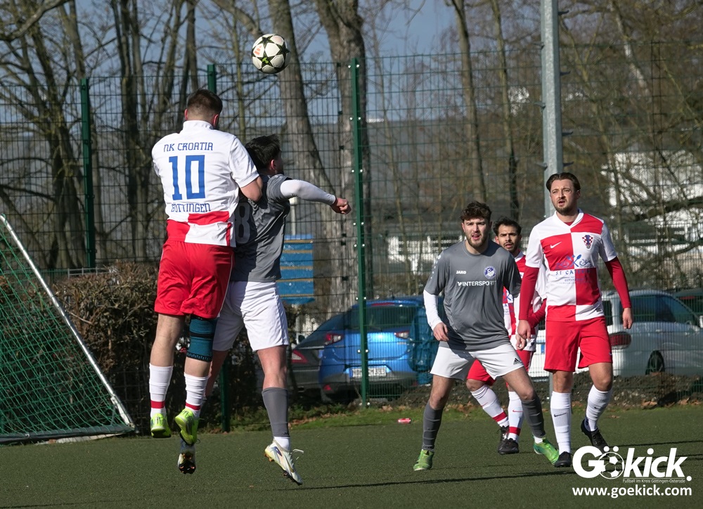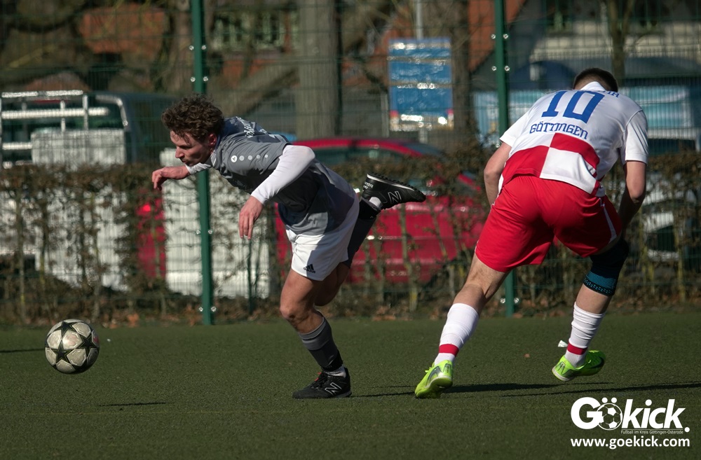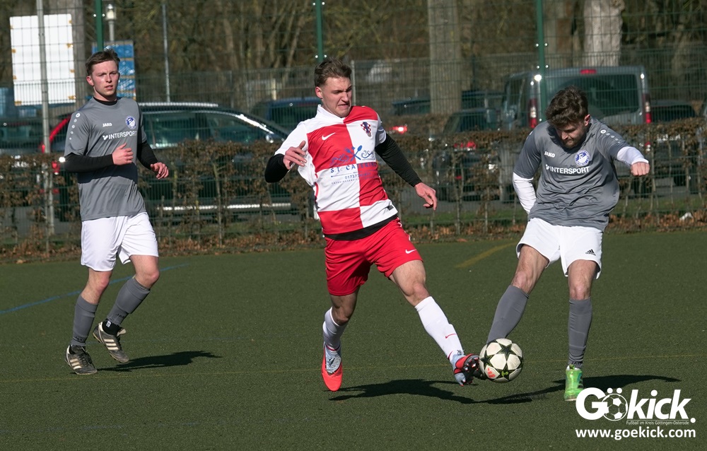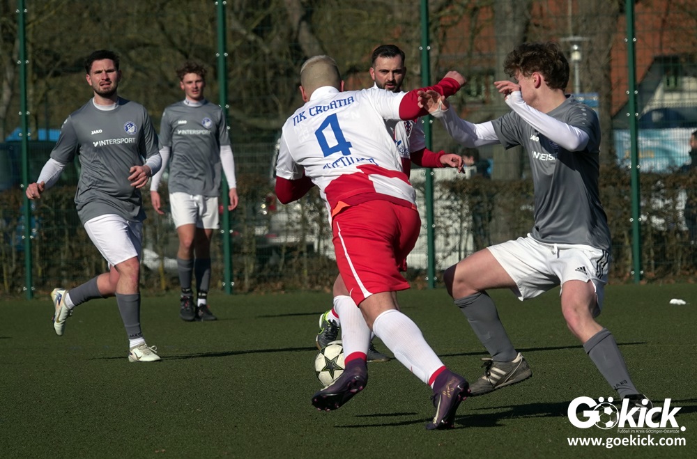 In der 18. Minute brachte Sullivan Mende die Gast-Mannschaft von Trainer Umut Ates mit 1:0 in Führung. NK Croatia Göttingen, betreut von Vjeko Juric, ließ sich davon jedoch nicht beeindrucken. In der 30. Minute erzielte Safat Berisha den Ausgleich. Der Neuzugang vom VfL 08 Herzberg traf sehenswert und deutete an, welches Potenzial er in die Offensive einbringen kann. Gemeinsam mit Torjäger Robert Zovko, der in der Hinrunde 17 Treffer erzielte, soll Berisha künftig für Torgefahr sorgen.