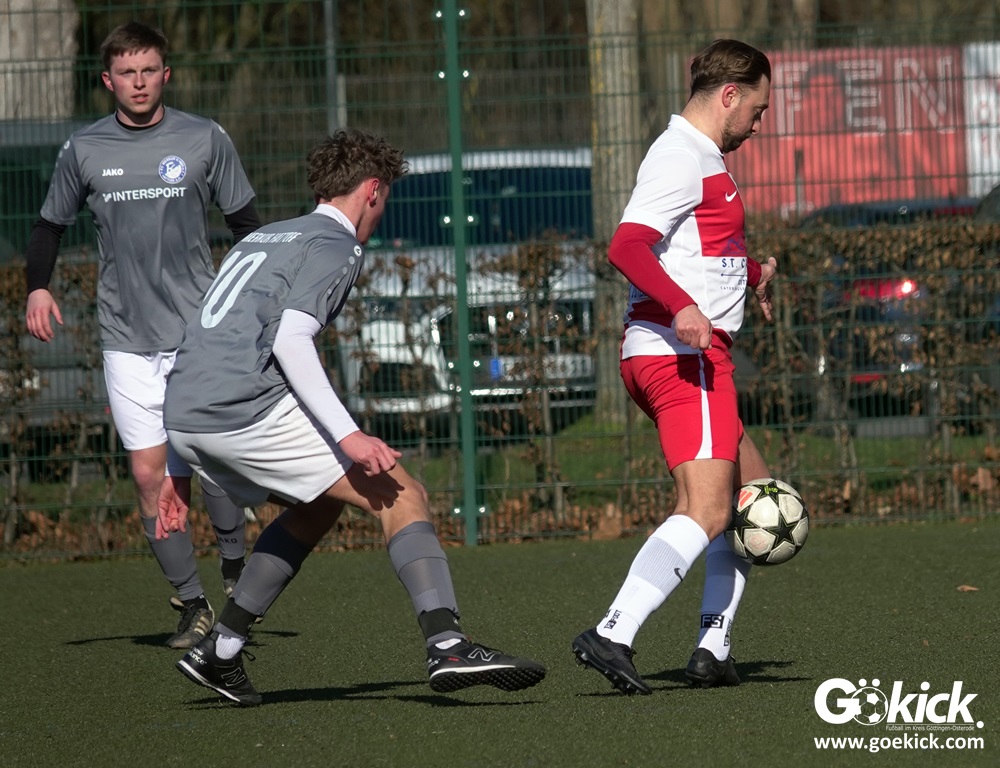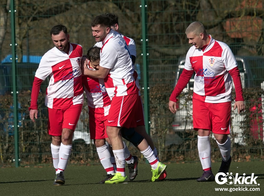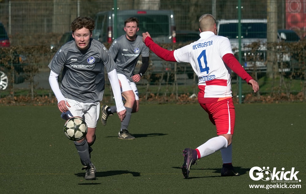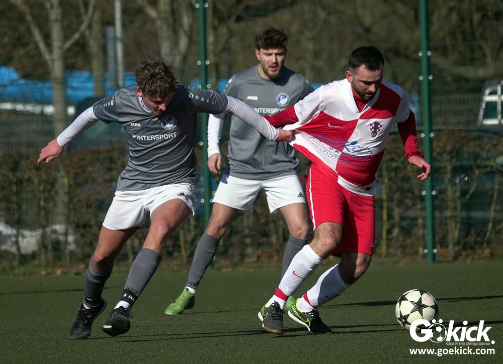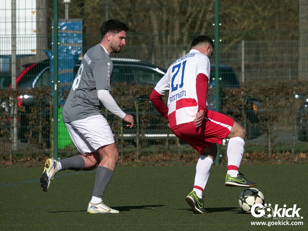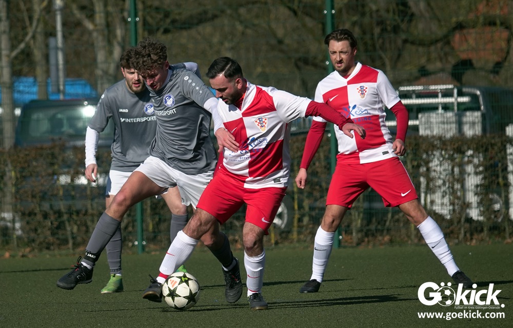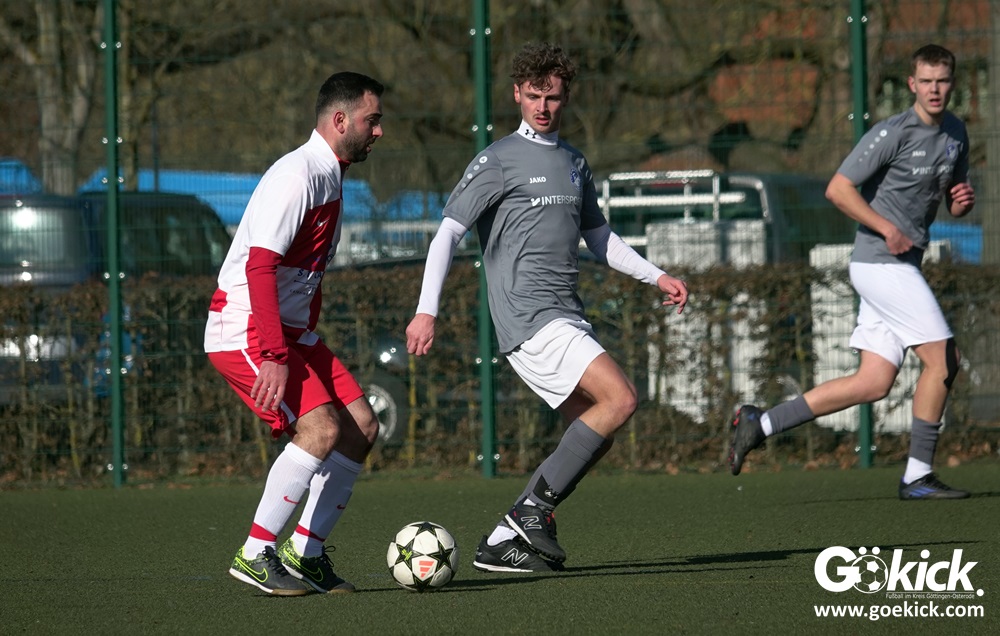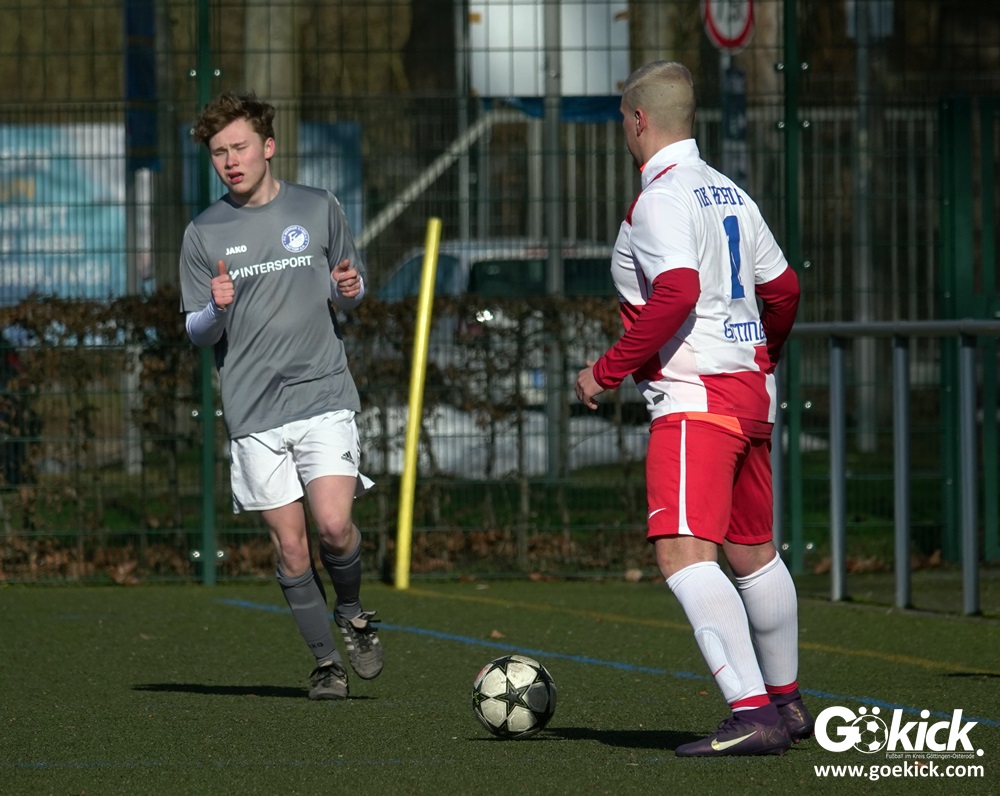 In der 18. Minute brachte Sullivan Mende die Gast-Mannschaft von Trainer Umut Ates mit 1:0 in Führung. NK Croatia Göttingen, betreut von Vjeko Juric, ließ sich davon jedoch nicht beeindrucken. In der 30. Minute erzielte Safat Berisha den Ausgleich. Der Neuzugang vom VfL 08 Herzberg traf sehenswert und deutete an, welches Potenzial er in die Offensive einbringen kann. Gemeinsam mit Torjäger Robert Zovko, der in der Hinrunde 17 Treffer erzielte, soll Berisha künftig für Torgefahr sorgen.
