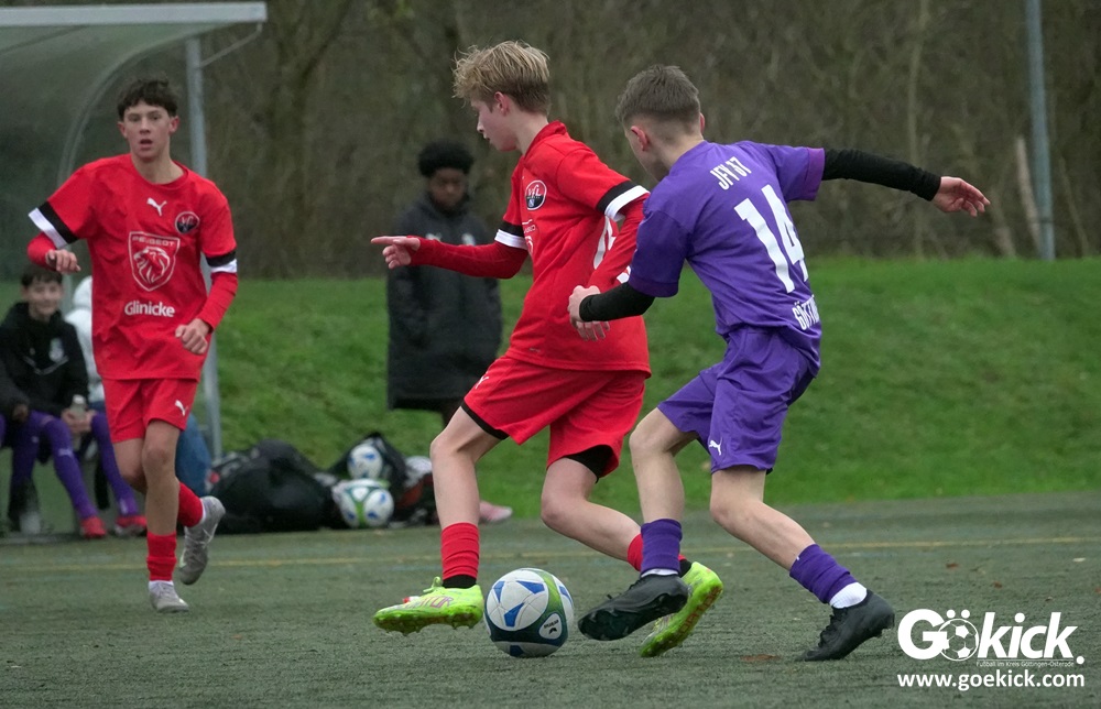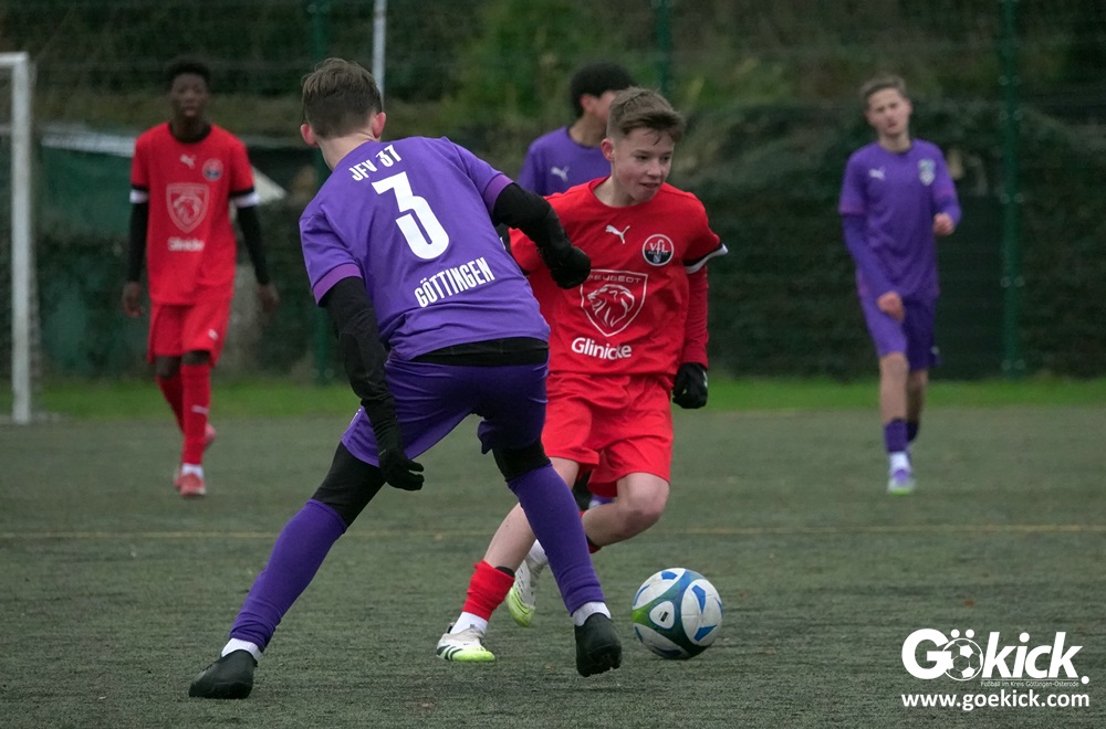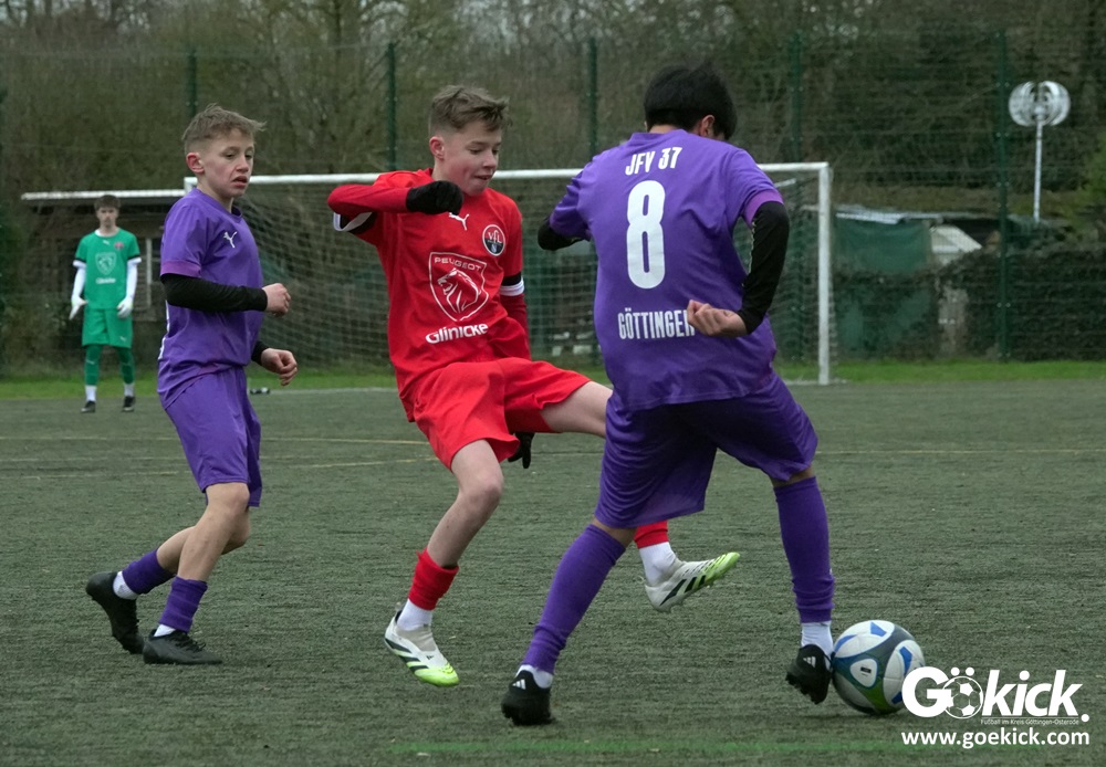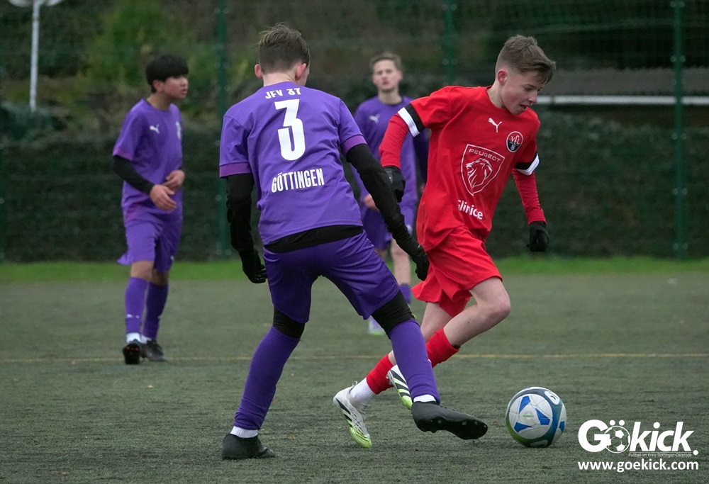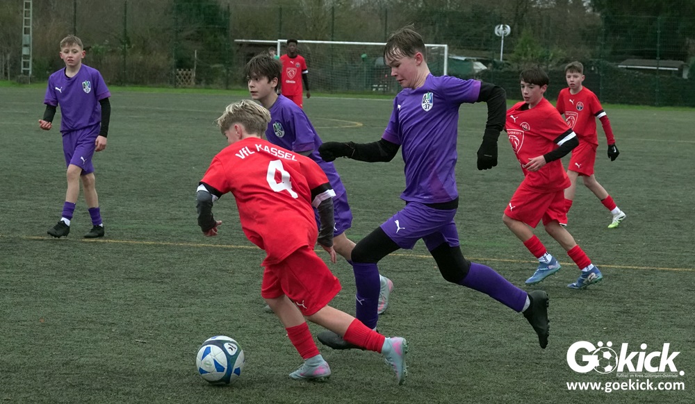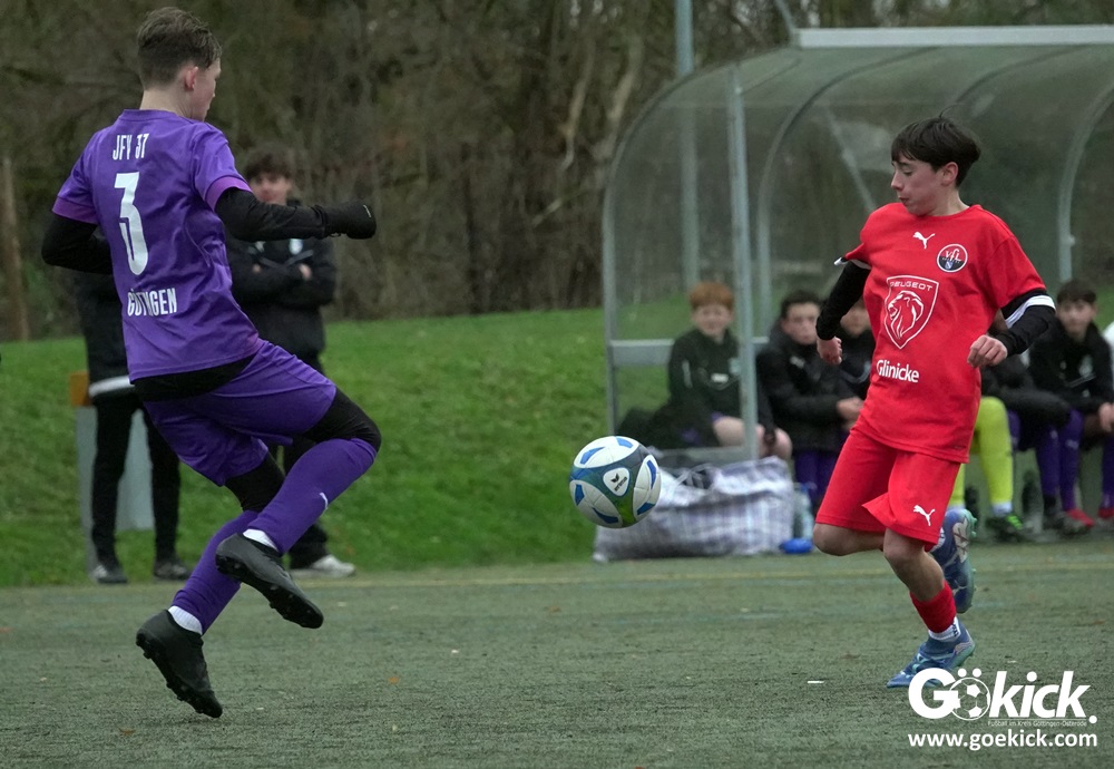 Die U14 des JFV 37 Göttingen nutzte die Winterpause für ein C-Jugend-Testspiel gegen den VfL Kassel, der als unangefochtener Spitzenreiter der Gruppenliga mit maximaler Punktausbeute von 33 Punkten aus 11 Begegnungen angereist war. Gegen die körperlich überlegenen Gäste hatten die Hausherren Pepe Huenges, André Kaufmann und Yannick Kallenberg am Ende beim 0:5 (0:2) wenig Chancen.