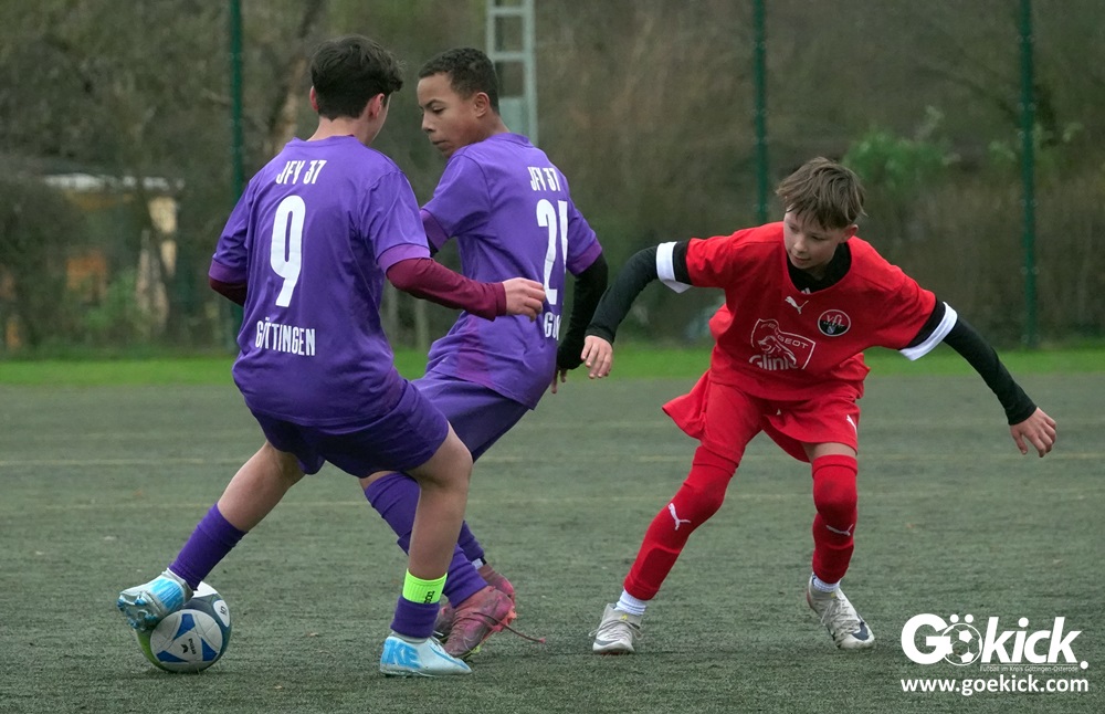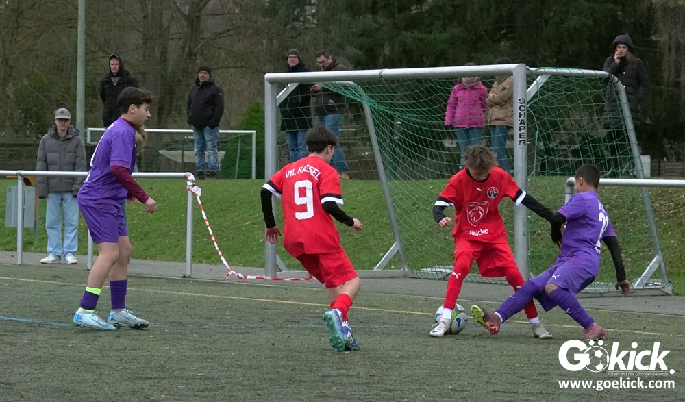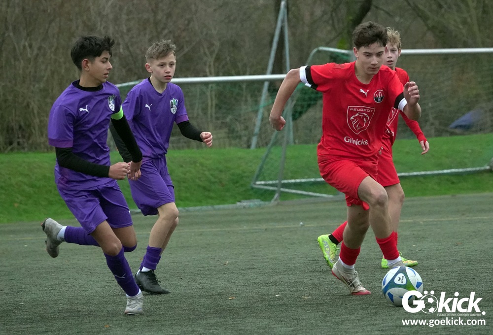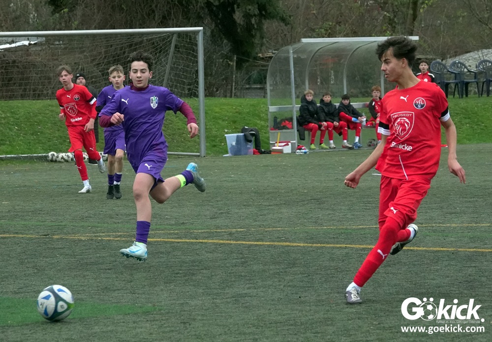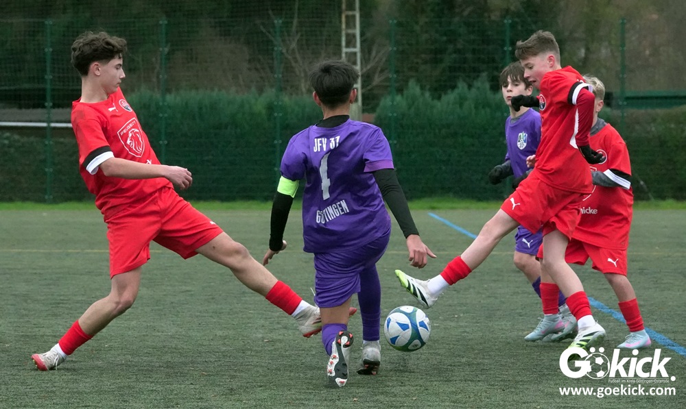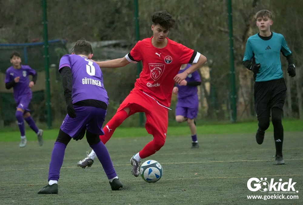 Die U14 des JFV 37 Göttingen nutzte die Winterpause für ein C-Jugend-Testspiel gegen den VfL Kassel, der als unangefochtener Spitzenreiter der Gruppenliga mit maximaler Punktausbeute von 33 Punkten aus 11 Begegnungen angereist war. Gegen die körperlich überlegenen Gäste hatten die Hausherren Pepe Huenges, André Kaufmann und Yannick Kallenberg am Ende beim 0:5 (0:2) wenig Chancen.