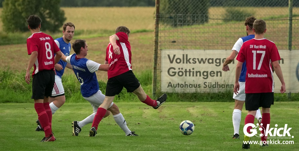 Das wegen der Ballenhäuser Kirmes verlegte Punktspiel der 3. Kreisklasse zwischen dem Absteiger SV Sieboldshausen und der SG Ballenhausen/TSV Groß Schneen II wurde am vergangenen Dienstag nachgeholt. Auf dem idyllisch gelegenen Sportplatz in Sieboldshausen siegte der Gastgeber hochverdient und deutlich mit 6:0 (4:0).Der SV Sieboldshausen feierte nach der 1:2-Niederlage zum Liga-Auftakte gegen die SG Jühnde/Scheden/Bühren/Niemetal II damit den ersten Sieg nach der selbstgewählten Rückkehr in die 3. Kreisklasse. Das bedeutet Platz zwei im noch wenig aussagekräftigen Klassement der D-Staffel. Der Gast aus Ballenhausen rangiert noch ohne Punkt am Tabellenende.