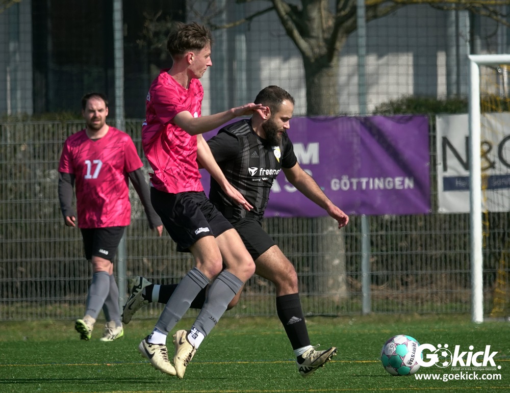 Niklas Reuter brachte die Gäste nach zwei Minuten mit 1:0 in Führung. Mit einem Doppelpack in den Minuten 15 und 20 drehte Musa Sudi Mwamba die Partie und brachte den Gastgeber mit 2:1 in Front. Kurz vor der Pause gelang Jan-Frederic Lange der Ausgleich für den Gast aus der 2. Kreisklasse Northeim-Einbeck. Mit dem Spielstand von 2:2 wurden die Seiten gewechselt.
