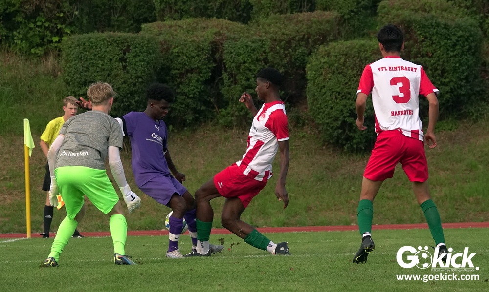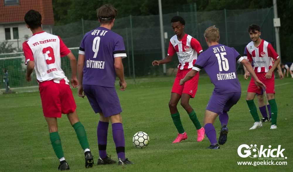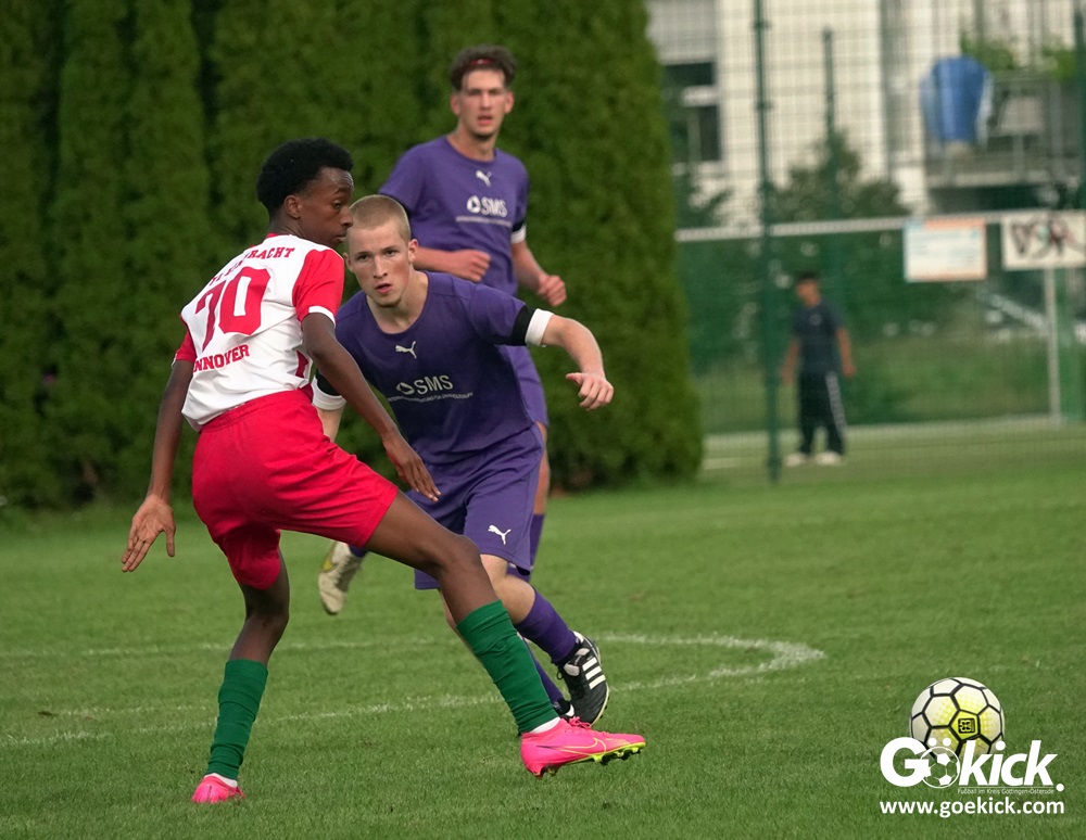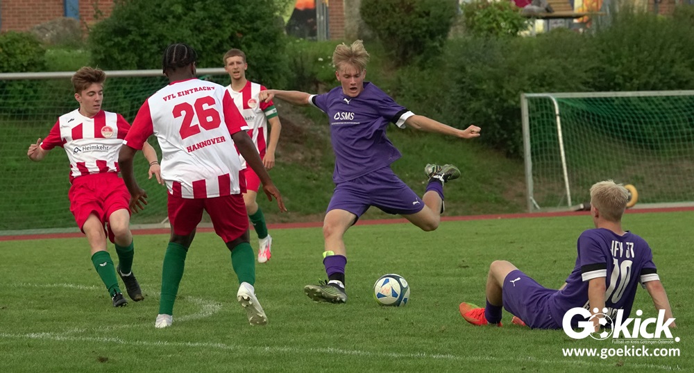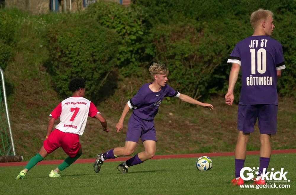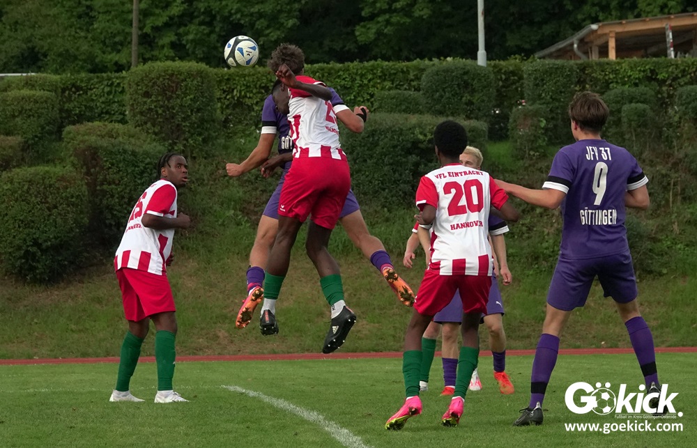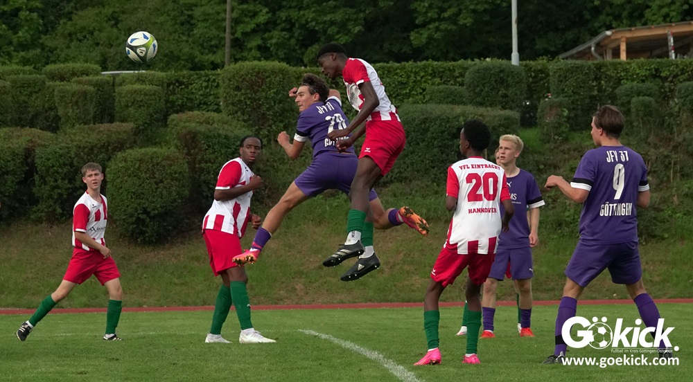 Der A-Jugend-Landesliga-Aufsteiger JFV 37 Göttingen U19 hat einen weiteren Test in Vorbereitung auf die neue Saison erfolgreich bestritten. Auf dem Sportplatz auf den Zietenterrassen besiegte die Mannschaft vom Trainerduo Oliver Hille und Lars Willmann am Mittwoch-Nachmittag den Landesligisten VfL Eintracht Hannover mit 3:0 (3:0).