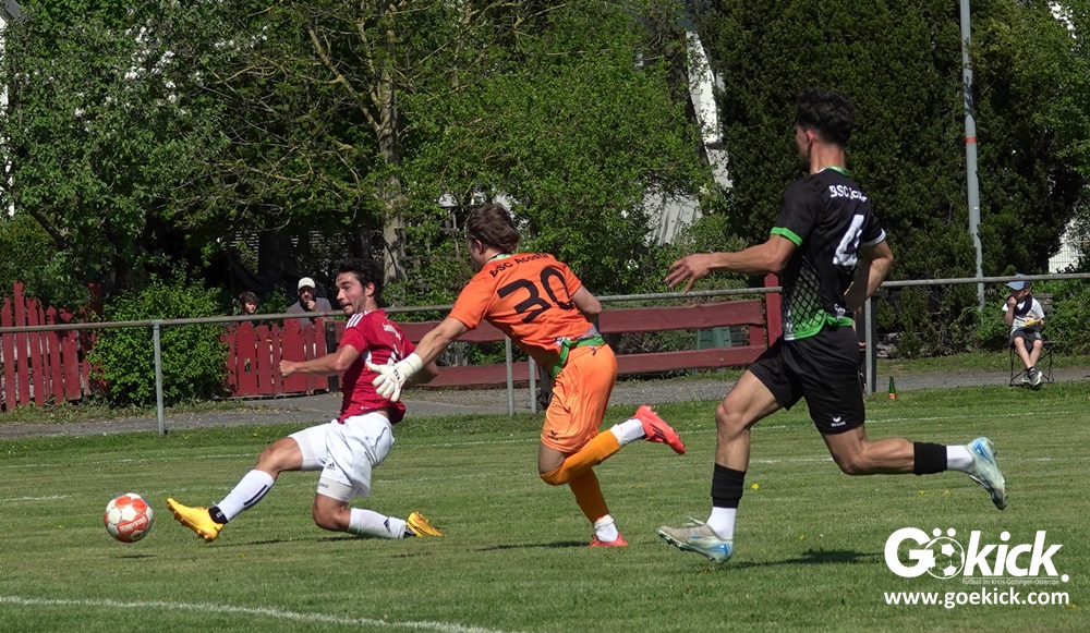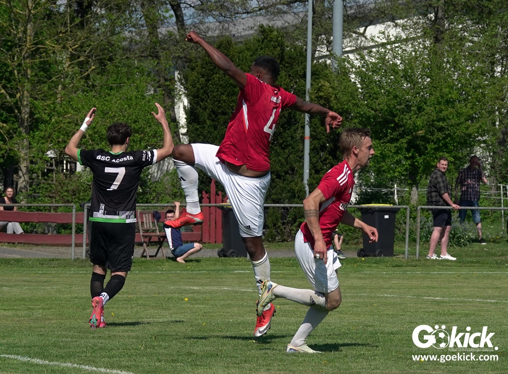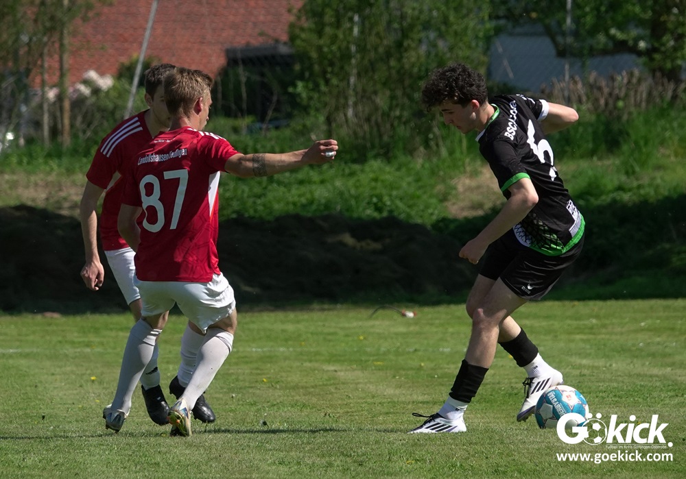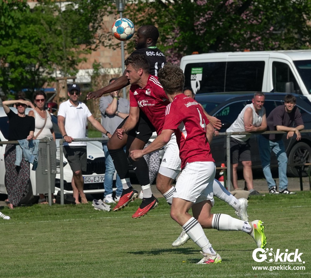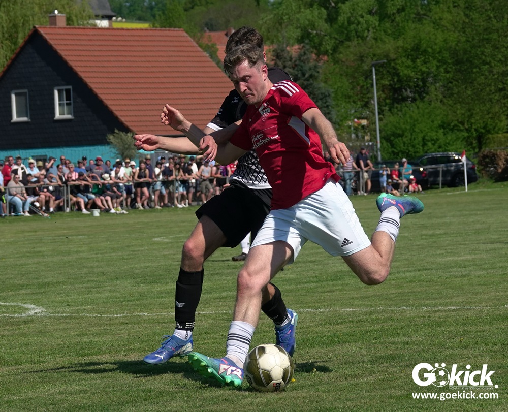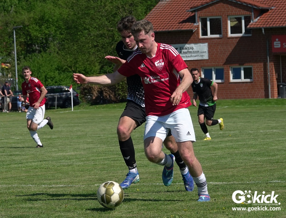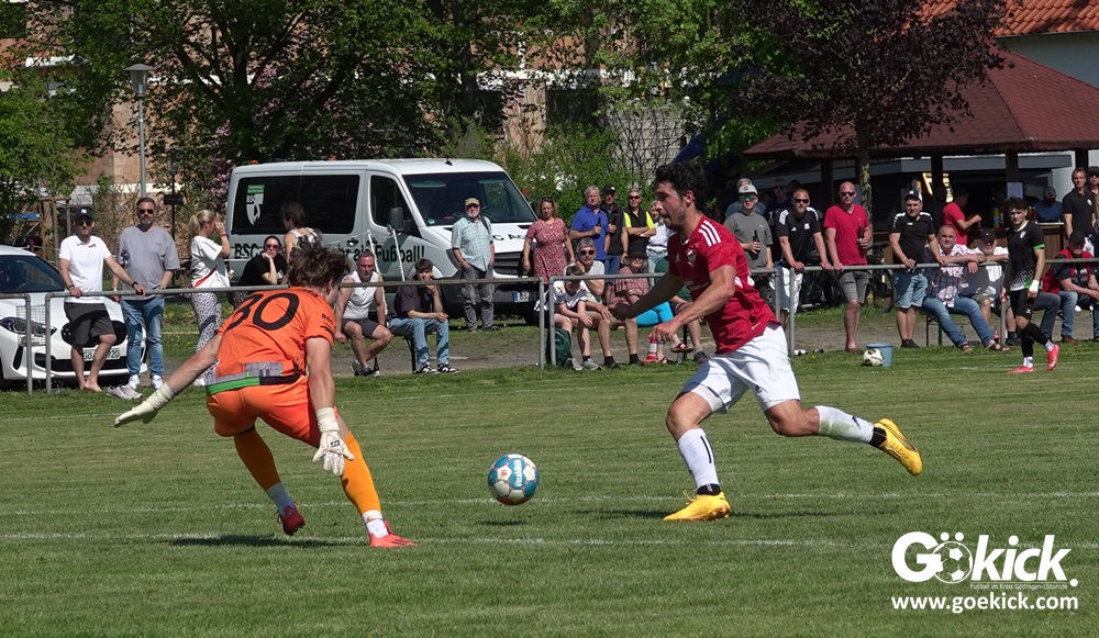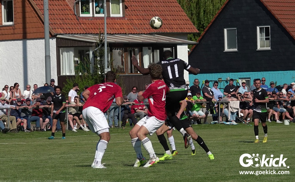 Etwa 350 Zuschauer wollten die Partie auf den Sportplatz neben der Kuhwiese verfolgen. Von Anfang an war der Gastgeber das bessere Team. Völlig verdient brachte Jannik Meck den TSV nach 27 Minuten mit 1:0 in Führung. Er wurde erfolgreich hinter die Abwehrreihe der Gäste freigespielt, umkurvte den BSC-Schlussmann Lukas Finn Chabowski und traf ins verwaiste Tor. Zuvor besaß der Gastgeber mehrfach Chancen, die Führung früher zu erzielen. Kurz vor dem Seitenwechsel (44.) das 2:0 durch Rolf-Hendrik Ziegner, der einen langen Einwurf von Jannik Meck per Seitfallzieher aus sieben Metern sehenswert vollendete. Mit der verdienten Führung ging es in die Halbzeitpause.