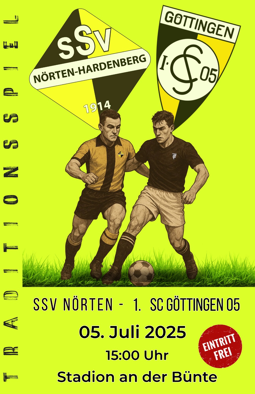 Seinen 111. Geburtstag begeht der SSV Nörten-Hardenberg in diesem Jahr. Gefeiert wird dieses Jubiläum am kommenden Wochenende mit einem Fest vom 4. bis zum 6. Juli. Der Höhepunkt auf dem Terminplan dürfte das Spiel der Traditionsmannschaften des Geburtstagskindes und des 1. SC Göttingen 05 am Samstag-Nachmittag ab 15:00 Uhr sein.