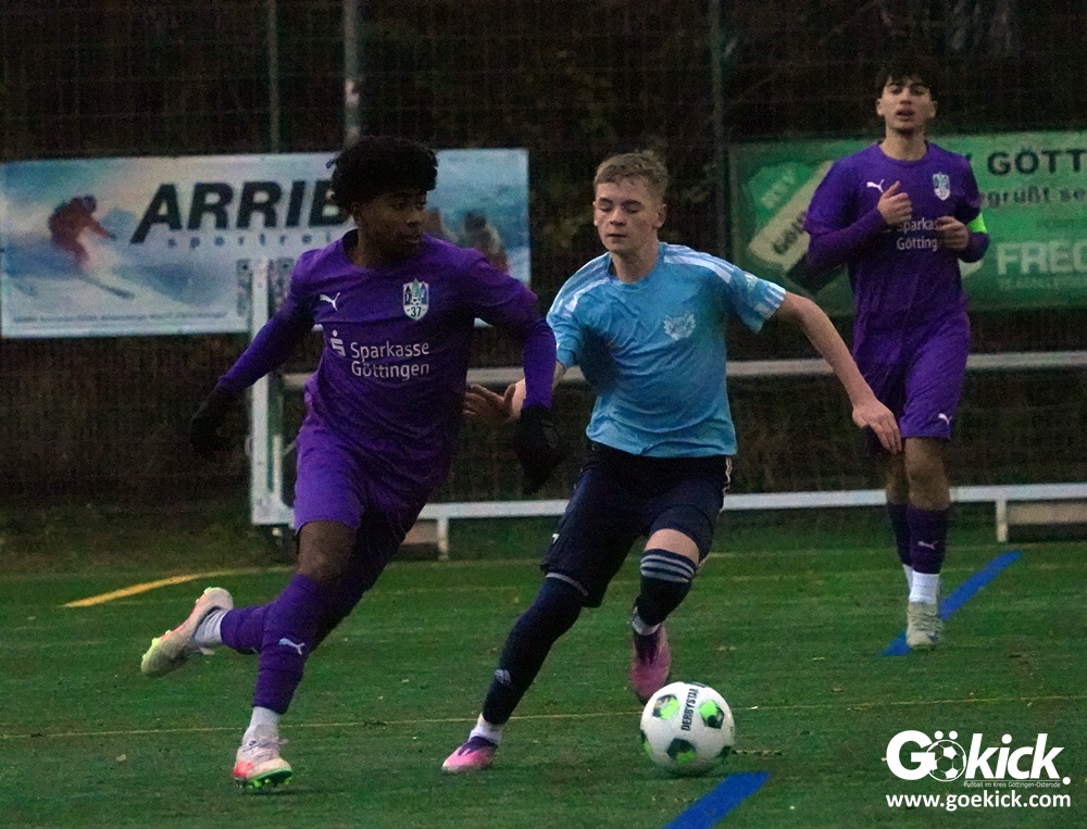 Das Testspiel zwischen der U17 des JFV 37 Göttingen und der SG Blaues Wunder Hannover bot zwei völlig unterschiedliche Halbzeiten. Was zunächst nach einem kontrollierten Auftritt der Gäste aussah, verwandelte sich nach der Pause in eine kraftvolle Reaktion des Landesligadritten. Die Mannschaft vom Trainertrio Timo Ziegler, Michael Lorenz und Daniel Vollbrecht setzte sich am Ende mit 5:3 durch – eine Entwicklung, die in dieser Deutlichkeit zur Halbzeit kaum absehbar war.