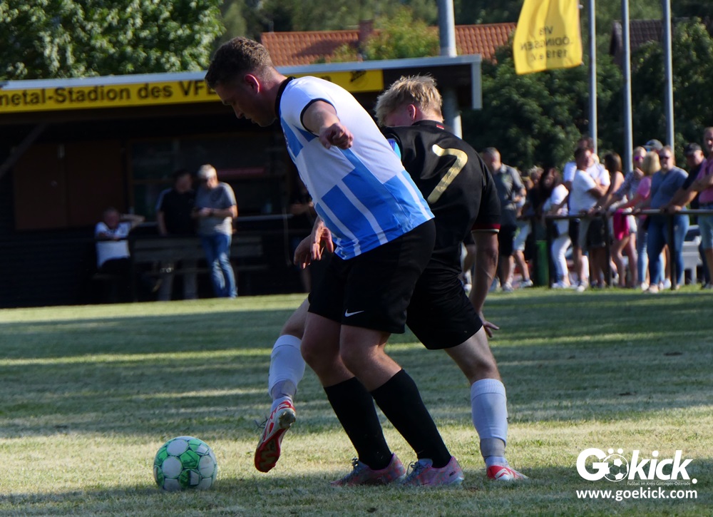 Das traditionelle Volksbank Adelebsen-Turnier steigt in diesem Jahr im Rahmen der Sporttage des VfB Lödingsen auf dessen Sportplatz. Das Turnier begann am vergangenen Montag mit dem ersten Spieltag. Der Gastgeber FC Lindenberg Adelebsen, frischgebackener Aufsteiger in die 1. Kreisklasse, trat zum Auftakt gegen das Team des FC Grefenburg an. Dieses Team wurde im Vorjahr nach langer Pause aus der Taufe gehoben und startet in dieser Saison erstmals wieder auf Großfeld in der 3. Kreisklasse D. Das Ergebnis dieses ersten Turnierspiels entsprach dann auch den Erwartungen: Der FC Lindenberg Adelebsen siegte klar mit 5:0 (2:0).