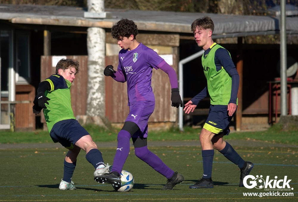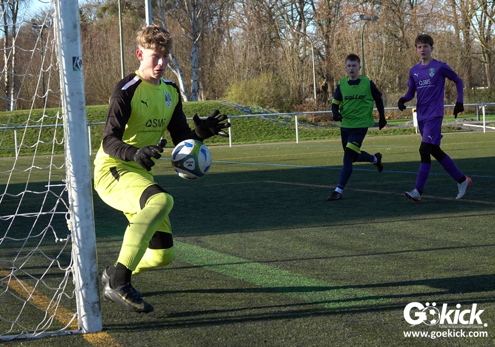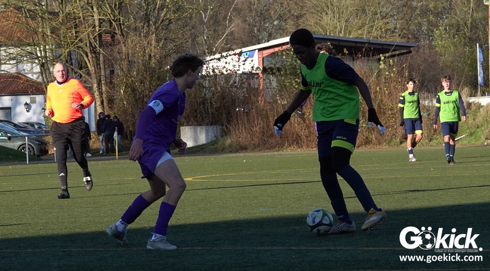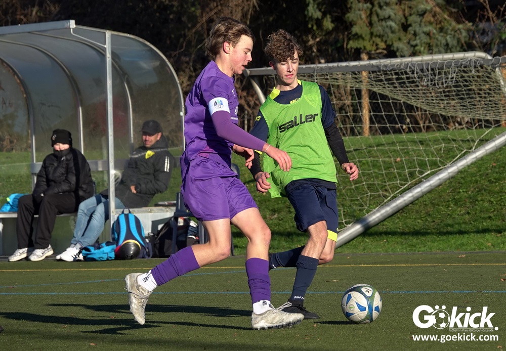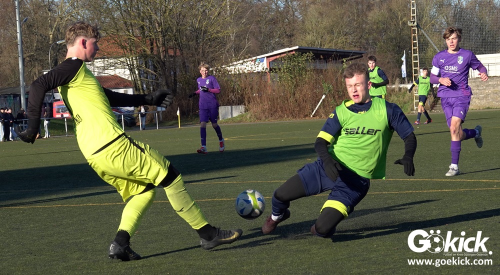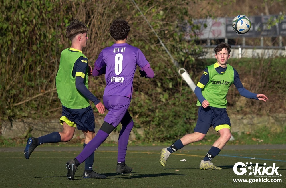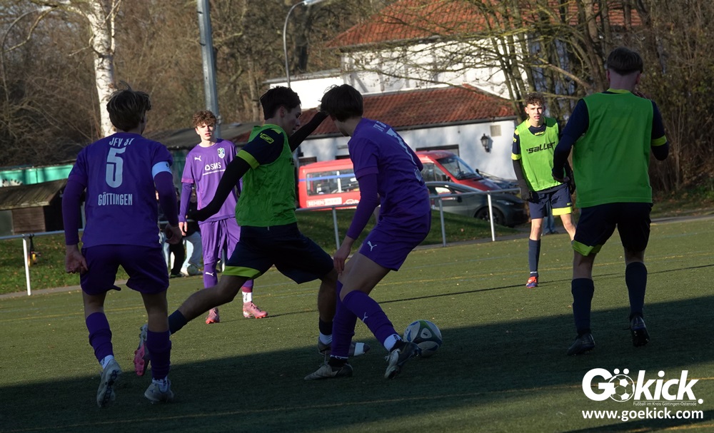 Der JFV begann strukturiert und zeigte von Beginn an, weshalb er an der Tabellenspitze steht. Die Mannschaft vom Trainerduo Lennart Evers und Maurice Fricke kontrollierte weite Teile des ersten Durchgangs, ohne die stabile Defensive der Gäste konsequent zu durchbrechen. Die JSG Goslar verteidigte aufmerksam, suchte immer wieder Entlastung und zeigte, warum sie ebenfalls zu den stärksten Teams der Liga zählt.