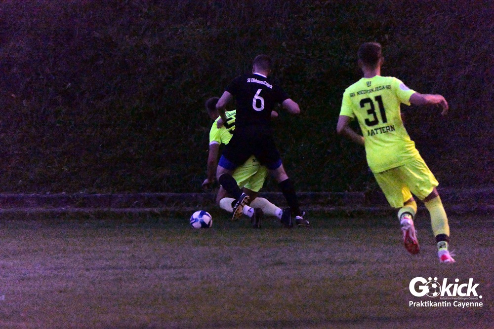 Die SG Niedernjesa behält ihre stolze Bilanz ohne Punktverlust in der 1. Kreisklasse Süd. Das Team vom Trainerduo Christian Dreher und Martin Schiller gewann auch am Donnerstag-Abend in einem Nachholspiel des 7. Spieltages beim starken Aufsteiger SG Elliehausen/Esebeck vor einer beachtlichen Kulisse mit 3:1 (1:1). Das war für die SGN der achte Sieg im achten Spiel. Der Lohn: Die klare Tabellenführung und ein großer Schritt in Richtung Herbstmeisterschaft. Der Gastgeber von Trainer Jan Schelp bleibt mit zehn Punkten aus sieben Spielen Tabellen-Sechster.
