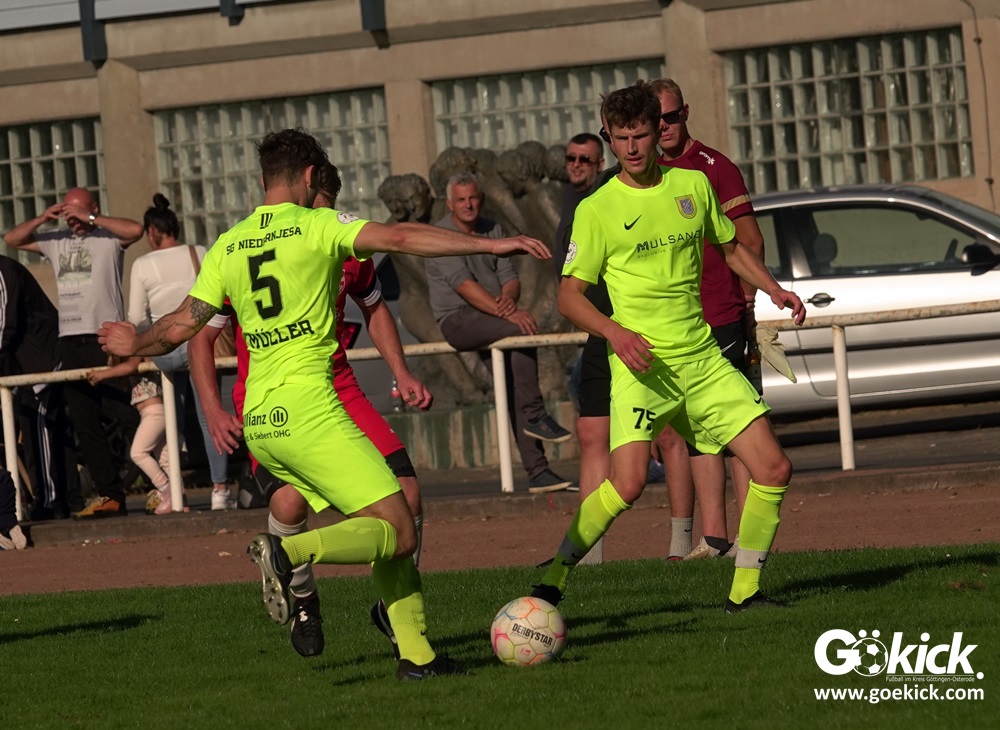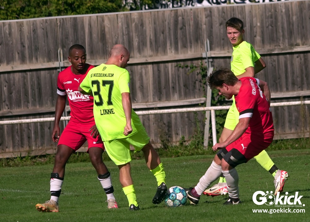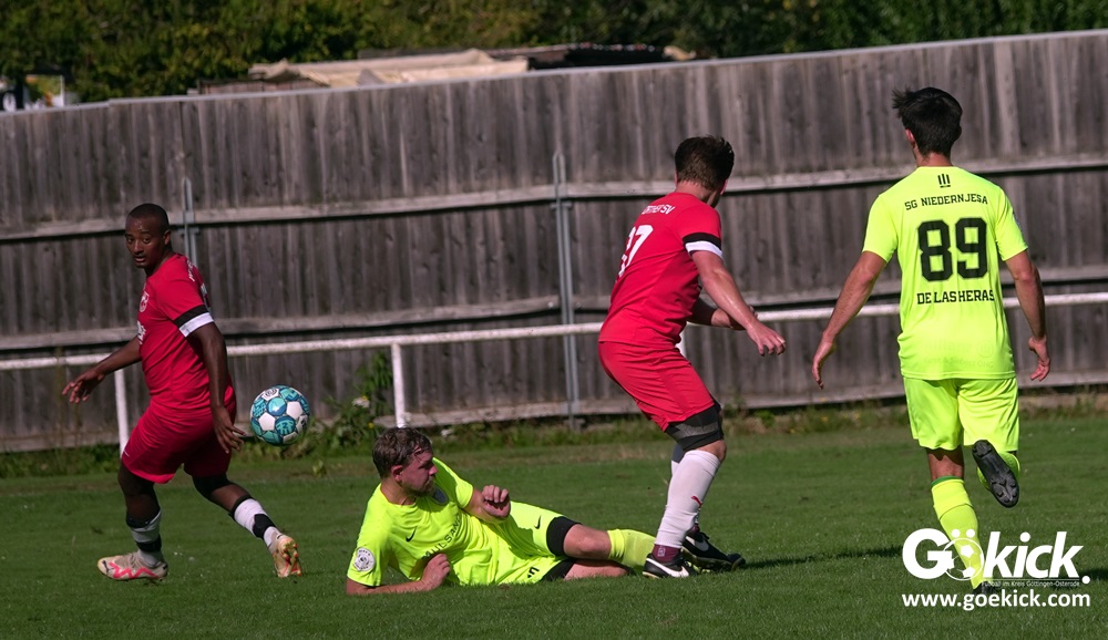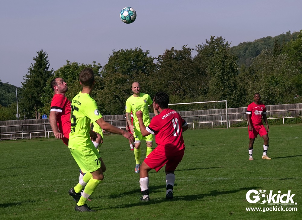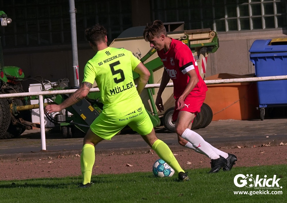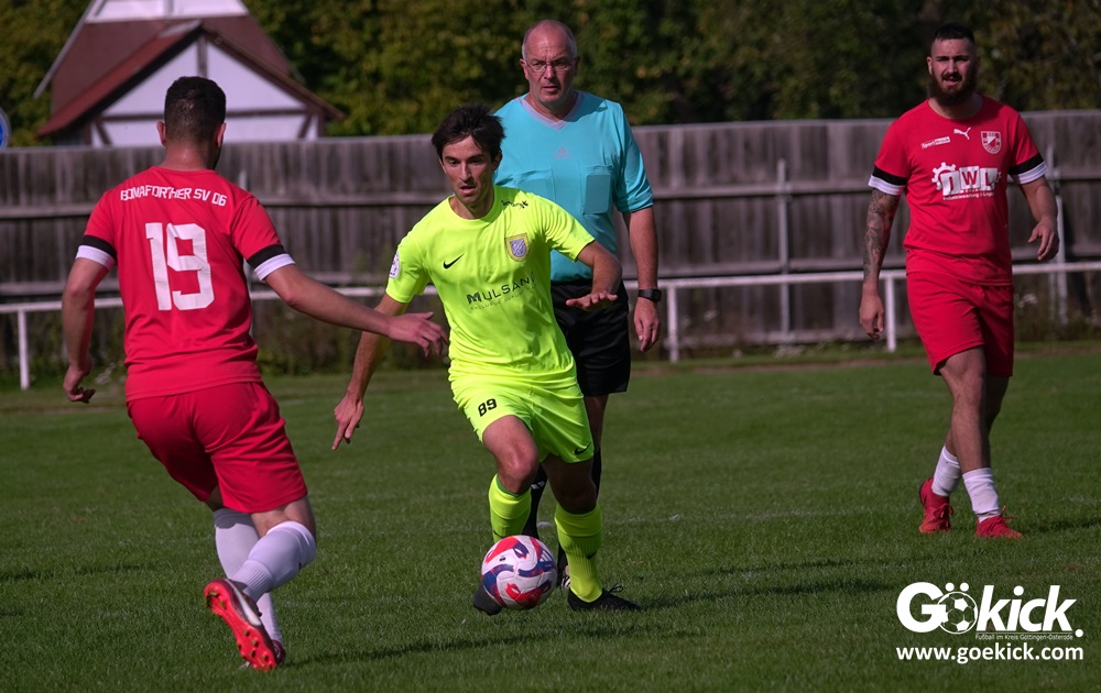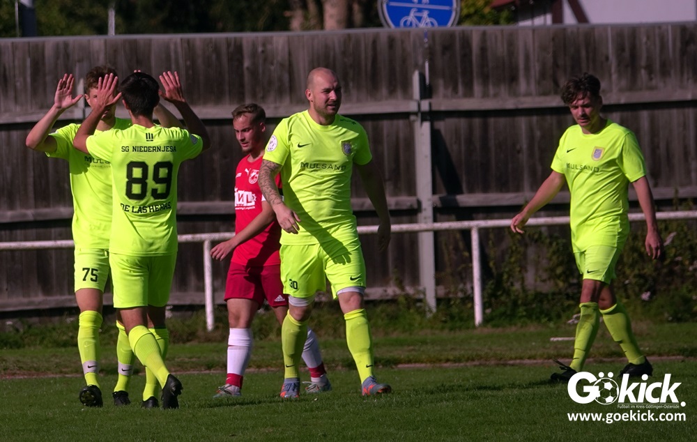 Im Vorjahr unterlag die SG Niedernjesa beim Bonaforther SV noch mit 1:2, damals aber auf dem gerade sanierten Sportplatz in Bonaforth. Diese Niederlage war der Tiefpunkt der schwachen Rückrunde der SG Niedernjesa, die mit dem undankbaren dritten Tabellenplatz endete. Diesmal, das war der SG Niedernjesa anzumerken, wollten die Spieler eine solche Pleite vermeiden. Doch nach sechs Minuten musste der Gast zuerst einmal einen Rückstand verkraften. Julian Bonic kam am Strafraum vor SGN-Schlussmann Dominick „Latscho“ Theune zum Abschluss und ließ diesem bei seinem Flachschuss keine Abwehrchance. Wütende Angriffe folgten, Bonaforths Schlussmann Michael Trapp stand fortan im Fokus des Geschehens. Das 1:1 war ein Geniestreich des ehemaligen SVG-Spielmachers Josú De las Héras Vicuña: Sein Freistoß praktisch von der linken Grundlinie landete im langen Winkel in den Maschen der Hausherren (17.). Mit dem 1:1 wurden die Seiten gewechselt.