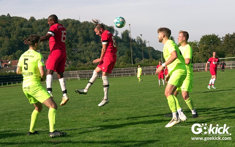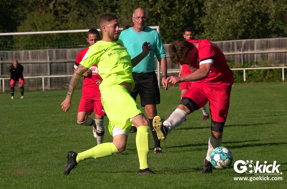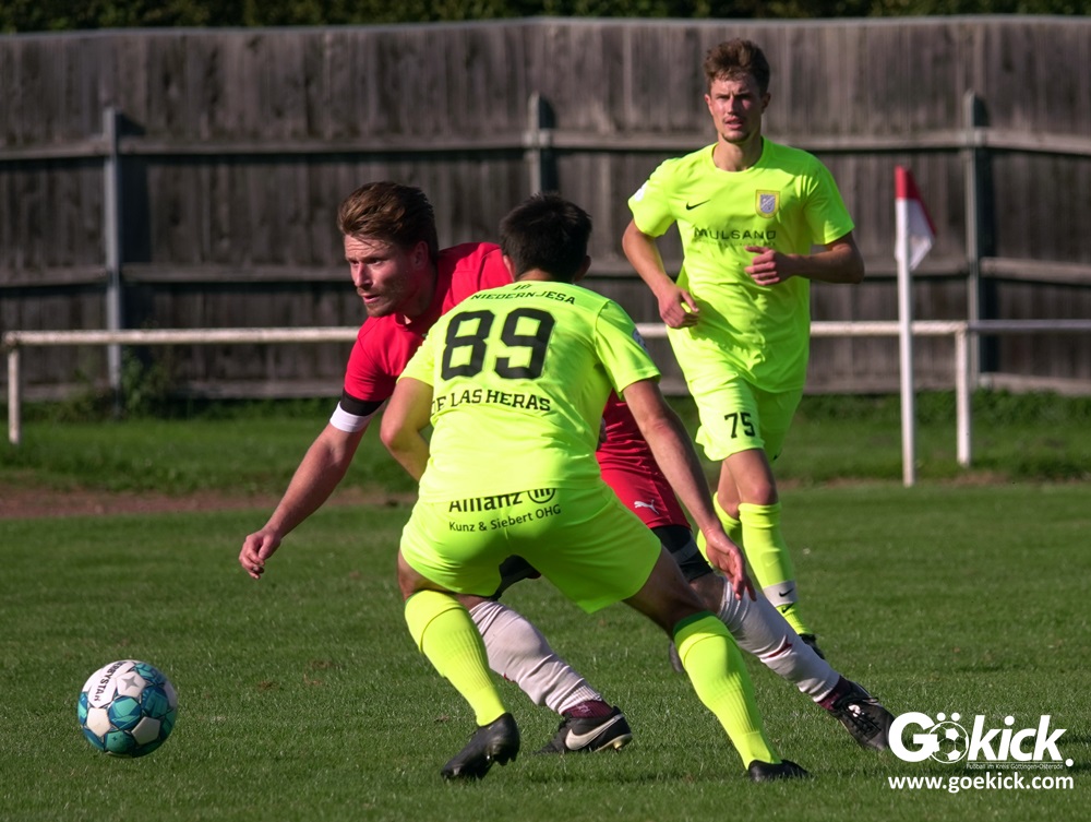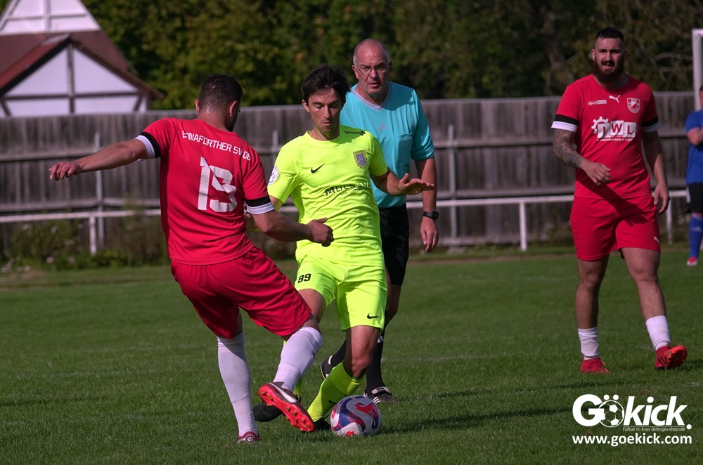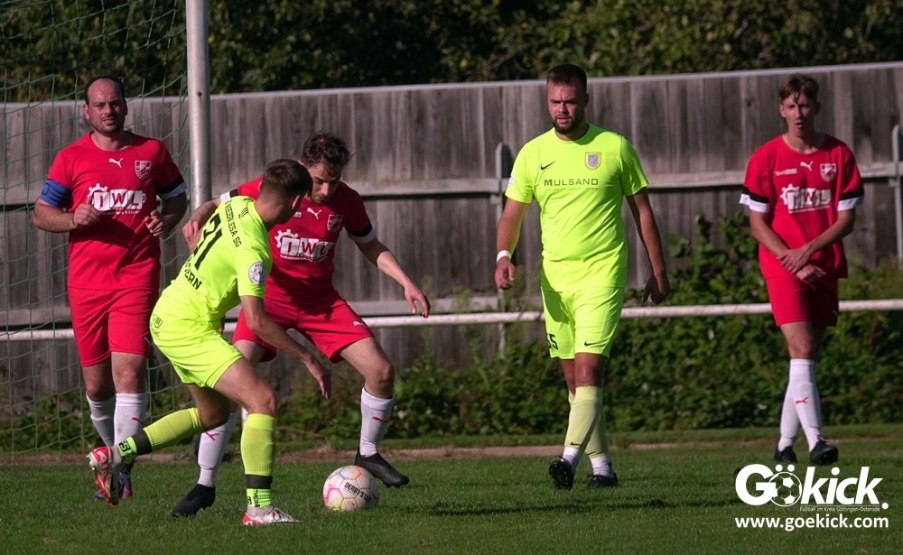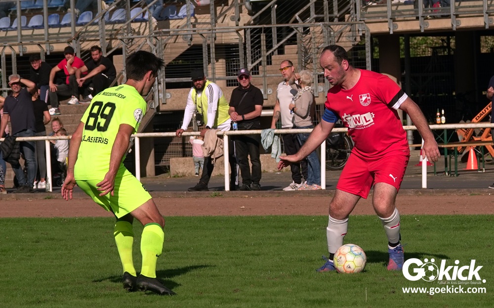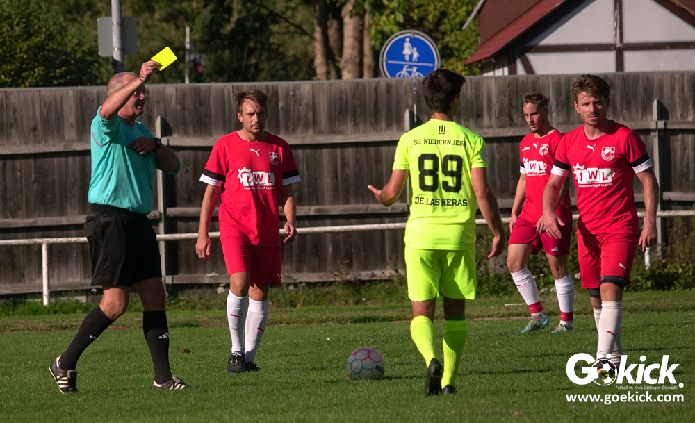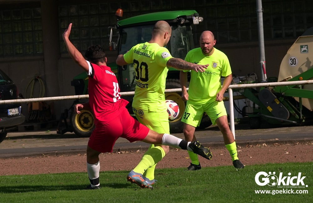 Im Vorjahr unterlag die SG Niedernjesa beim Bonaforther SV noch mit 1:2, damals aber auf dem gerade sanierten Sportplatz in Bonaforth. Diese Niederlage war der Tiefpunkt der schwachen Rückrunde der SG Niedernjesa, die mit dem undankbaren dritten Tabellenplatz endete. Diesmal, das war der SG Niedernjesa anzumerken, wollten die Spieler eine solche Pleite vermeiden. Doch nach sechs Minuten musste der Gast zuerst einmal einen Rückstand verkraften. Julian Bonic kam am Strafraum vor SGN-Schlussmann Dominick „Latscho“ Theune zum Abschluss und ließ diesem bei seinem Flachschuss keine Abwehrchance. Wütende Angriffe folgten, Bonaforths Schlussmann Michael Trapp stand fortan im Fokus des Geschehens. Das 1:1 war ein Geniestreich des ehemaligen SVG-Spielmachers Josú De las Héras Vicuña: Sein Freistoß praktisch von der linken Grundlinie landete im langen Winkel in den Maschen der Hausherren (17.). Mit dem 1:1 wurden die Seiten gewechselt.