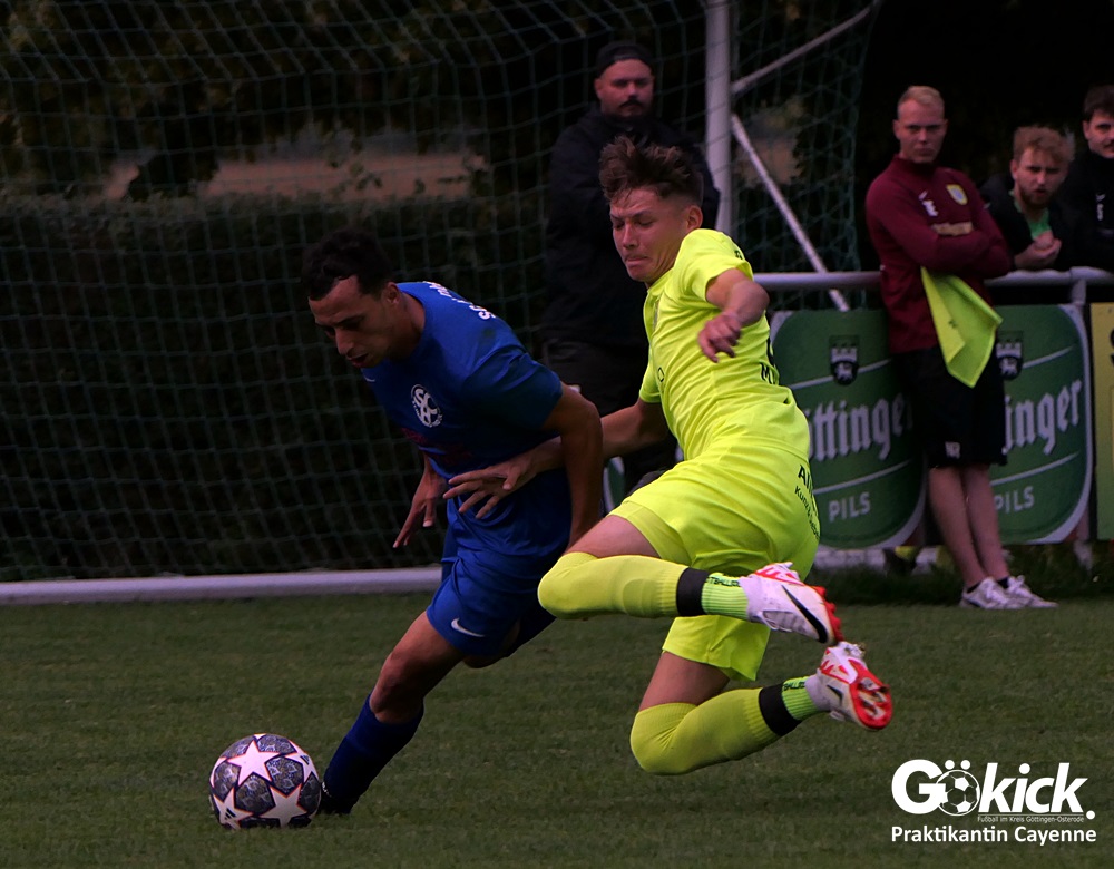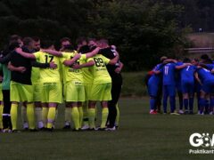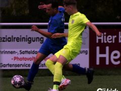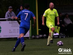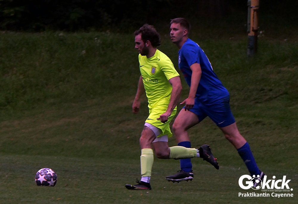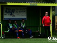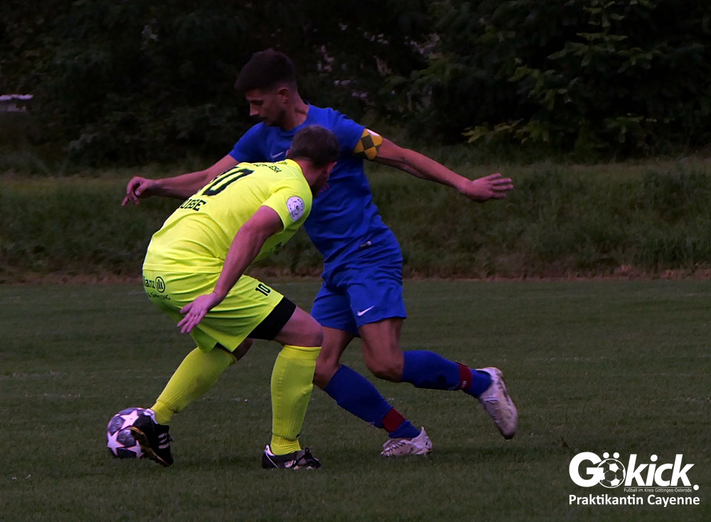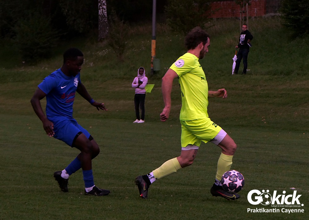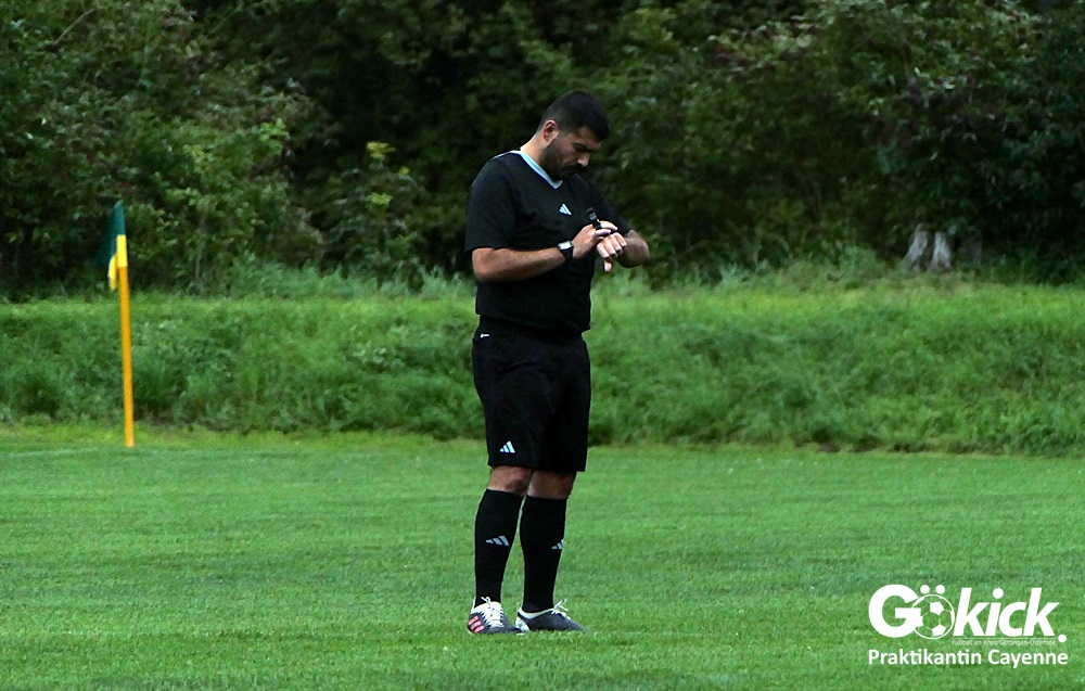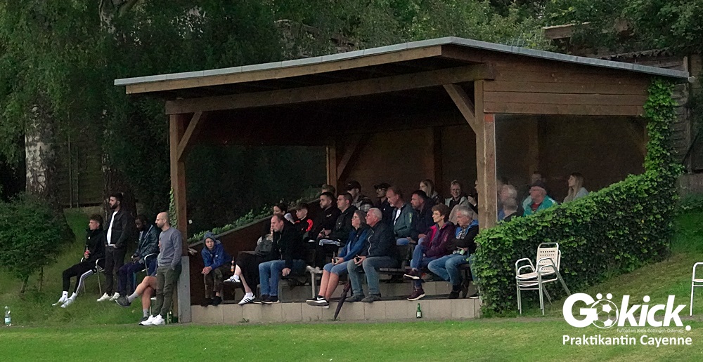 Im zweiten Durchgang begann dann der Regen, der die Zuschauer auf die Tribüne oder in das Festzelt, das aktuell als Umkleide-Kabine dient, trieb. Nach 58 Minuten gab der fleißige Schiedsrichter Yusuf Can für die Gastgeber einen vertretbaren Foulelfmeter. Jan Bubbe lief an, Justus Mühlhaus hielt den Schuss, den Bubbe im Nachschuss zum 1:0 verwandelte.