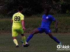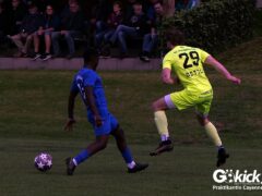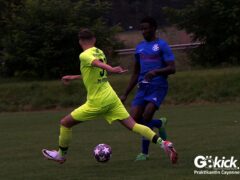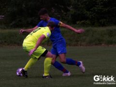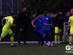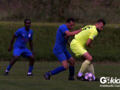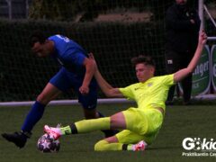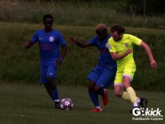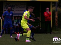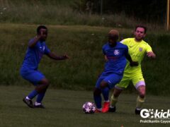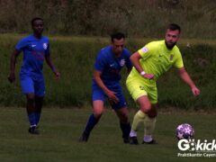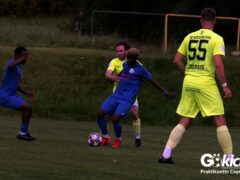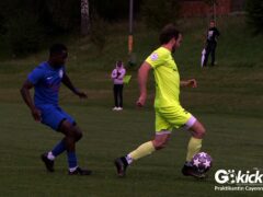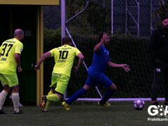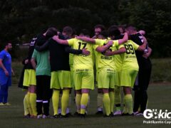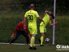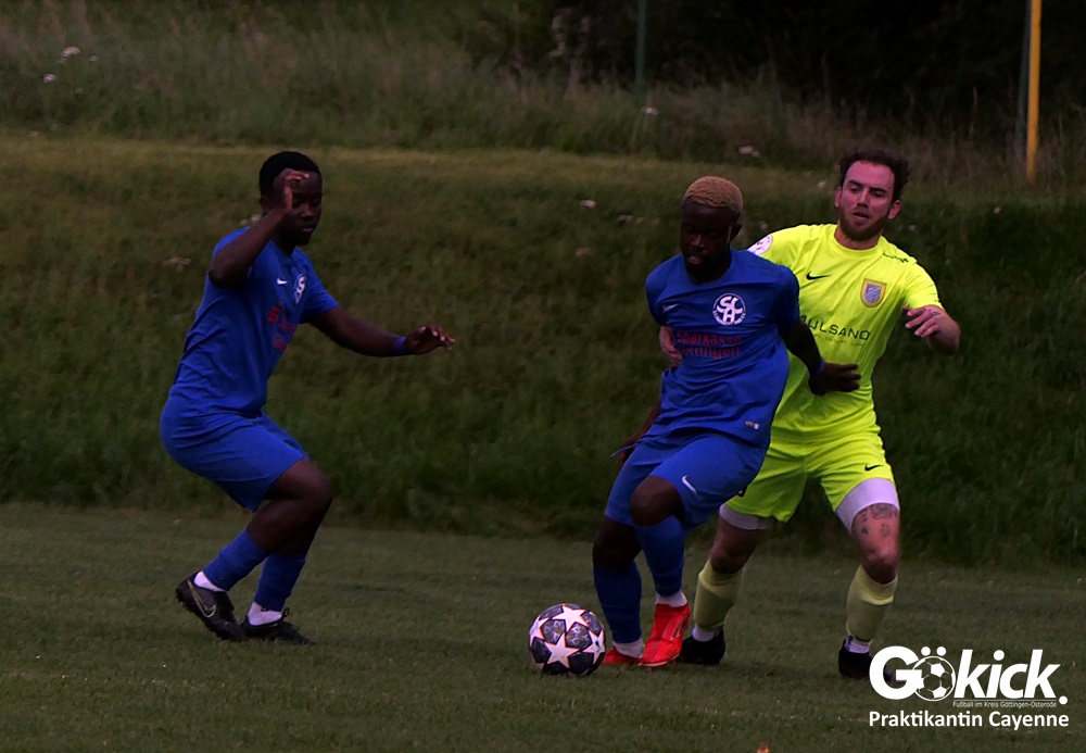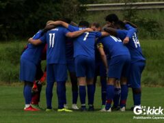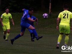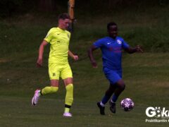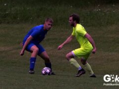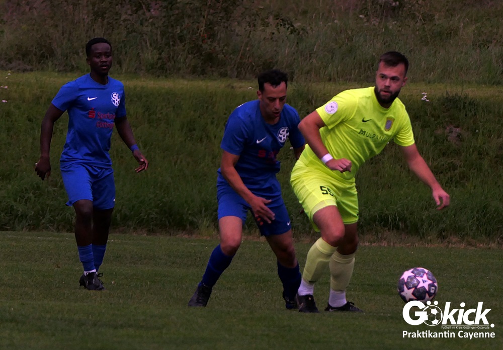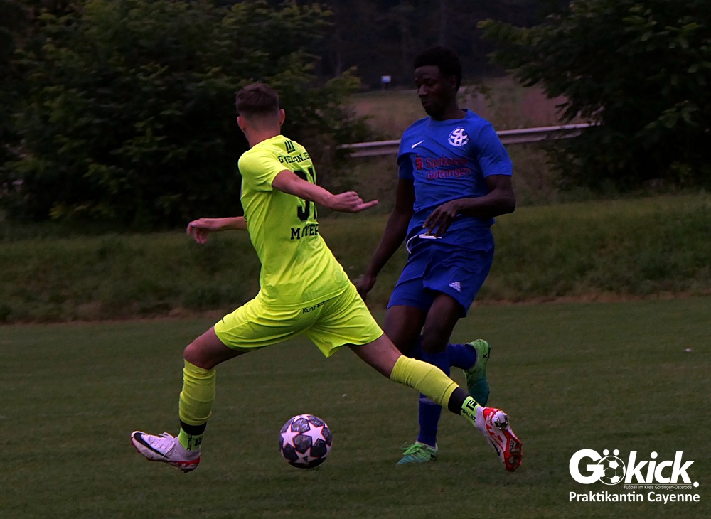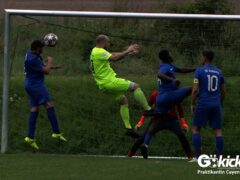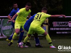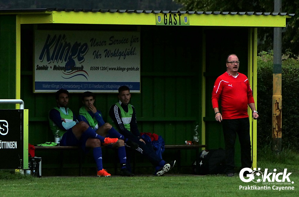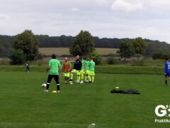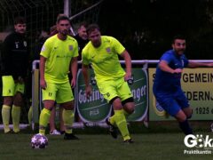 Im zweiten Durchgang begann dann der Regen, der die Zuschauer auf die Tribüne oder in das Festzelt, das aktuell als Umkleide-Kabine dient, trieb. Nach 58 Minuten gab der fleißige Schiedsrichter Yusuf Can für die Gastgeber einen vertretbaren Foulelfmeter. Jan Bubbe lief an, Justus Mühlhaus hielt den Schuss, den Bubbe im Nachschuss zum 1:0 verwandelte.