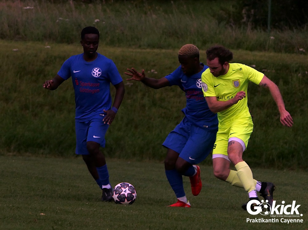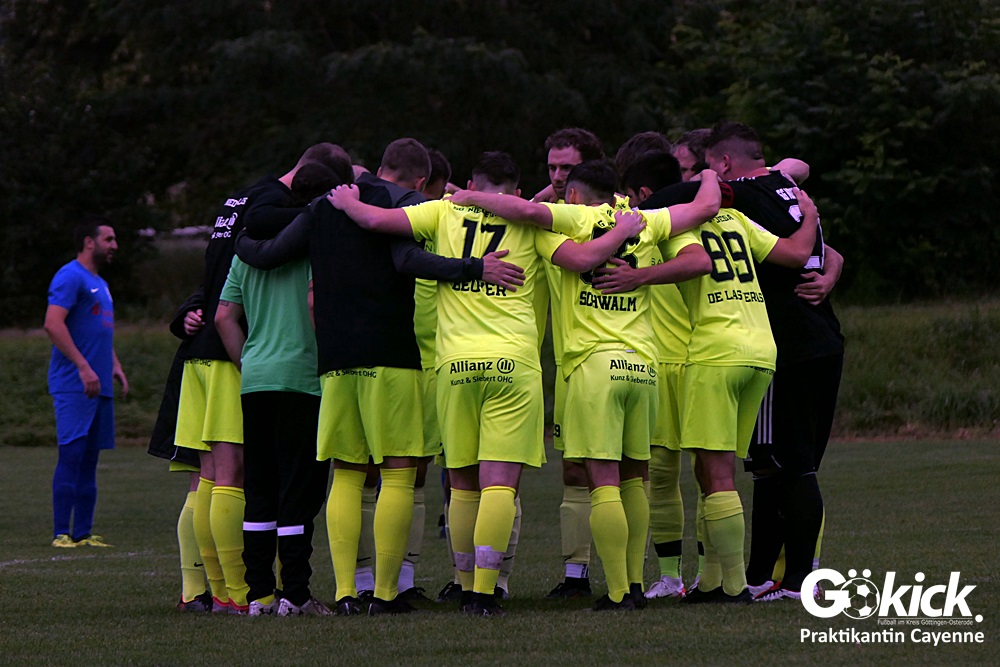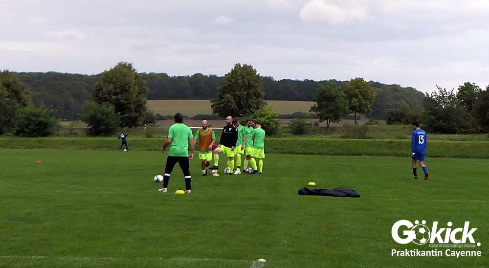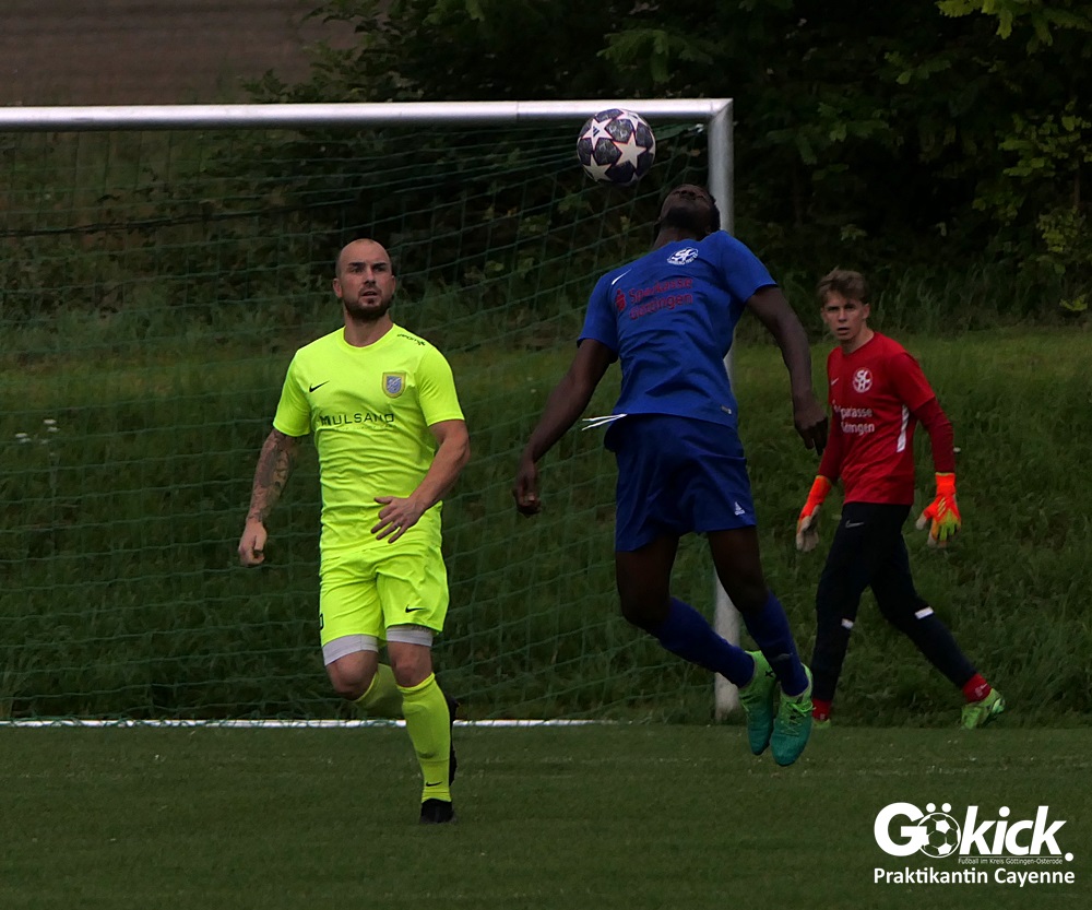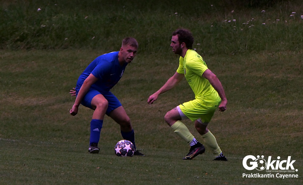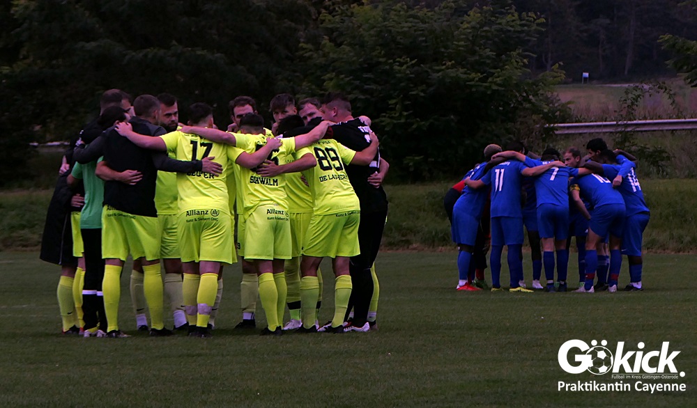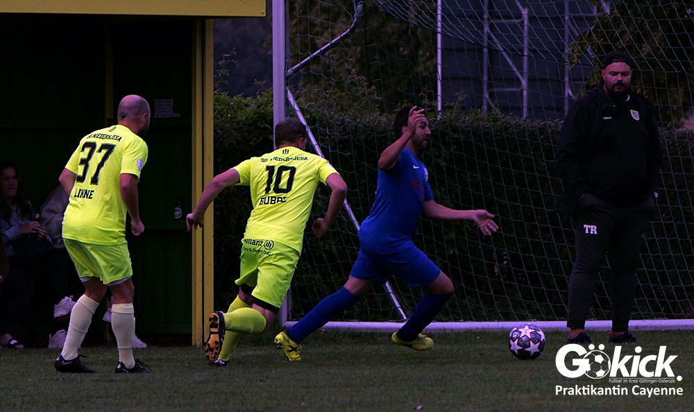 Dunkle Regenwolken zogen auf, als die beiden Mannschaften das Spiel begannen. Der Regen setzte aber erst in der zweiten Halbzeit ein. Die Gastgeber bestimmten das Spiel, hatten aber Mühe, sich durch die Reihen der sich tapfer wehrenden Hainberger zu kombinieren. Zudem vergaben die Offensiv-Kräfte die wenigen, sich bietenden Möglichkeiten teilweise kläglich. Und hinter der Gäste-Abwehr stand mit Justus Mühlhausen ein starker Schlussmann, der zwei Großchancen der Hausherren vereitelte. Die Zuschauer auf dem Sportplatz in Niedernjesa, so sie das Heimteam unterstützten, waren mit dem 0:0 beim Seitenwechsel unzufrieden.