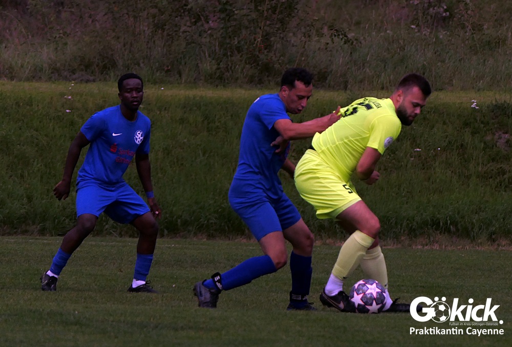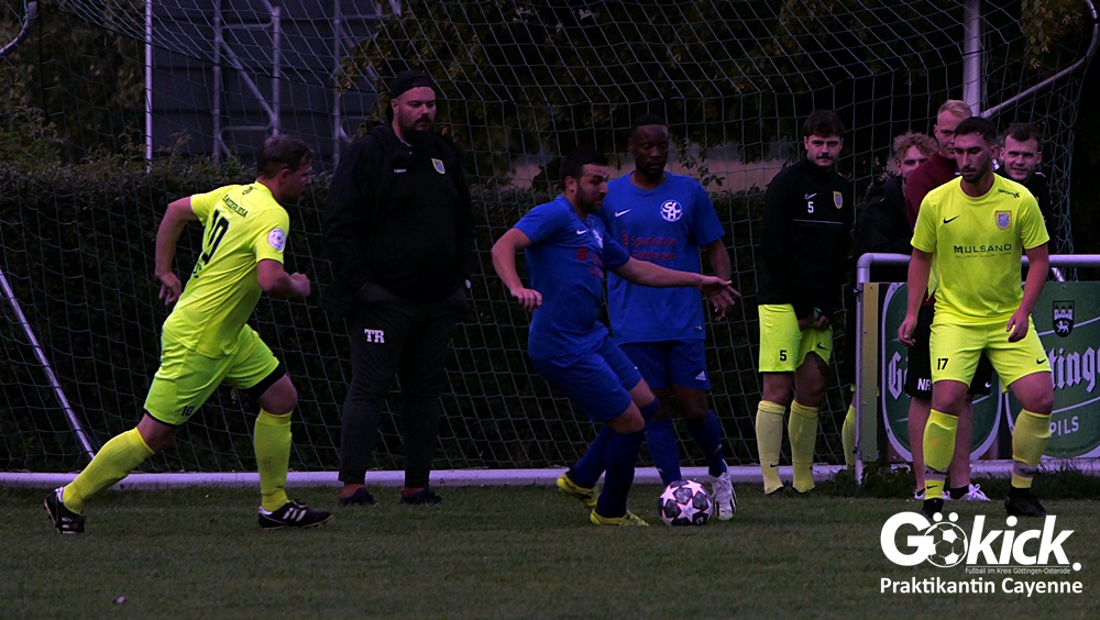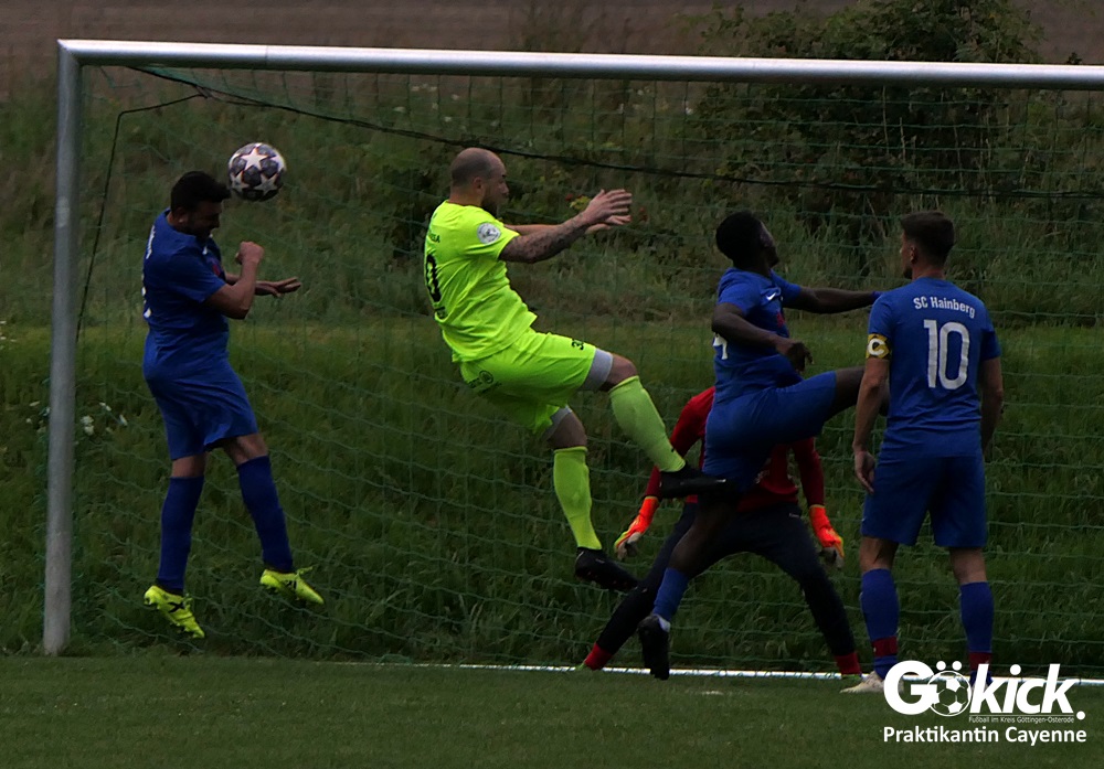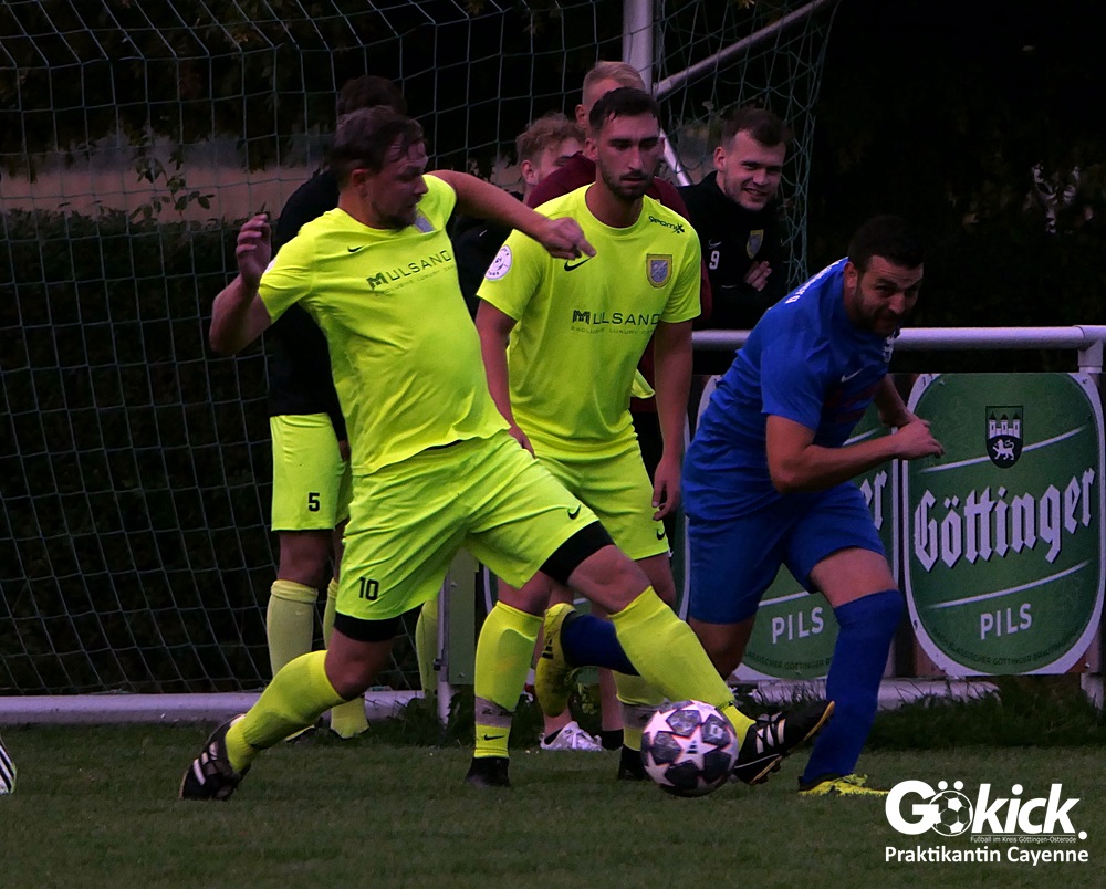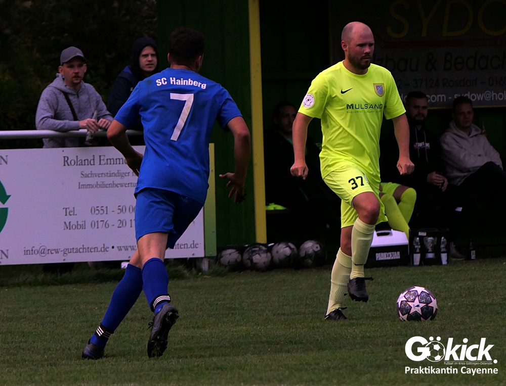 Dieser Treffer löste bei den Gastgebern die Verkrampfung. Nun kombinierten sie flüssiger und ließen auf den nassen Boden den Ball besser in den eigenen Reihen zirkulieren. Beim 2:0 in der 70. Spielminute kombinierte sich das Team auf die Grundlinie, der ehemalige SVG-Oberliga-Spieler Josú De las Héras Vicuña flankte und am kurzen Pfosten köpfte Maurice Taubert wie eins Ulf Kirsten zum 2:0 ein – ein starker Treffer! In der Nachspielzeit sicherte sich Schiedsrichter Yusuf Can seinen Sonderspielbericht, als er den Hainberger Kabir Diaby wegen Tretens mit einer Roten Karte des Feldes verwies. In der letzten Aktion der Partie verwandelte Josú De las Héras Vicuña einen Freistoß von halblinks als Aufsetzer zum 3:0-Endstand in die Hainberger Maschen.