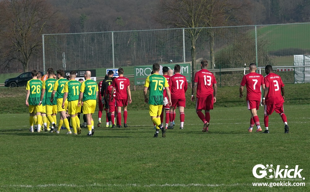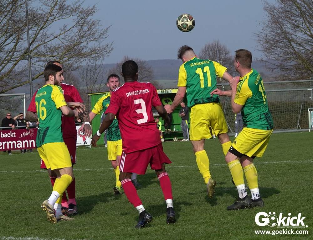 Die Ausgangslage vor dem Anpfiff versprach eigentlich eine andere Rollenverteilung. Sparta Göttingen war mit Trainer Esmir Muratovic als Tabellenvierter angereist, hatte allerdings zum Start in die Rückrunde bereits eine 2:3-Heimniederlage gegen Aufsteiger SG Lenglern hinnehmen müssen. Auch die SG Niedernjesa war mit einer deutlichen Niederlage in die zweite Saisonhälfte gestartet: Beim Tabellenzweiten SC Hainberg setzte es und Kurzzeit-Trainerrückkehrer Christian Dreher ein 0:5. Zudem hatte sich der Verein im Februar von Trainer Björn Nolte getrennt. Gegen Sparta betreute daher Torwarttrainer Sven Sauermann die Mannschaft an der Seitenlinie, bevor am Dienstag wie bereits angekündigt Alexander Hafner als Übergangstrainer bis zum Saisonende übernimmt. Das Hinspiel hatte Sparta im August noch mit 6:2 gewonnen.