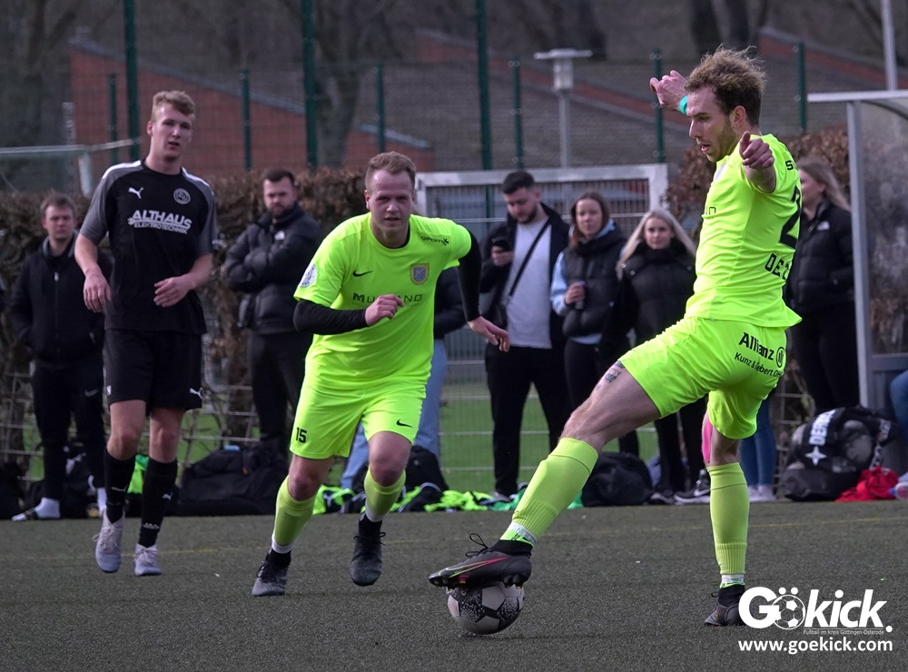 Mit einem Doppelpack in den Minuten 5 und 29 brachte Leon Schneemann den Gastgeber mit 2:0 in Führung. Marvin Oetzel erhöhte nach 36 Minuten auf 3:0. Der ehemalige Oberliga-Spielmacher der SVG Göttingen, Josú De las Héras Vicuña, stellte in der 40. Spielminute nach starker Vorarbeit von Niklas Pfitzner auf 4:0. Die Gäste zeigten nach 41 Minuten, dass auch sie in Lage sind, Treffer zu erzielen: Markus Strecker verkürzte auf 1:4 aus Sicht der Thüringer. Das 5:1 gelang Niklas Pfitzner in der 43. Spielminute. Damit ging es in die Halbzeitpause.