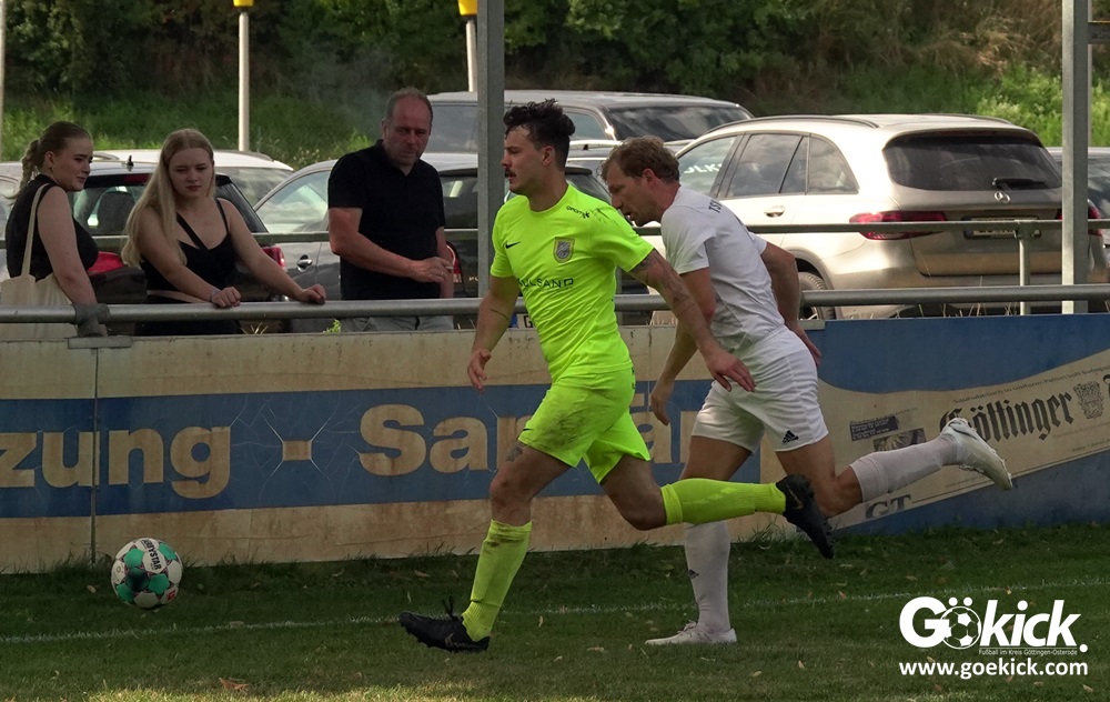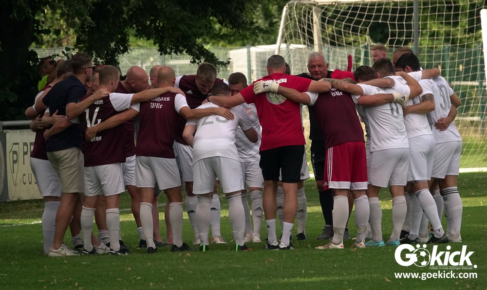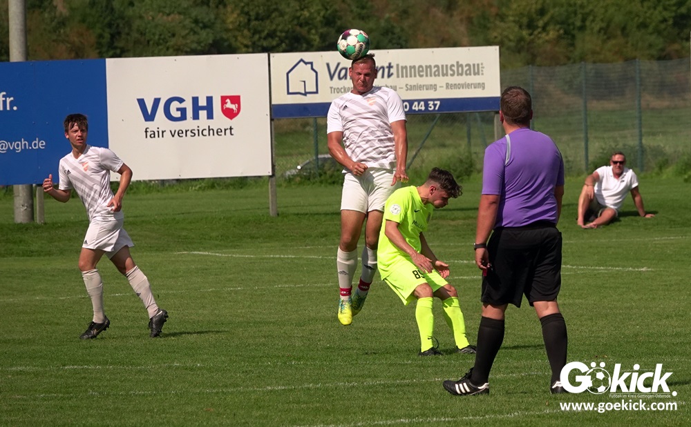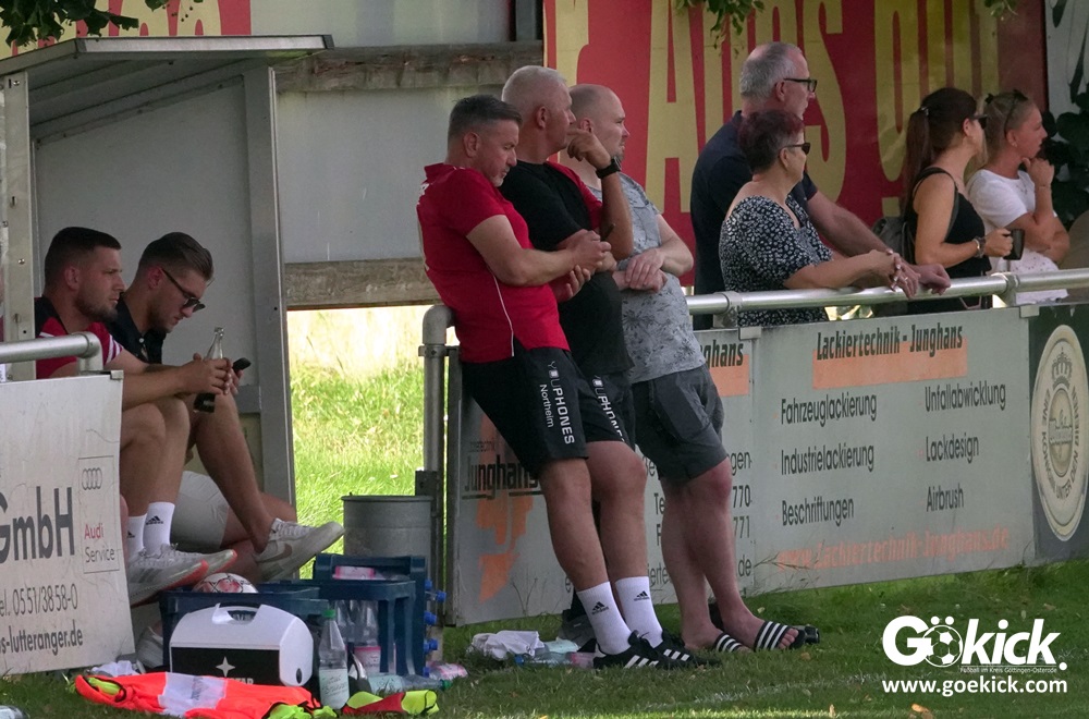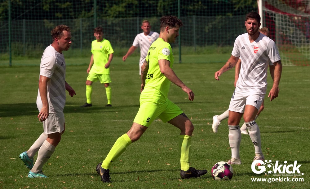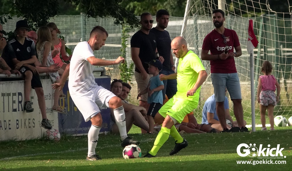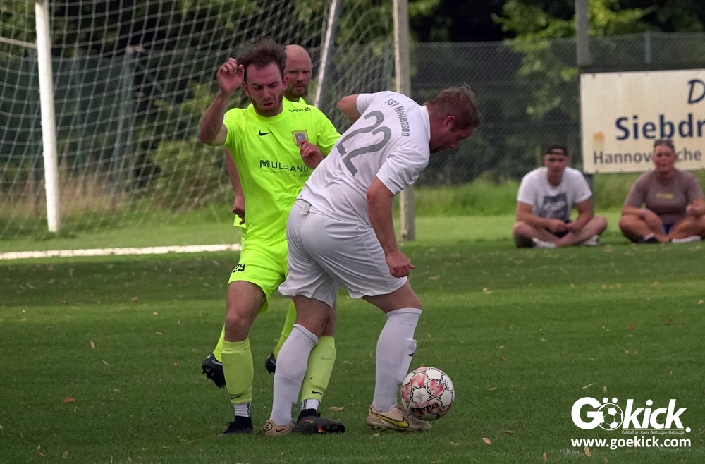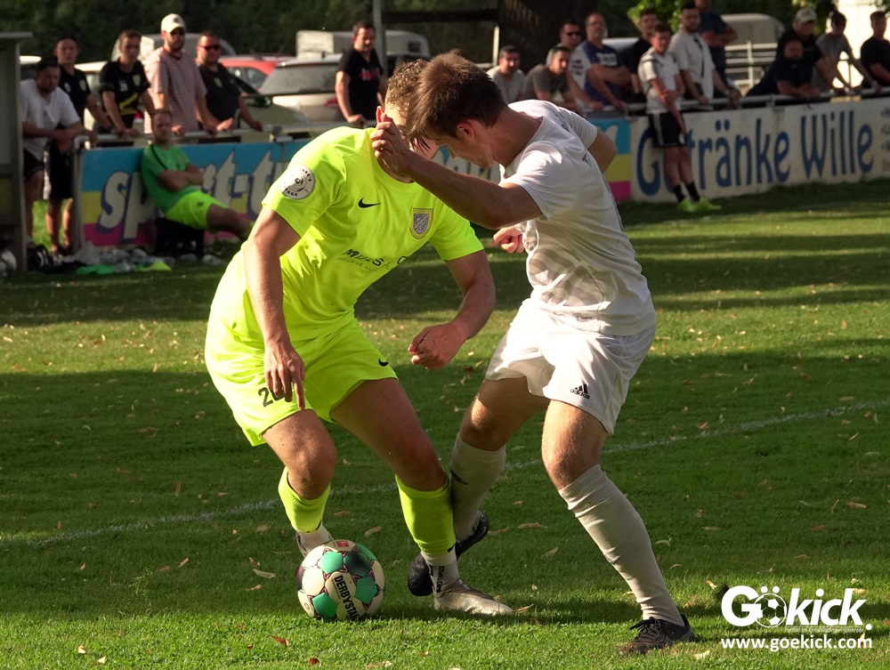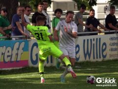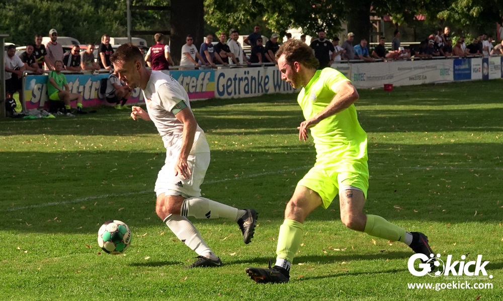 Im ersten Abschnitt waren beide Teams auf Sicherheit eingestellt. Die Zuschauer, die trotz Sommerhitze und wegen eines Reitturniers fehlender Parkplätze den Weg zum Holtenser Sportplatz gefunden hatten, durften nur wenige Strafraumszenen bewundern. Zwei Chancen durch Marcel Heimbüchel besaßen die Gastgeber von Trainer Enrico Weiß, beide vereitelte ein aufmerksamer Dominick Theune im Tor der Gäste. Er fing einst auch für den TSV die Bälle aus der Luft. Die Gäste brachten im ersten Abschnitt nur einmal den Kasten des TSV in Gefahr. Ansonsten sahen die Zuschauer viele verbissen geführte Zweikämpfe und dichtgestaffelte Abwehrreihen. Torlos ging es in die Halbzeitpause. „Wir haben im ersten Abschnitt abwartend reagiert, wussten, dass sie viel mit langen Bällen agieren. Da wollten wir sicher stehen.“, fasst Christian Dreher die erste Halbzeit aus seiner Sicht zusammen.