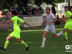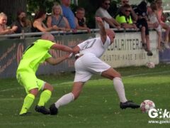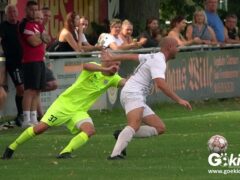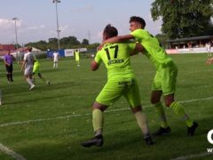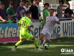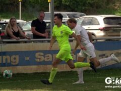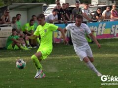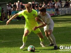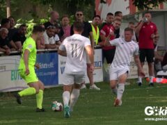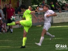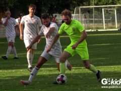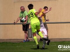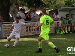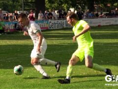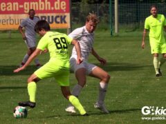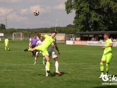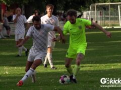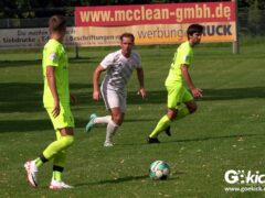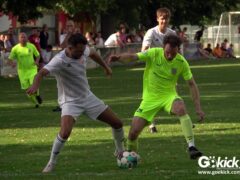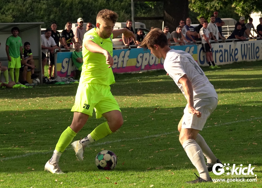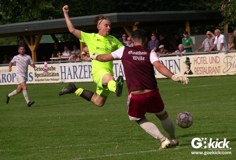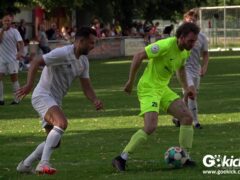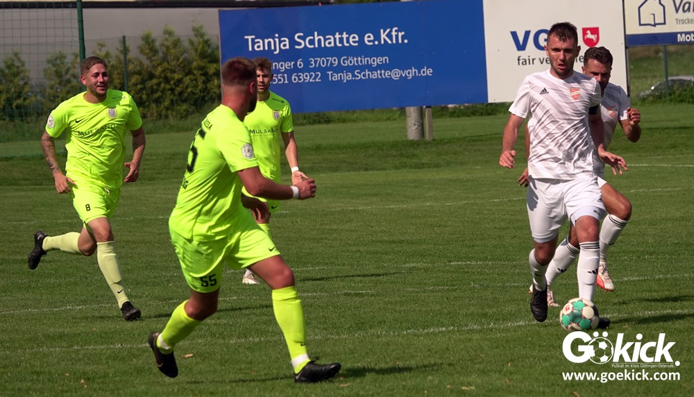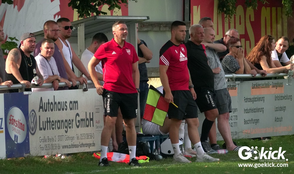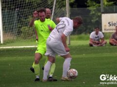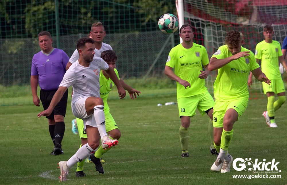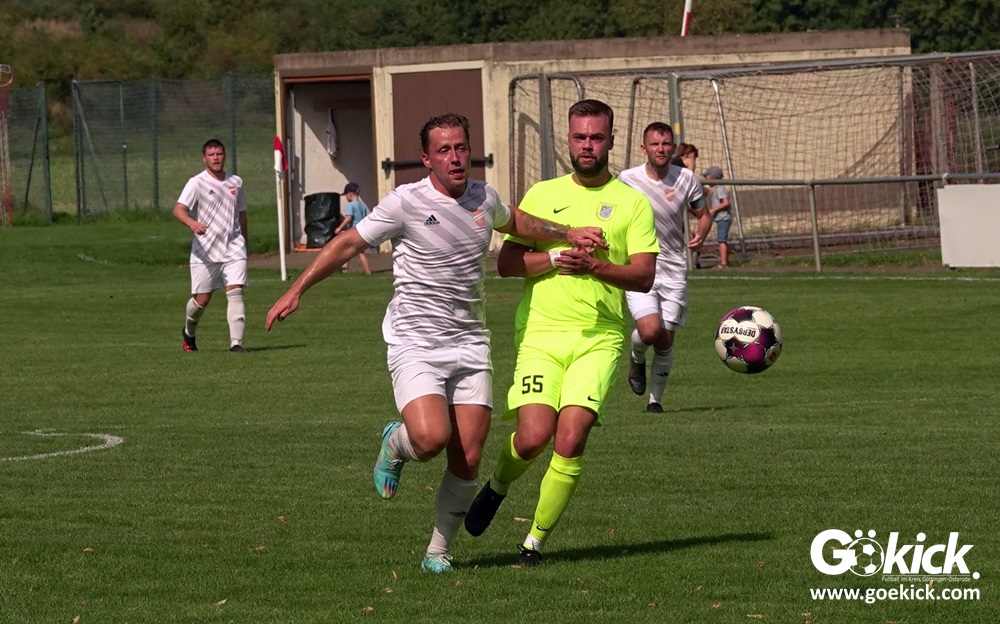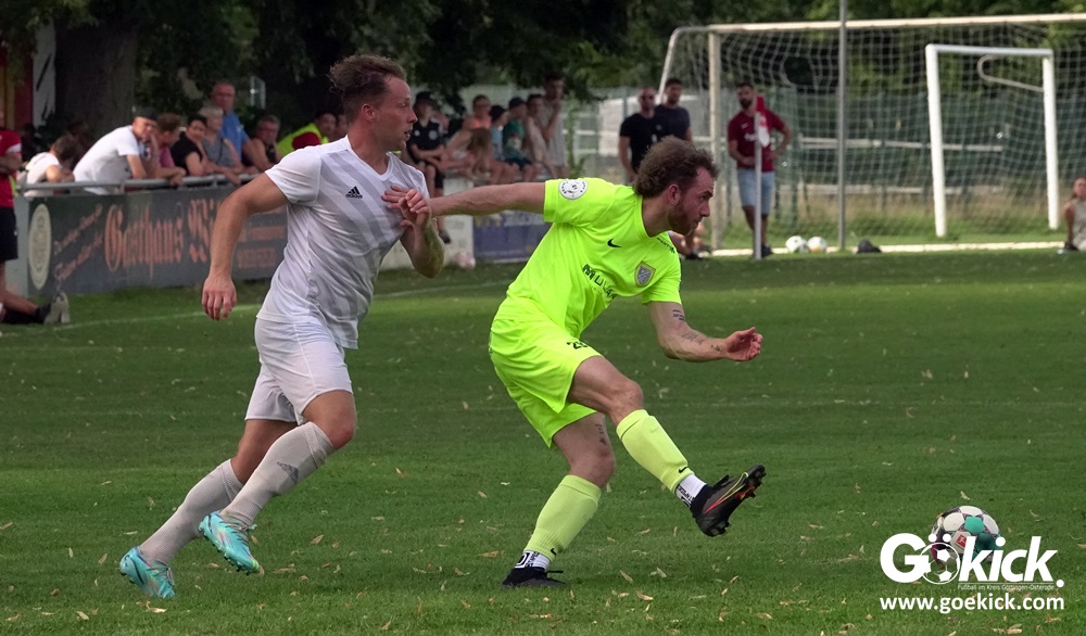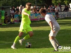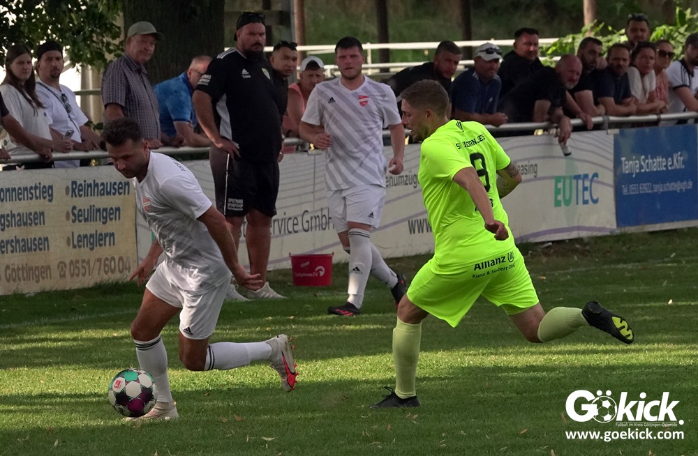 Im ersten Abschnitt waren beide Teams auf Sicherheit eingestellt. Die Zuschauer, die trotz Sommerhitze und wegen eines Reitturniers fehlender Parkplätze den Weg zum Holtenser Sportplatz gefunden hatten, durften nur wenige Strafraumszenen bewundern. Zwei Chancen durch Marcel Heimbüchel besaßen die Gastgeber von Trainer Enrico Weiß, beide vereitelte ein aufmerksamer Dominick Theune im Tor der Gäste. Er fing einst auch für den TSV die Bälle aus der Luft. Die Gäste brachten im ersten Abschnitt nur einmal den Kasten des TSV in Gefahr. Ansonsten sahen die Zuschauer viele verbissen geführte Zweikämpfe und dichtgestaffelte Abwehrreihen. Torlos ging es in die Halbzeitpause. „Wir haben im ersten Abschnitt abwartend reagiert, wussten, dass sie viel mit langen Bällen agieren. Da wollten wir sicher stehen.“, fasst Christian Dreher die erste Halbzeit aus seiner Sicht zusammen.