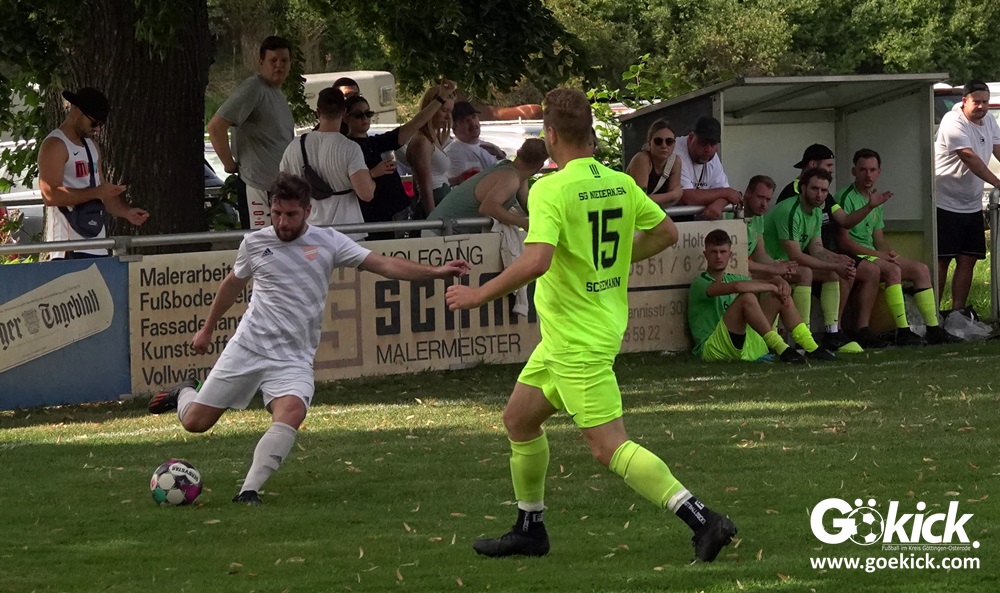 Doch SGN-Neuzugang Daniel Schwalm erzielte erneut nur drei Minuten später den 2:2-Ausgleich für seine Farben. Der eingewechselte, ehemalige Hainberger Landesliga-Spieler Marvin Oetzel hatte mustergültig vorbereitet. Die Schlussphase hatte es dann noch einmal in sich: Maximilian Walter staubte in der 86. Spielminute am langen Pfosten zur 3:2-Führung für die Gäste ab. Doch das war noch nicht der Sieg, denn der in der 85. Minute eingewechselte Tobias Lüther glich in der Schlussminute der regulären Spielzeit nach einer Energieleistung zum 3:3 aus. Dann schlug die 93. Spielminute und erneut traf Niclas Becker zum 4:3 in die Holtenser Maschen und besiegelte damit den Sieg der SG Niedernjesa in diesem Aufeinandertreffen der großen Favoriten der 1. Kreisklasse Süd. Nach sieben Minuten Nachspielzeit war dann die Partie endgültig beendet. „Der Sieg ist unter dem Strich verdient, ich glaube, dass wir die besseren Spielanteile hatten und auch den besseren Fußball gespielt haben. Am Ende war es dann noch sehr knapp, weil Holtensen eine wirklich starke Truppe hat. Holtensen war der Favorit, aber heute haben wir gezeigt, wie es gehen kann. Natürlich hatten wir auch Glück, weil der Siegtreffer in der Nachspielzeit noch gefallen ist. In der Vorsaison haben wir meist späte Gegentore bekommen.“