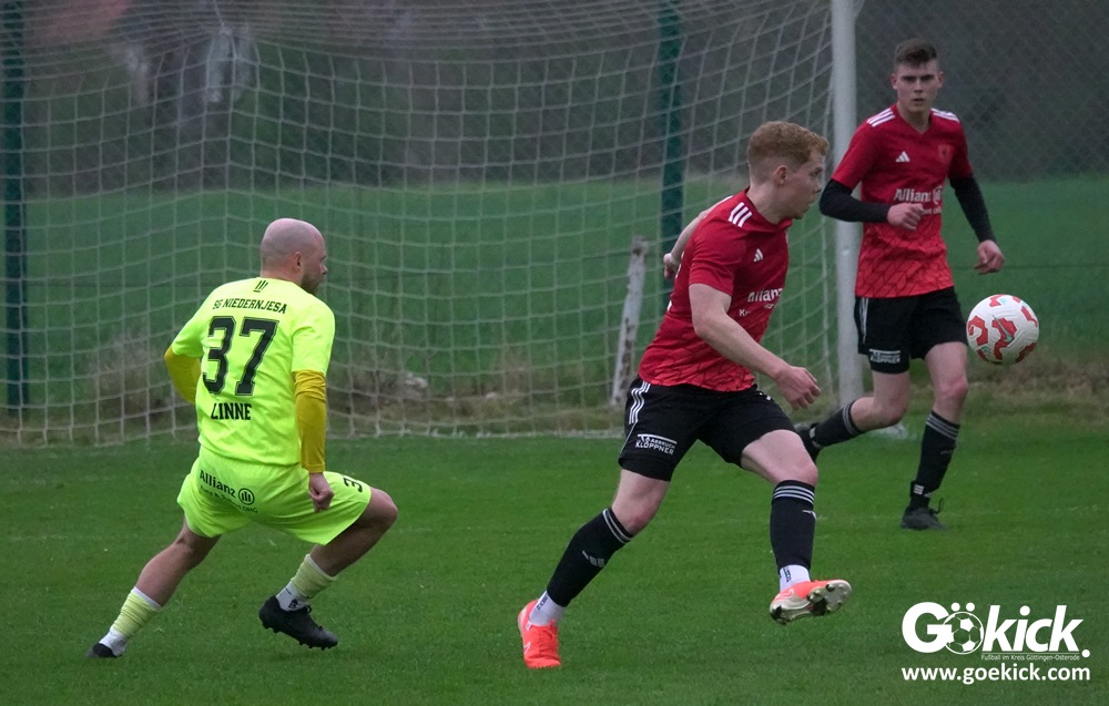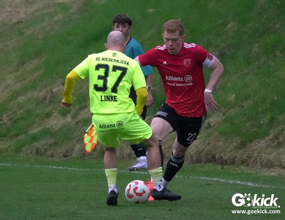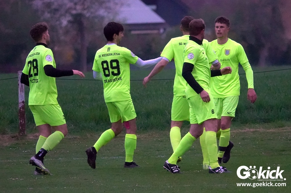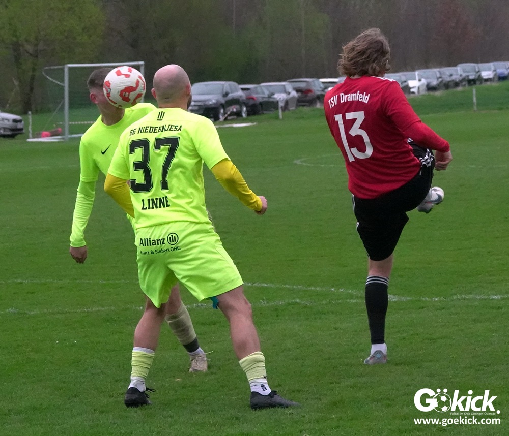 Der nächste Schritt in Richtung Bezirksliga. Am Donnerstag-Abend begrüßte der TSV Dramfeld im Kreisliga-Nachholspiel den Nachbarn SG Niedernjesa zum Derby. Und geschätzte 220 Zuschauer wollten dieses Spiel verfolgen. Wie schon im Hinspiel im August zum Kreisliga-Start, siegte auch diesmal der Aufsteiger und Tabellenführer aus Niedernjesa. Nach dem 2:0 von damals feierte das Team vom Trainerduo Christian Dreher und Martin Schiller diesmal einen 4:0 (1:0)-Sieg. Damit verteidigt die SGN im Jahr des einhundertsten Geburtstages die Tabellenführung vor der zeitgleich beim FC Höherberg mit 2:0-siegreichen SG Lenglern. Die beiden führenden Teams haben somit schon eine kleine Lücke zwischen sich und der Konkurrenz geschaffen. Der Gastgeber bleibt Elfter der Tabelle.