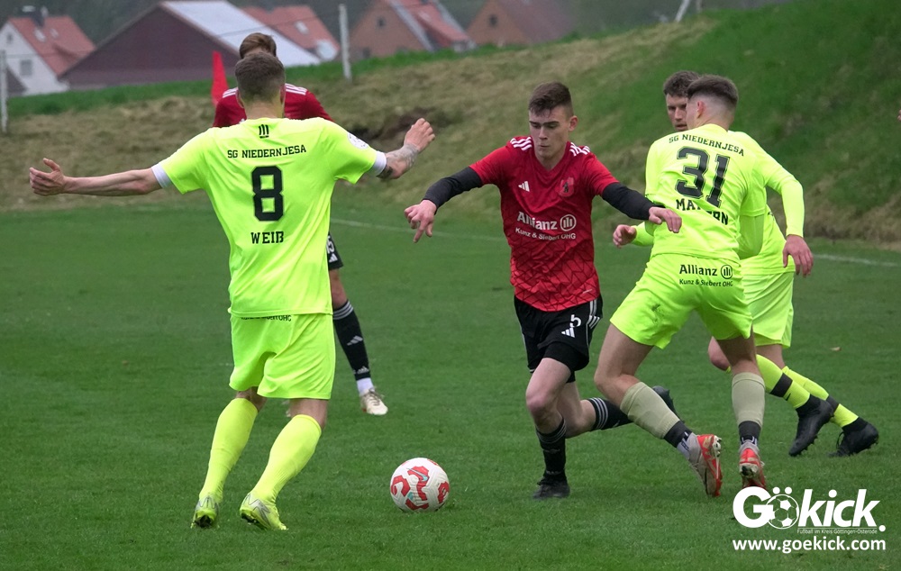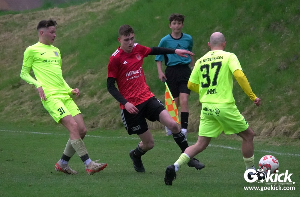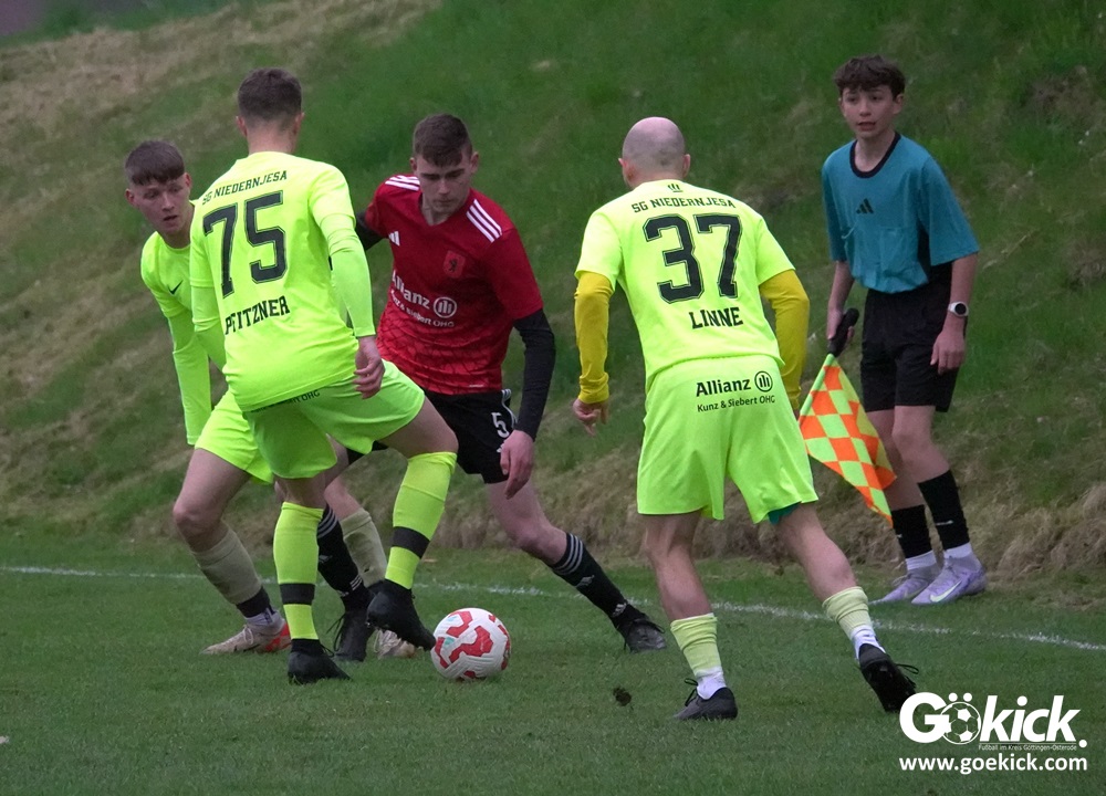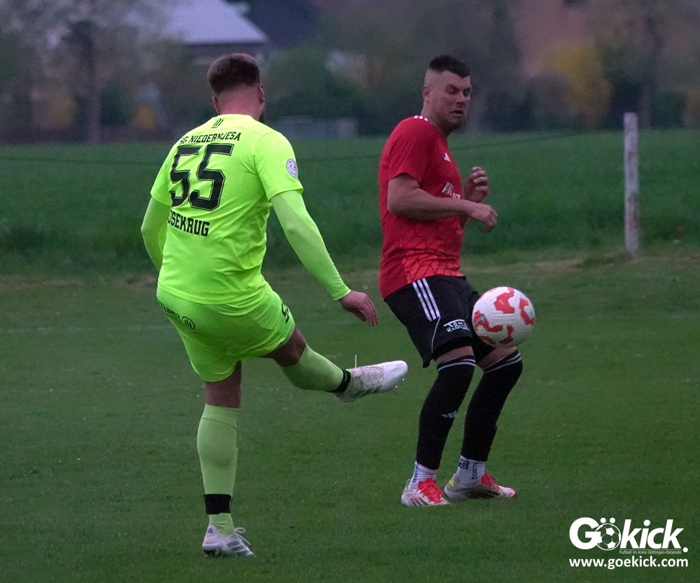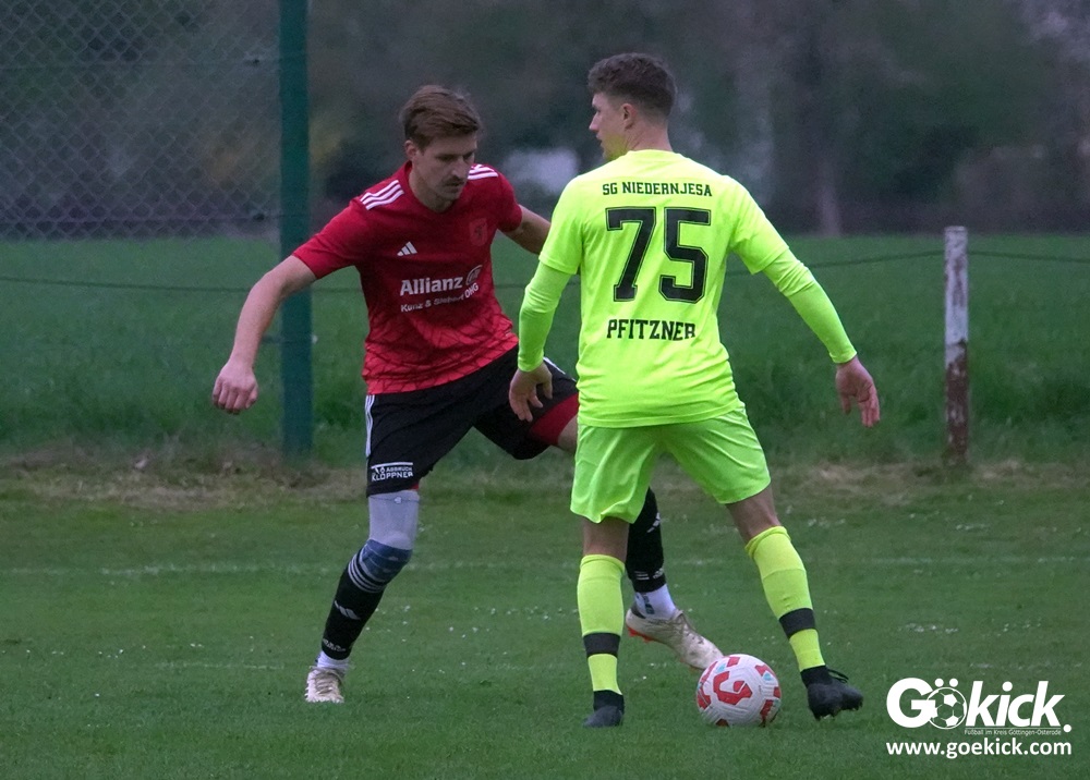 Der nächste Schritt in Richtung Bezirksliga. Am Donnerstag-Abend begrüßte der TSV Dramfeld im Kreisliga-Nachholspiel den Nachbarn SG Niedernjesa zum Derby. Und geschätzte 220 Zuschauer wollten dieses Spiel verfolgen. Wie schon im Hinspiel im August zum Kreisliga-Start, siegte auch diesmal der Aufsteiger und Tabellenführer aus Niedernjesa. Nach dem 2:0 von damals feierte das Team vom Trainerduo Christian Dreher und Martin Schiller diesmal einen 4:0 (1:0)-Sieg. Damit verteidigt die SGN im Jahr des einhundertsten Geburtstages die Tabellenführung vor der zeitgleich beim FC Höherberg mit 2:0-siegreichen SG Lenglern. Die beiden führenden Teams haben somit schon eine kleine Lücke zwischen sich und der Konkurrenz geschaffen. Der Gastgeber bleibt Elfter der Tabelle.