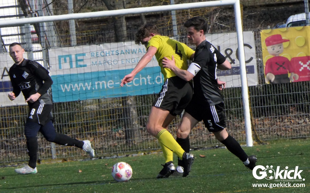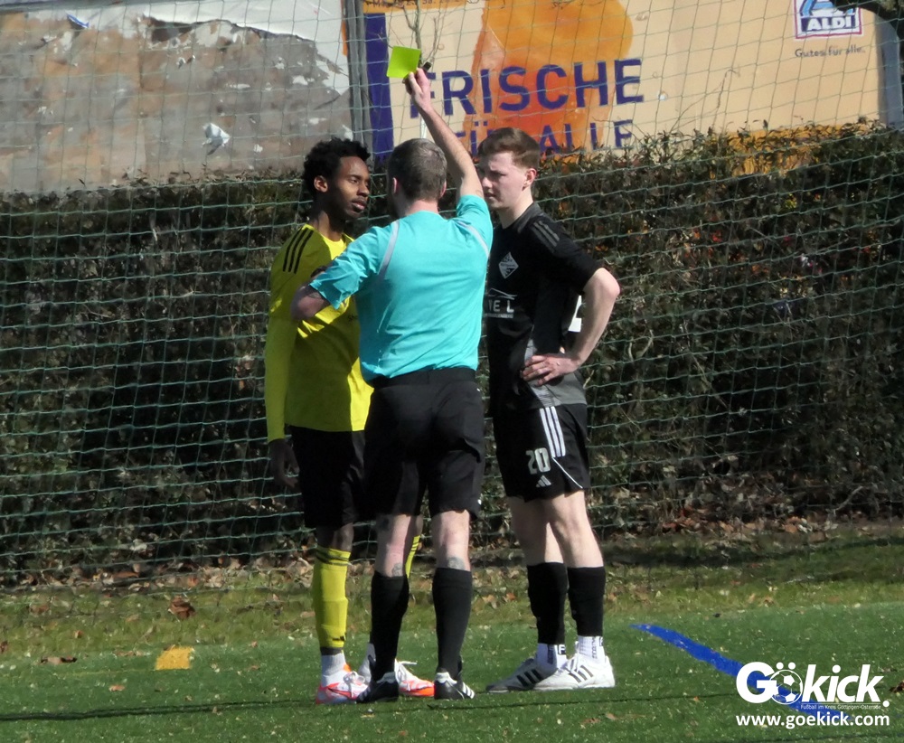 Kurz vor der Pause gelang den Gästen die Führung. In der 39. Minute traf Nils Hillemann zum 0:1. Wenig später schickte Schiedsrichter Philip Nordmann beide Mannschaften mit diesem Zwischenstand in die Kabinen.