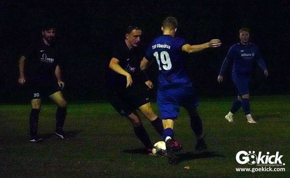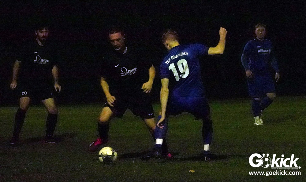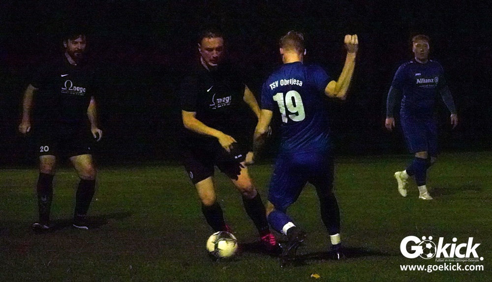 Mit jeweils nur einem mageren Pünktchen aus den bisherigen fünf Partien zierten die Teams des TSV Obernjesa und der dritten Mannschaft der SVG Göttingen gemeinsam das Tabellenende der 2. Kreisklasse Süd. Am Freitag-Abend standen sie sich im direkten Duell unter dem Flutlicht der Sportanlage an der Dramme in Obernjesa gegenüber. Am Ende der Partie siegte der gastgebende TSV verdient und überglücklich mit 5:2 (2:2). Der Sieger klettert in der Tabelle auf Platz sieben. Die SVG Göttingen III bleibt Schlusslicht.