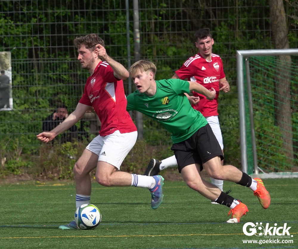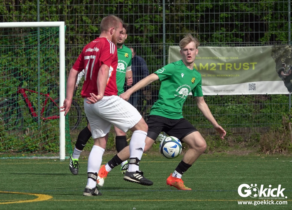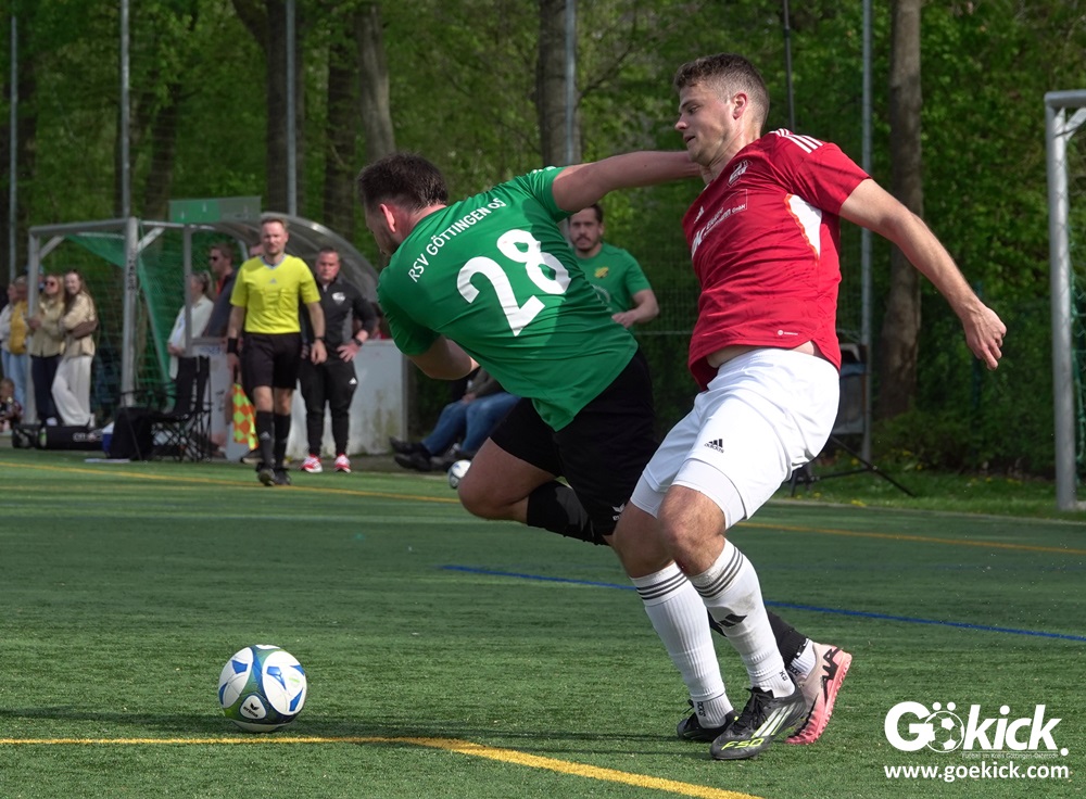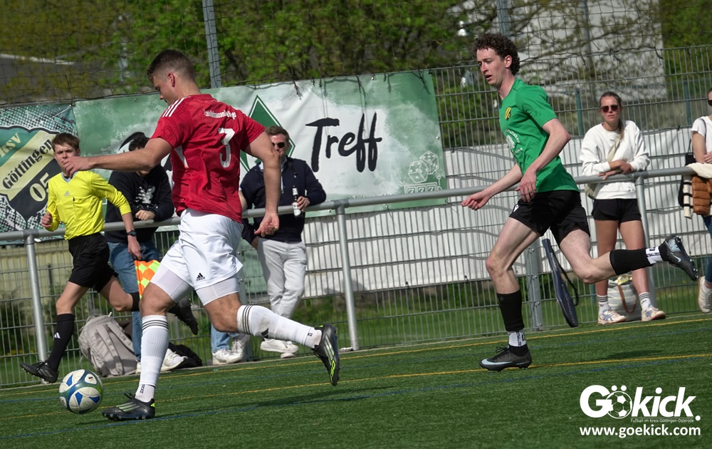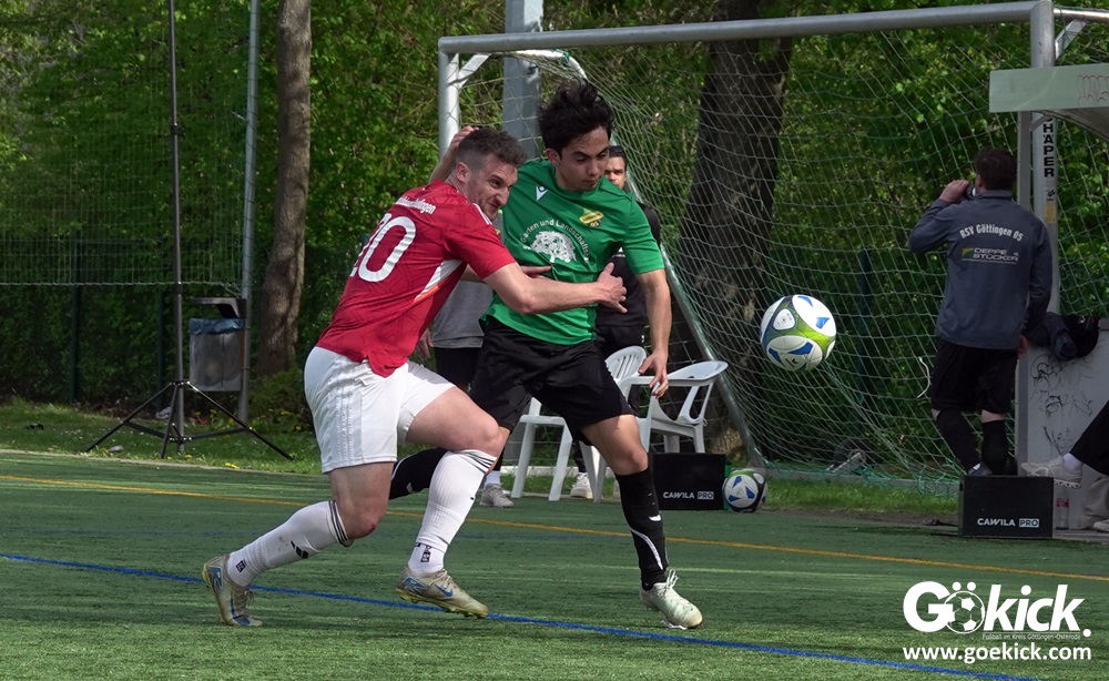 Die Freude währte jedoch nur kurz. Direkt nach dem Wiederanstoß gelang Damian Esteban Pachón Campos in der 25. Minute der erneute Ausgleich. Auf dem Kunstrasenplatz in Göttingen-Geismar entwickelte sich ein offener Schlagabtausch, bei dem beide Mannschaften zielstrebig den Weg nach vorn suchten. Mit dem 2:2 ging es in die Pause.