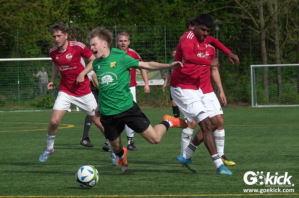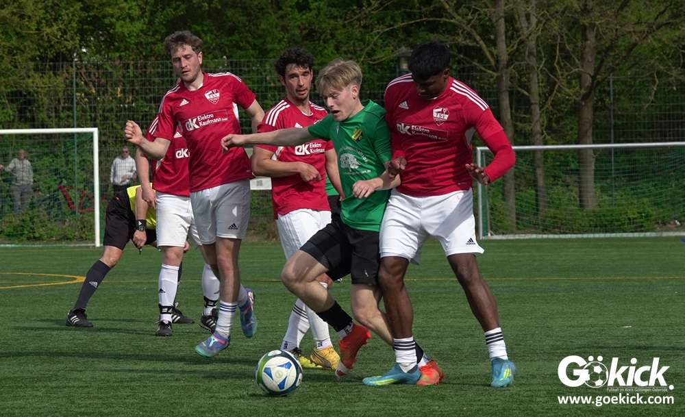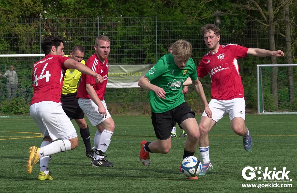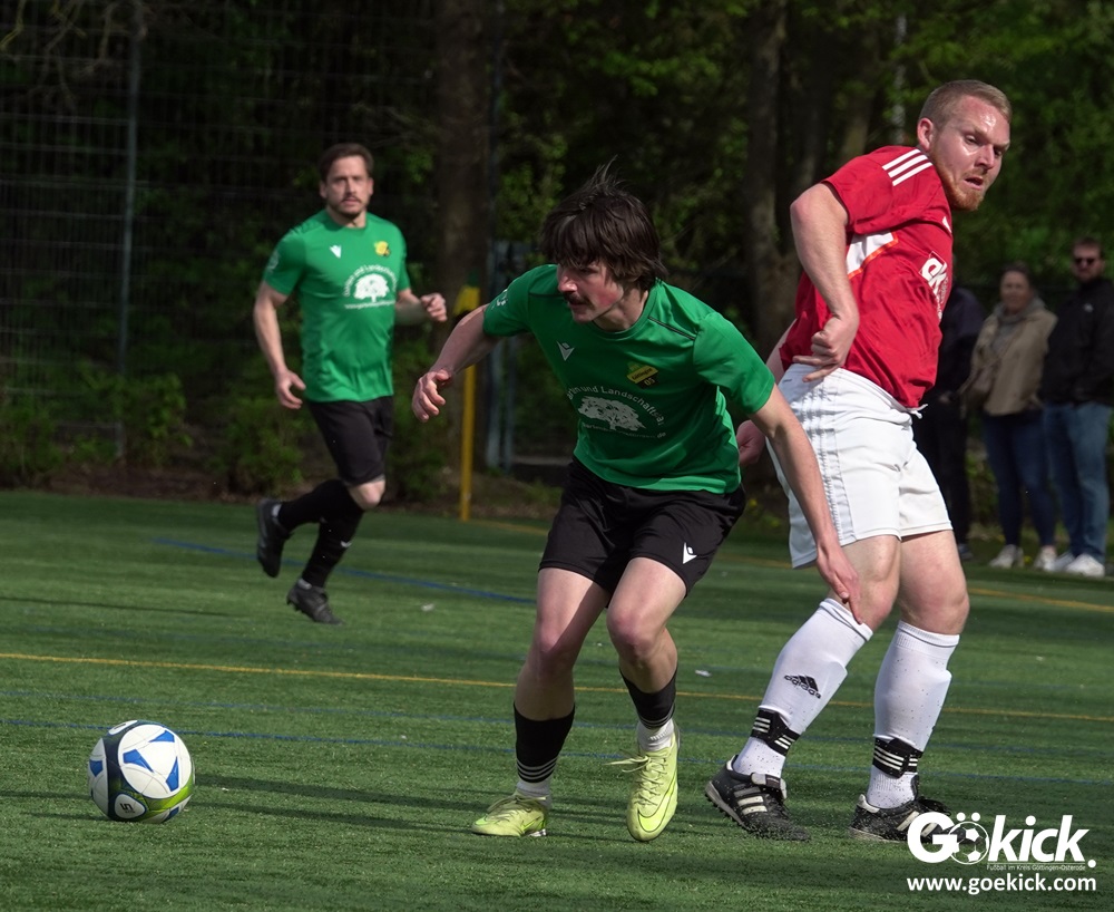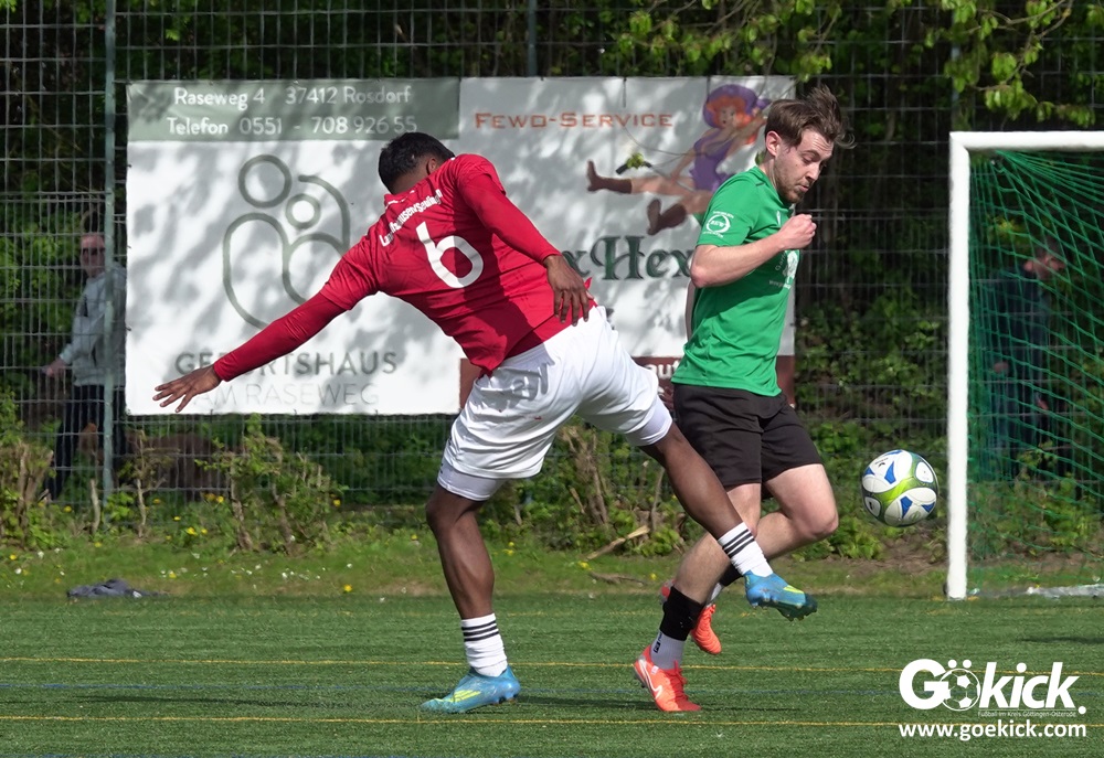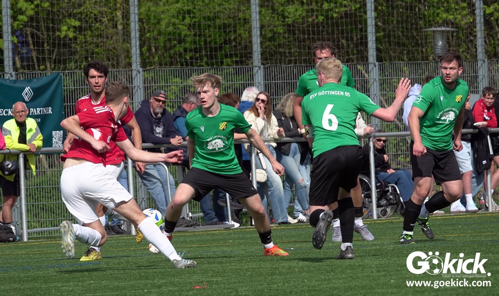 Die Freude währte jedoch nur kurz. Direkt nach dem Wiederanstoß gelang Damian Esteban Pachón Campos in der 25. Minute der erneute Ausgleich. Auf dem Kunstrasenplatz in Göttingen-Geismar entwickelte sich ein offener Schlagabtausch, bei dem beide Mannschaften zielstrebig den Weg nach vorn suchten. Mit dem 2:2 ging es in die Pause.