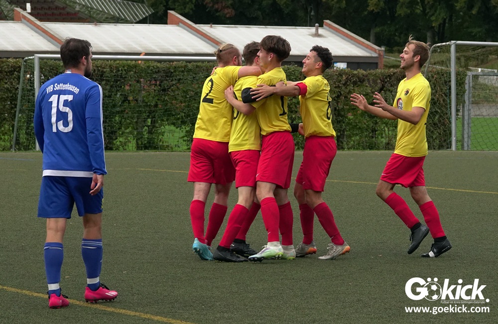 Auch im zweiten Spielabschnitt blieb es lange Zeit bei der knappen Führung für das Schlusslicht der 1. Kreisklasse Süd. Doch dann sorgte der stark auftrumpfende Johann Sprick-Schütte mit einem Doppelpack in den Minuten 64 und 68 für das beruhigende 3:0. Der Sattenhäuser Tobias Diederich brachte die Gäste in der 77. Minuten mit seinem Treffer auf 1:3 heran. Mit einem verschossenen Foulelfmeter versäumte es der sonst so treffsichere Luca Echterling in der 84. Minute, die Entscheidung herbeizuführen – er traf nur den Pfosten (Video). Doch sein Kamerad Mika Belter schaffte diese Entscheidung in der Schlussminute mit dem 4:1, der auch den Endstand bedeuten sollte.