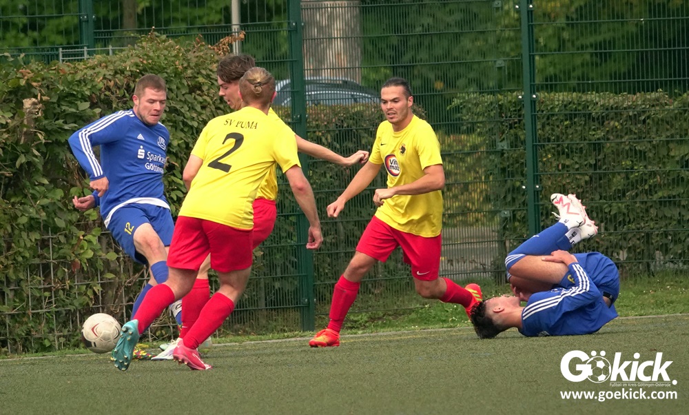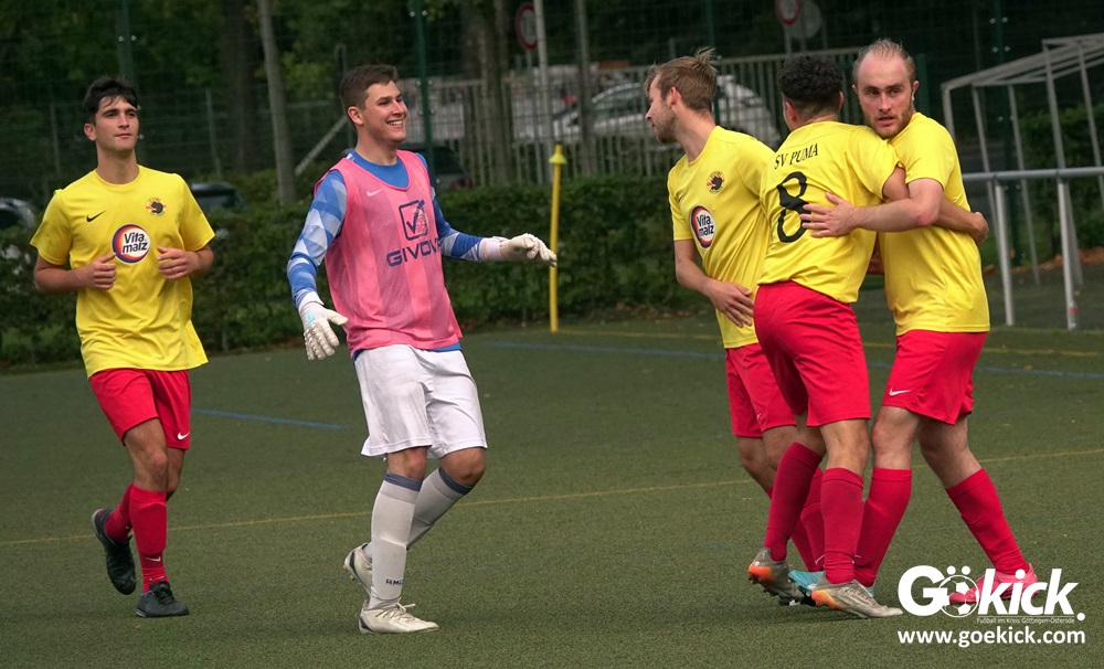 Nach zuvor sieben vergeblichen Versuchen mit nur einem Remis und sechs Niederlagen hat es der SV Puma Göttingen geschafft, seinen ersten Saisonsieg einzufahren. Das Team von Trainer Walter Saueressig besiegte am vergangenen Sonntag-Morgen auf dem Kunstrasenplatz des Göttinger Jahnsportparks den VfB Sattenhausen mit 4:1 (1:0). Der Lohn: Puma reicht die Rote Laterne der 1. Kreisklasse Süd an die zweite Mannschaft des SC Hainberg weiter und klettert auf Platz zehn der Tabelle. Der Gast aus der Gemeinde Gleichen bleibt mit fünf Punkten aus acht Spielen Neunter.