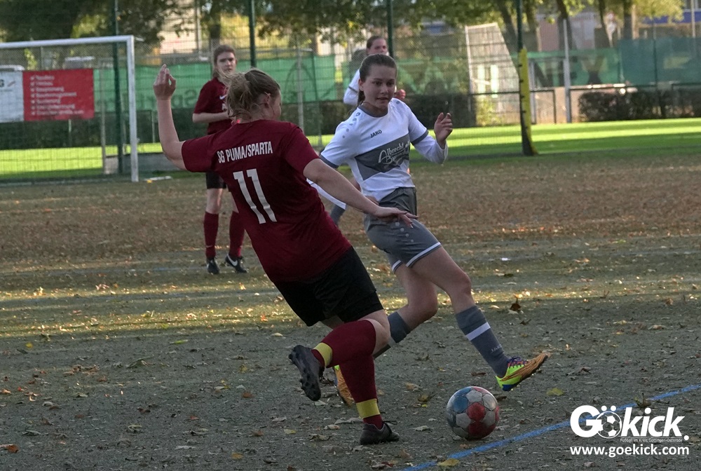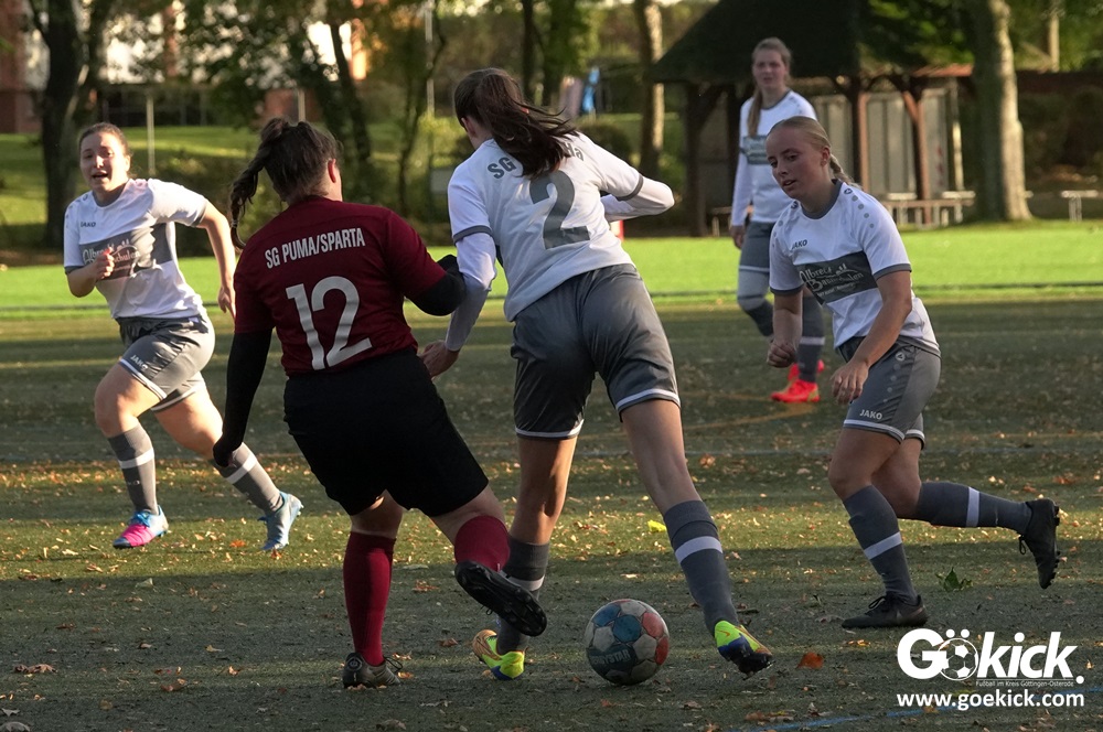 In der Frauen-Kreisliga standen sich am vergangenen Samstag auf dem Kunstrasenplatz der BSA Greitweg die Spielgemeinschaften (SG) Puma/Sparta und Wulften/Lindau/Hattorf (SG WuLiHa) gegenüber. Nach 90 Minuten ging der Gastgeber mit einem 1:0 (1:0)-Sieg vom Platz. Er klettert mit nunmehr acht Punkten auf Platz acht und überholt den Konkurrenten. Dieser rangiert mit sechs Punkten auf Platz elf.