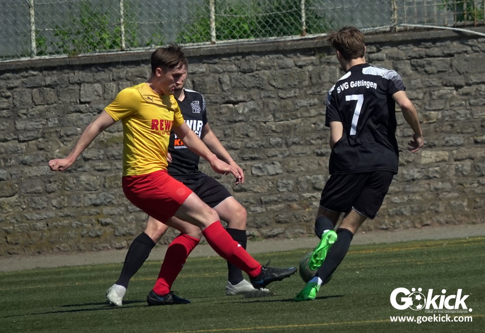 Am Sonntag-Morgen empfing die zweite Mannschaft der SVG Göttingen auf dem Kunstrasenplatz des heimischen KRÜGERPARKs am Sandweg den Nachbarn SV Puma Göttingen zum „Leine-Derby“ in der 1 Kreisklasse Süd. Nach einem abwechslungsreichen Spiel trennten sich die Kontrahenten 2:2 (0:2)-unentschieden. Die SVG-Reserve rangiert mit 22 Punkten auf Platz sechs, der Gast aus dem Jahnsportpark bleibt mit 15 Punkten Achter des Klassements der Liga.