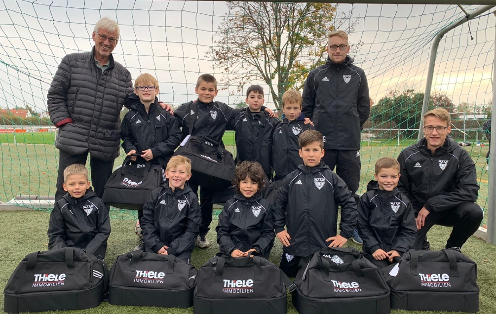 Die F1-Junioren des SCW Göttingen freuen sich über die erneute Unterstützung des Fliesenleger-Betriebes „casa de piedra“, dieses Mal durch eine Erweiterung des bestehenden Trikotsatzes und durch einheitliche Regenjacken für alle Spieler. Außerdem nahmen die Kinder freudestrahlend neue, mit ihren Initialen personalisierte Sporttaschen von Thiele Immobilien entgegen. Hiermit bedankt sich die F1 samt Trainerteam sehr herzlich bei den beiden Sponsoren Camil Grubinski und Günter Thiele für ihre großzügige Unterstützung.