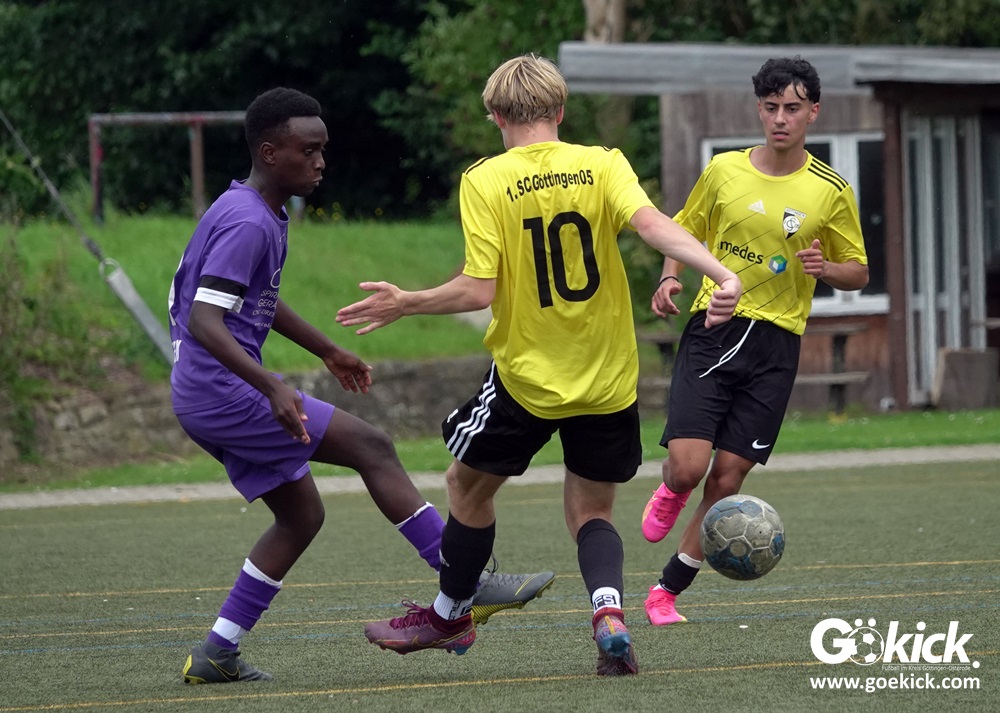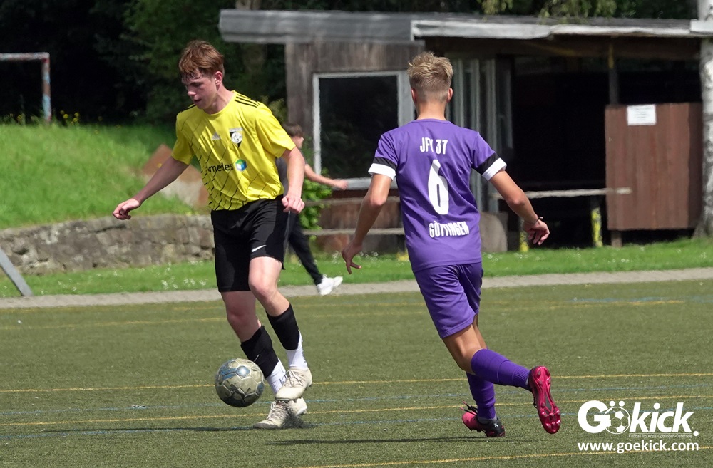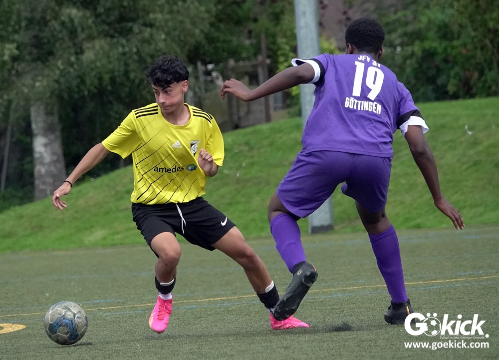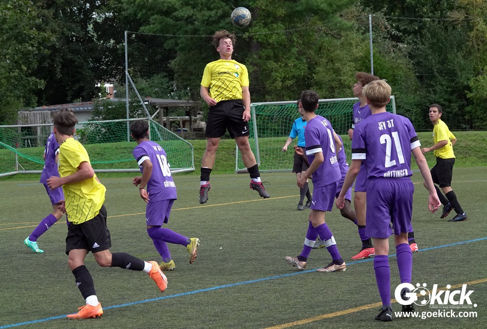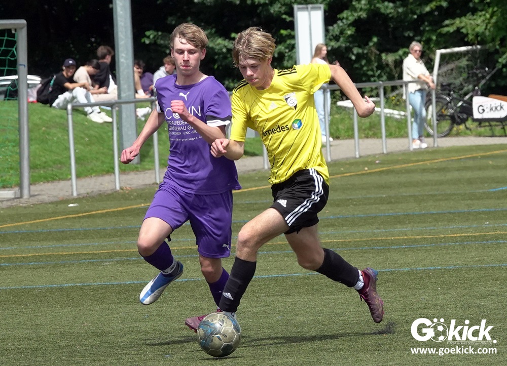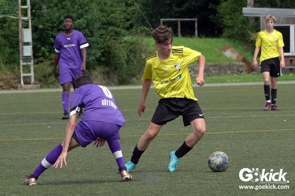 Eigentlich wollte der B-Jugend-Landesligist JFV 37 Göttingen am vergangenen Samstag gegen den Thüringer Verbandsligisten 1. SC 1911 Heiligenstadt testen. Doch dieser hatte kurzfristig abgesagt. Nach einer Such-Anzeige auf Gökick war ein neuer Gegner schnell gefunden: Das Regionalliga-Team des 1. SC Göttingen 05 nutzte die Gelegenheit für einen weiteren Test vor dem Punktspielstart am kommenden Samstag beim SV Meppen. Der schwarz-gelbe Gast siegte dann auch standesgemäß mit 4:0 (2:0). Obwohl der Gast verdient gewann, war ein Zwei-Klassen-Unterschied auf dem Kunstrasen nur phasenweise zu sehen.