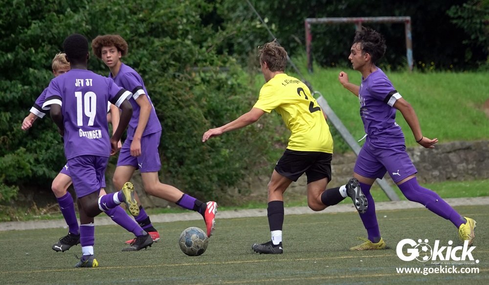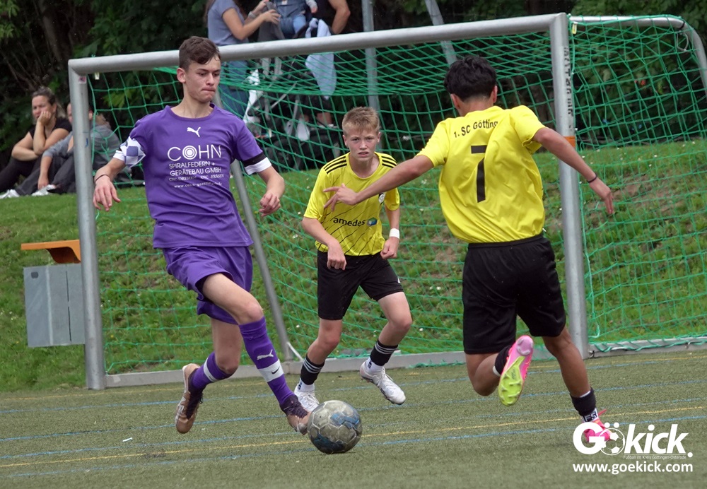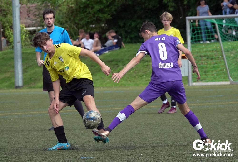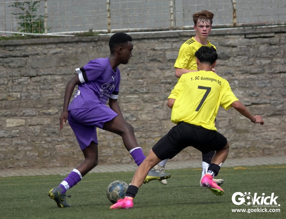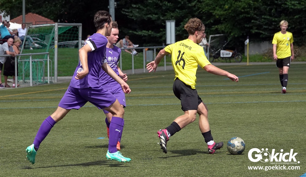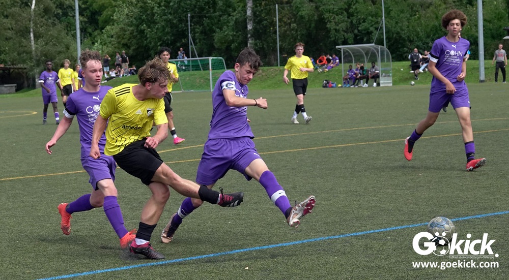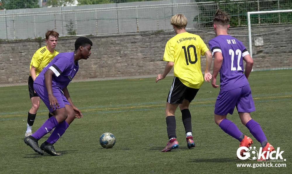 Eigentlich wollte der B-Jugend-Landesligist JFV 37 Göttingen am vergangenen Samstag gegen den Thüringer Verbandsligisten 1. SC 1911 Heiligenstadt testen. Doch dieser hatte kurzfristig abgesagt. Nach einer Such-Anzeige auf Gökick war ein neuer Gegner schnell gefunden: Das Regionalliga-Team des 1. SC Göttingen 05 nutzte die Gelegenheit für einen weiteren Test vor dem Punktspielstart am kommenden Samstag beim SV Meppen. Der schwarz-gelbe Gast siegte dann auch standesgemäß mit 4:0 (2:0). Obwohl der Gast verdient gewann, war ein Zwei-Klassen-Unterschied auf dem Kunstrasen nur phasenweise zu sehen.