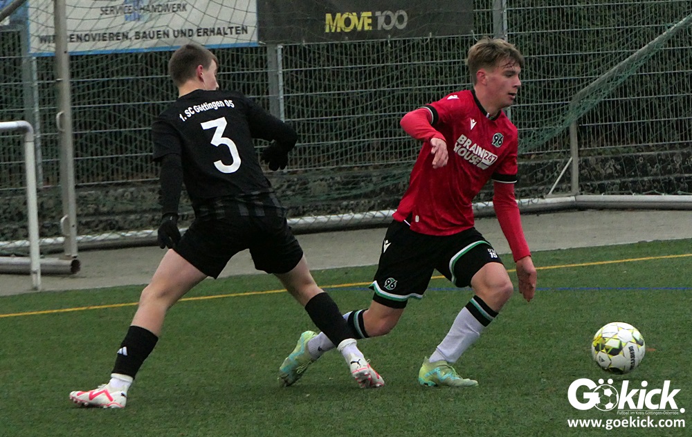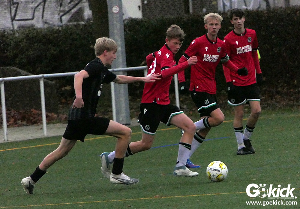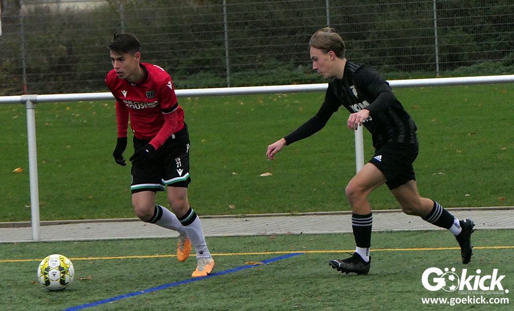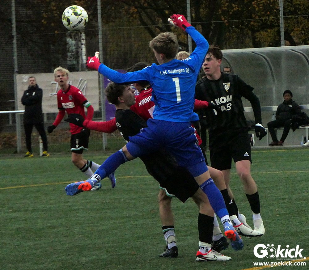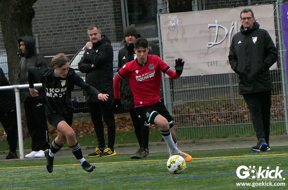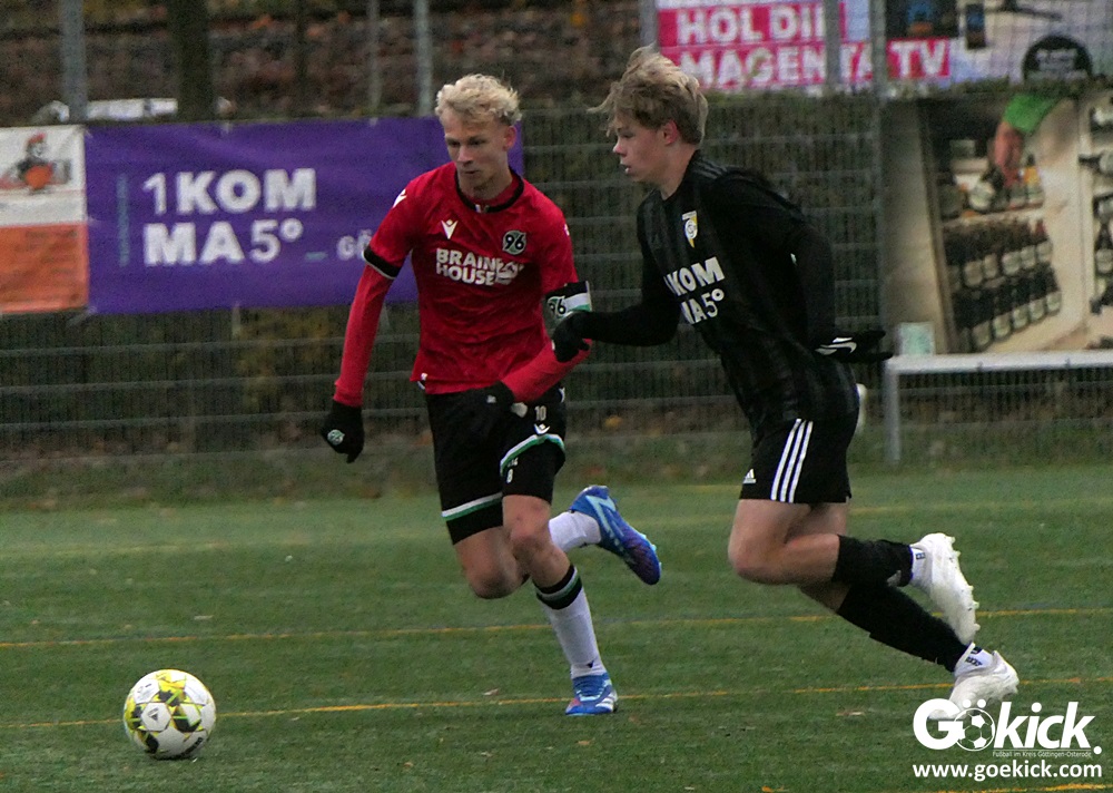 Insgesamt chancenlos blieb die B-Jugend (U19) des 1. SC Göttingen 05 in der Regionalliga. Auf dem eigenen Kunstrasenplatz gab es gegen den Tabellen-Dritten, die zweite Mannschaft (U16) von Hannover 06, beim 0:5 (0:5) die neunte Saison-Niederlage im zwölften Punktspiel. Damit hält das Team von Cheftrainer Hans-Jörg Ehrlich mit seinen Assistenten Armin Dreyer, Kevin Kahl und Timo Ziegler die Rote Laterne der Regionalliga Nord. Da das Rettende Ufer immer noch nur vier Punkte entfernt ist, bleibt die Hoffnung die Antriebsfeder für die Trainingsarbeit der Mannschaft.