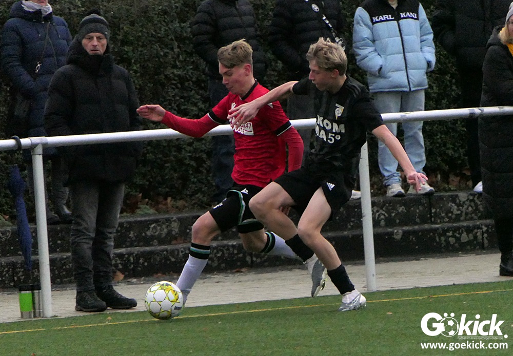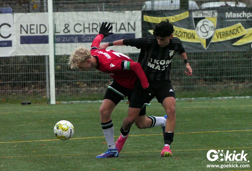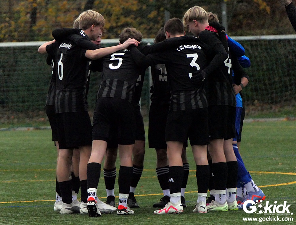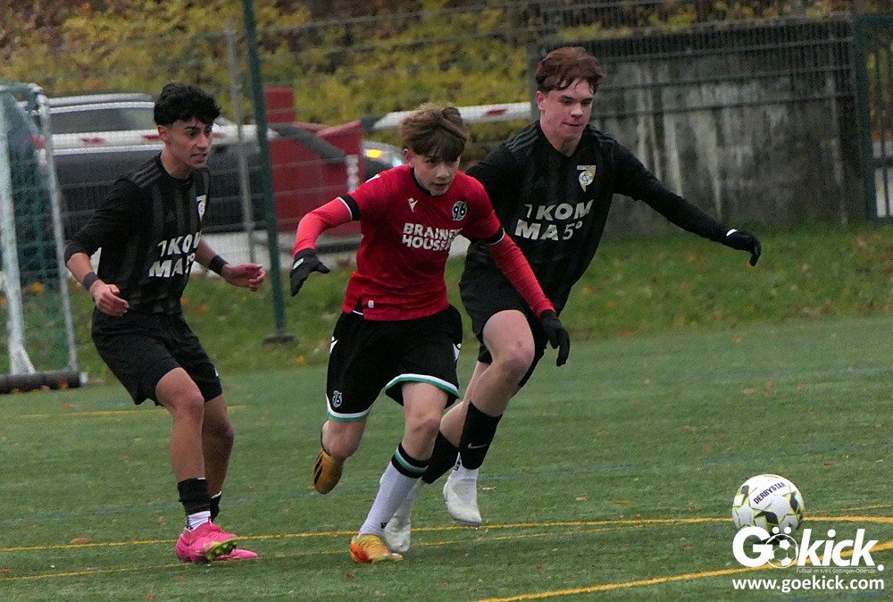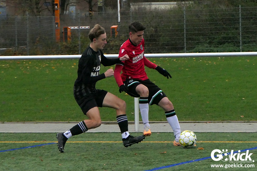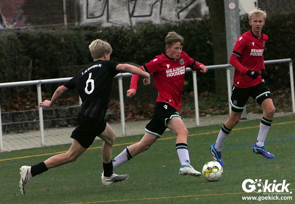 Insgesamt chancenlos blieb die B-Jugend (U19) des 1. SC Göttingen 05 in der Regionalliga. Auf dem eigenen Kunstrasenplatz gab es gegen den Tabellen-Dritten, die zweite Mannschaft (U16) von Hannover 06, beim 0:5 (0:5) die neunte Saison-Niederlage im zwölften Punktspiel. Damit hält das Team von Cheftrainer Hans-Jörg Ehrlich mit seinen Assistenten Armin Dreyer, Kevin Kahl und Timo Ziegler die Rote Laterne der Regionalliga Nord. Da das Rettende Ufer immer noch nur vier Punkte entfernt ist, bleibt die Hoffnung die Antriebsfeder für die Trainingsarbeit der Mannschaft.