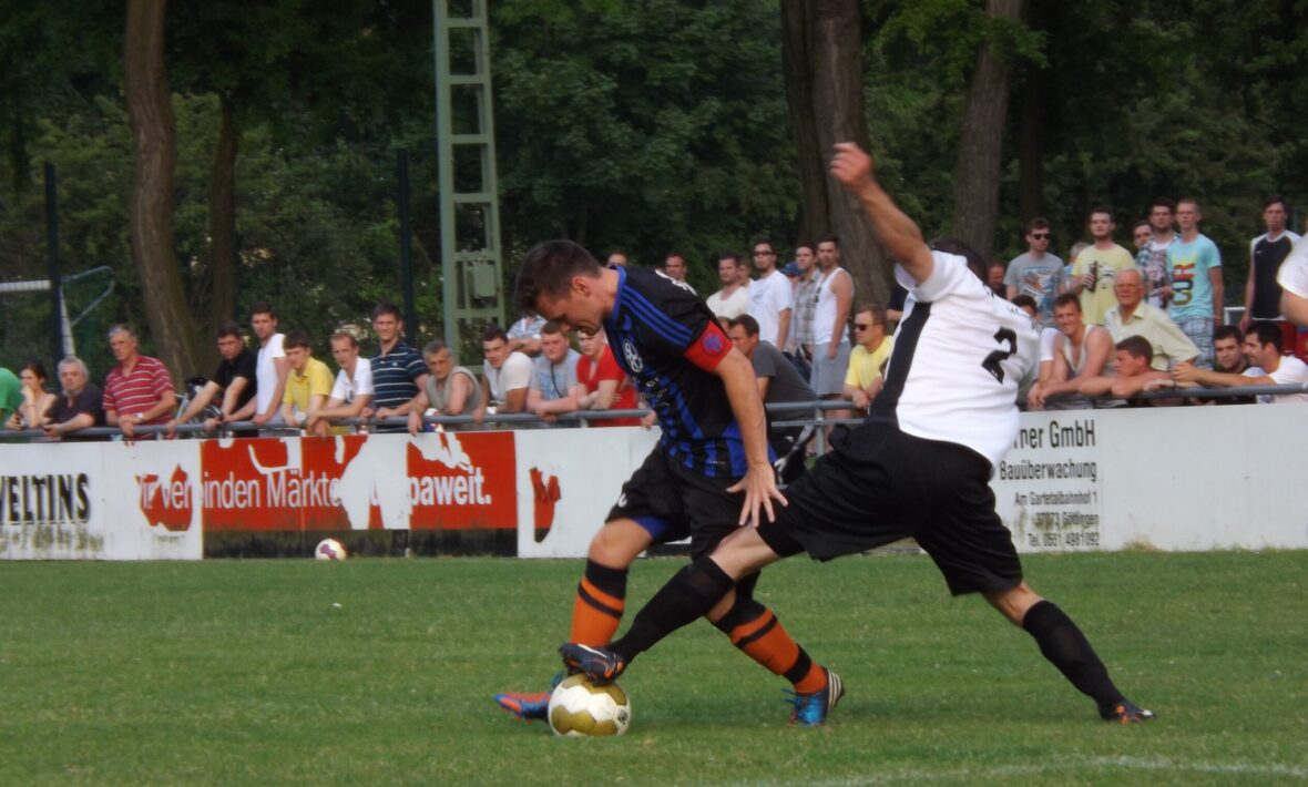 Das Spiel begann äußerst drangvoll vom späteren Siegerteam. Bereits nach sieben Minuten setzte sich Maximilian Walter – einstmals Bestandteil von Hainbergs Bezirksliga-Team – auf der Grundlinie mustergültig durch. Seine Hereingabe vollstreckte Daniel Schwalm aus dem Rücken der Abwehr sicher. Das gab Sicherheit und Selbstvertrauen. Immer wieder inszenierten die Hainberger gefährliche Angriffe über den zentralen Spielmacher Christian Nitsche und die agilen Walter, von Werder und Schwalm. In der 30. Spielminute das nächste Highlight: Sven Oliver Sange schlenzte einen Ball in Brehme-Manier an die Latte.