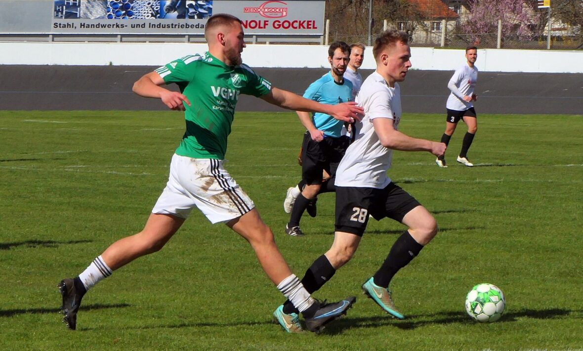 Die Heimelf war – das kann man dem Team nicht absprechen – von Anfang an bemüht, den Gegner unter Druck zu setzen. Doch es gelang ihr nicht viel. Ein Schuss von NIcolas Krenzek aus neun Metern nach acht Minuten war noch das Gefährlichste, das der Gastgeber in Richtung Tor der Gäste bekam. Ansonsten war die Leistung nicht oberligatauglich. Nach 21 Minuten konnte Luca Mittelsädt zur Gästeführung einköpfen. Mit dem 0:1 ging es in die Halbzeitpause.