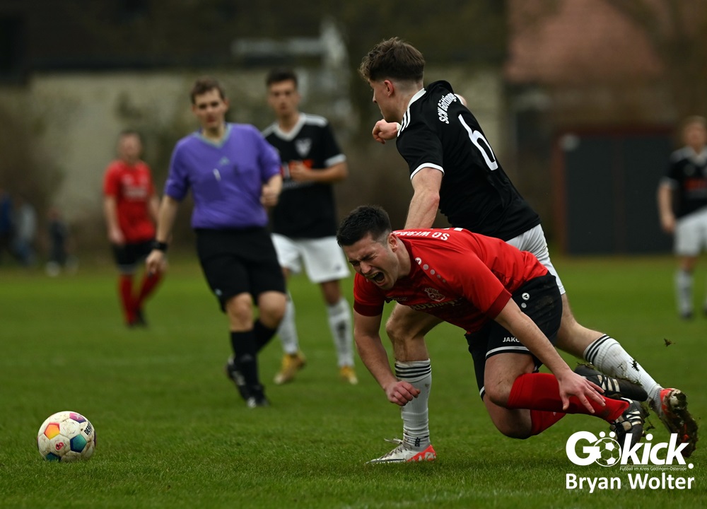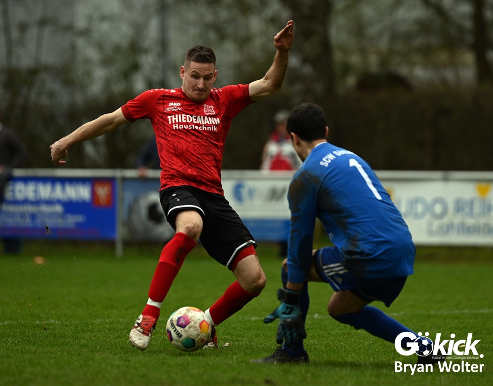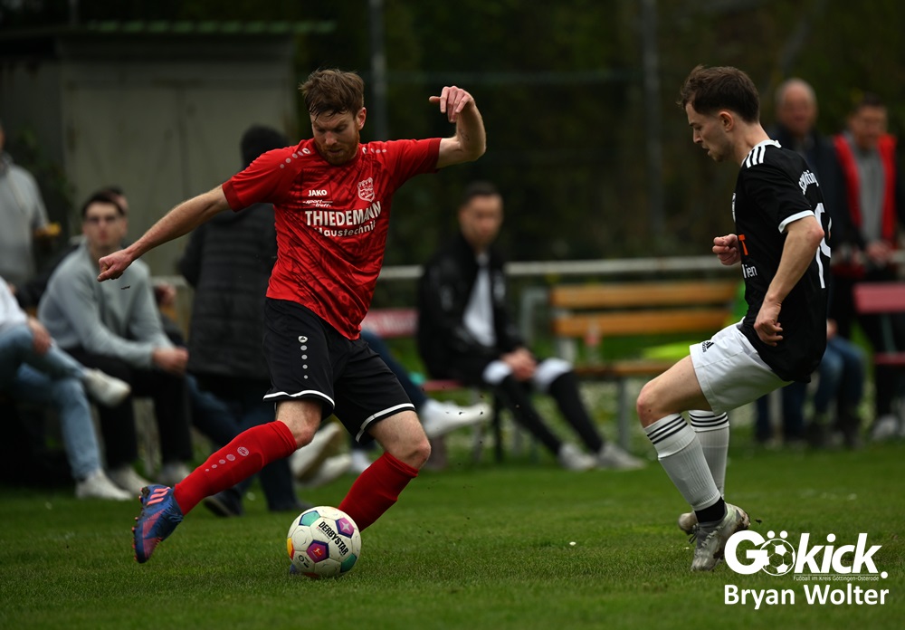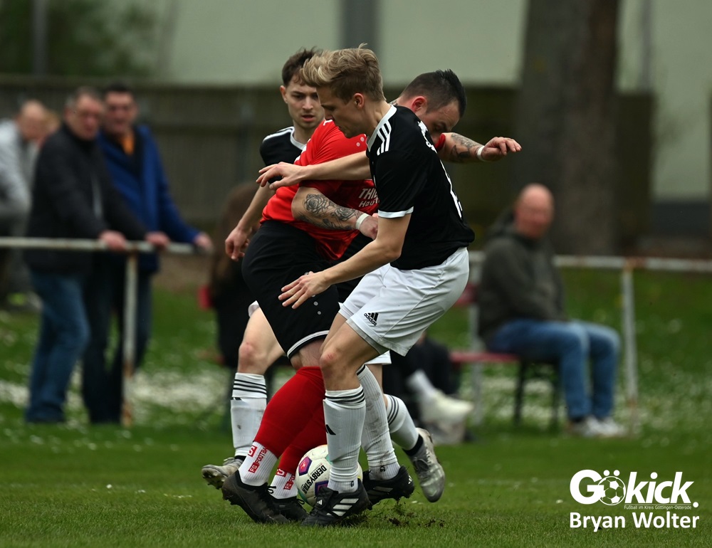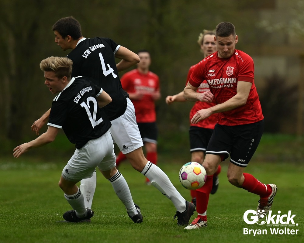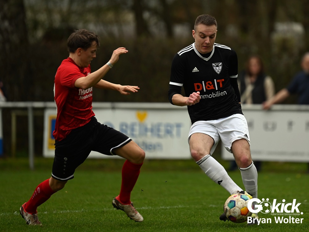 35 Minuten verlief die Partie torlos. Dann kamen die verrückten sechs Minuten: Zuerst brachte Kai Armbrust den Gastgeber mit 1:0 in Führung. Nur zwei Minuten später erhöhte Maximilian Ring auf 2:0. Die Freude über die Führung währte nur eine Minute, ehe SCW-Kapitän Jasper Frohn den Anschlusstreffer erzielte. Und erneut nur drei Minuten nach dem ersten SCW-Treffer erzielte Johannes Mädge den Ausgleich für die Gäste aus der Universitätsstadt. Doch damit hatten die Akteure auf dem Platz auch ihrn Pulver verschossen. Das 2:2 hatte nicht nur zum Pausenpfiff Bestand, es blieb auch bis zum Ende der Partie bei diesem Spielstand.
