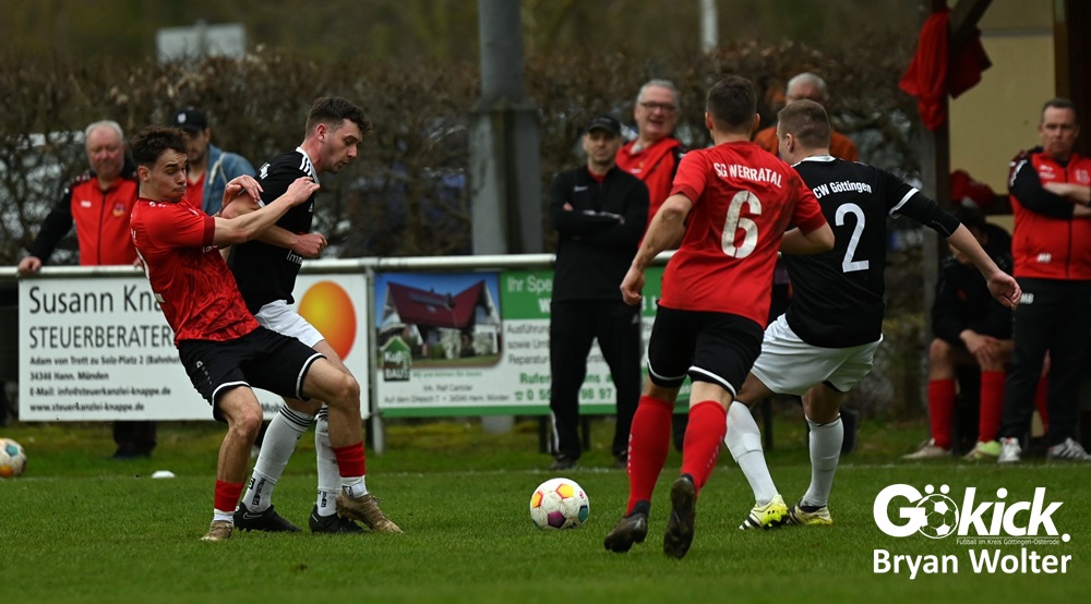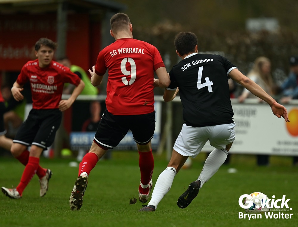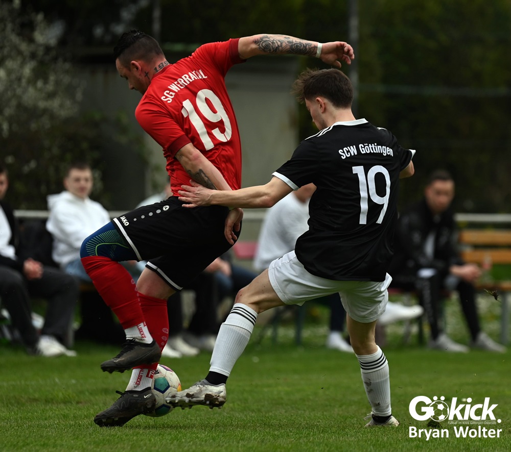 Sie waren vor der Partie punktgleich, nach dem Spiel sind sie es geblieben. Des Rätsels Lösung: Die SG Werratal und der SCW Göttingen trennten sich am Samstag-Mittag auf dem Sportplatz in Hedemünden 2:2 (2:2)-unentschieden. Der SCW Göttingen bleibt aufgrund der besseren Tordifferenz Sechster der Bezirksliga, die SG Werratal bleibt Siebter, brachte aber für die 35 Punkte auf den Konto zwei Spiele weniger als die Göttinger.