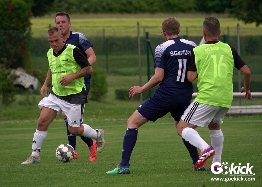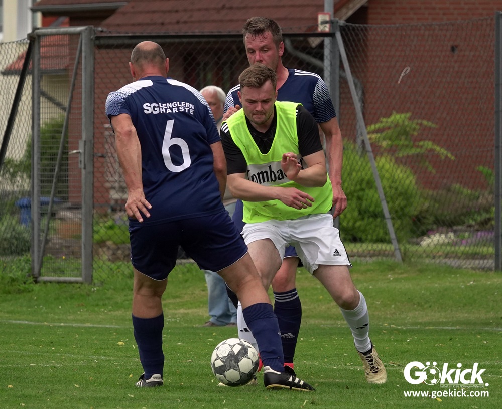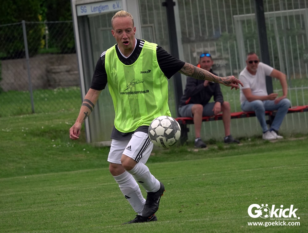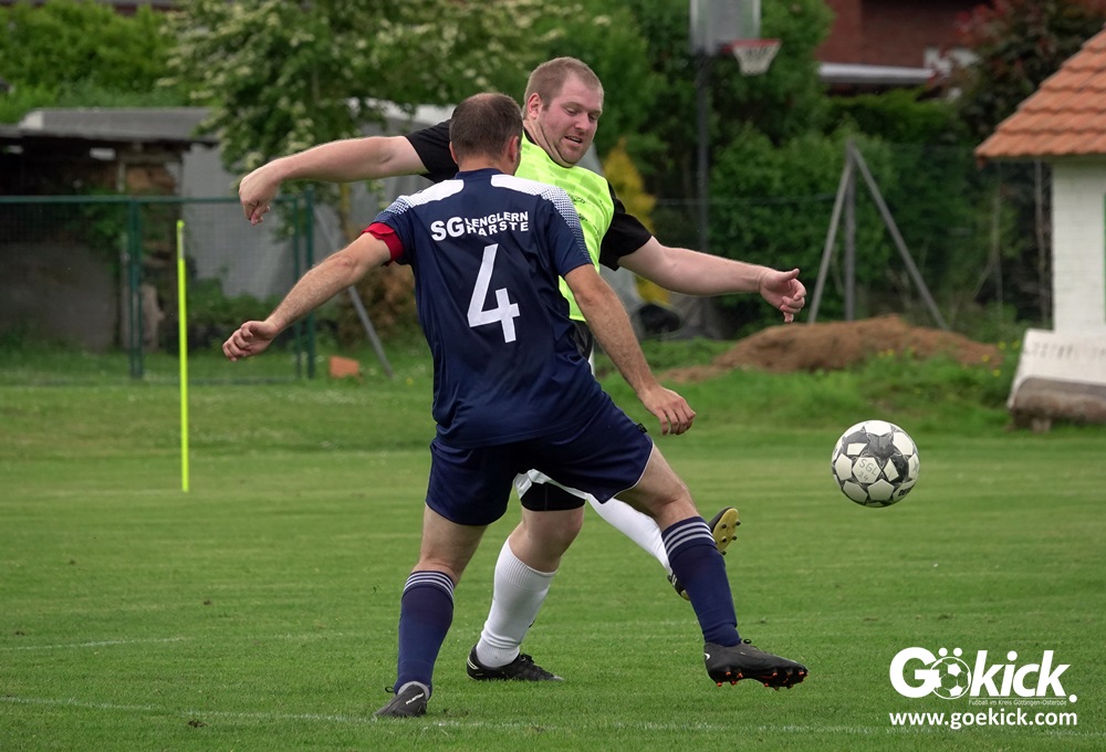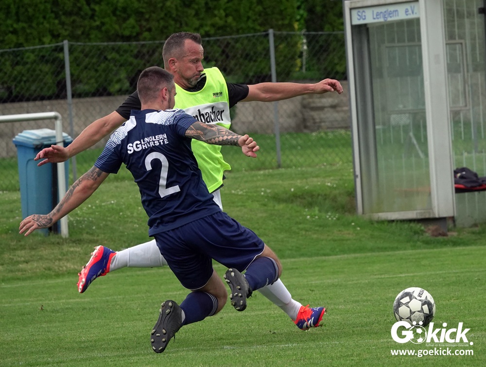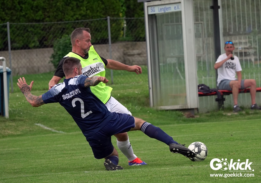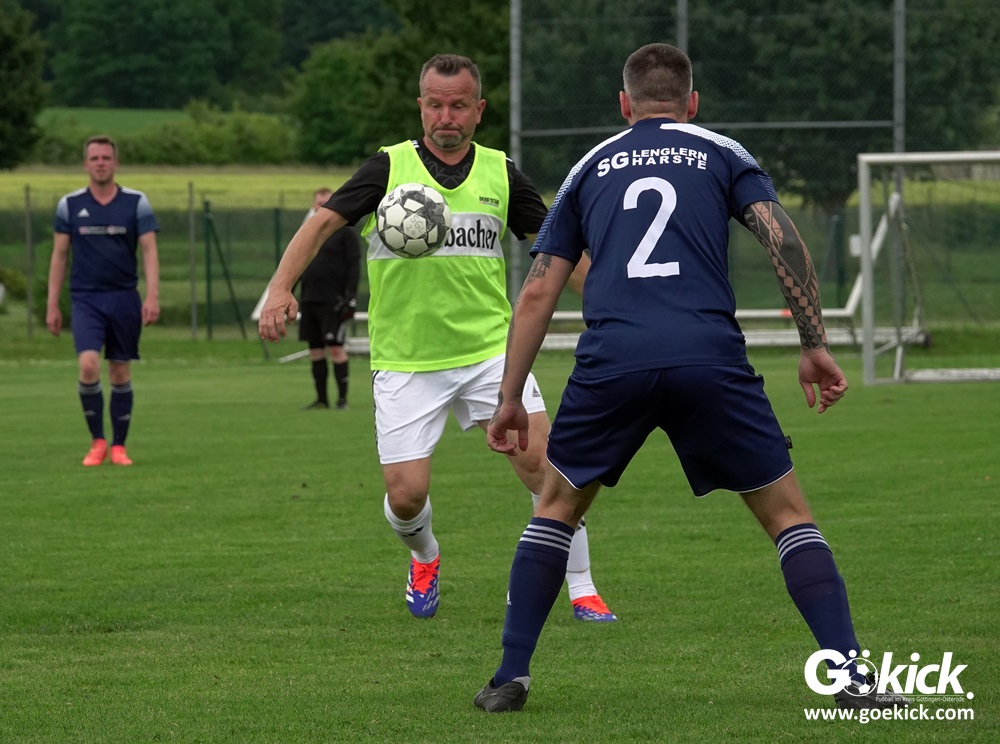 Die Gäste aus Dransfeld und Umland kamen mit vielen bekannten Gesichtern nach Lenglern. Der Grund: Am 14. Juni spielt die Altherren-Mannschaft der SG Hoher Hagen in Dransfeld gegen die Traditionsmannschaft des VfL Wolfsburg. Um nicht ganz unsportlich zu wirken, nutzten viele in die Jahre gekommene Spieler das Kleinfeldspiel, um ihre Fitness zu verbessern. Das gelang auch wirklich gut. Die Gäste waren das bessere Team und hatten ein deutliches Chancenplus. Sie gingen nach 15 Minuten durch Sebastian Fritz mit 1:0 in Führung. Zehn Minuten später glichen die Hausherren, die sehr kampfstark agierten, durch Christian Clasing aus. Beim Stand von 1:1 wurden die Seiten gewechselt.